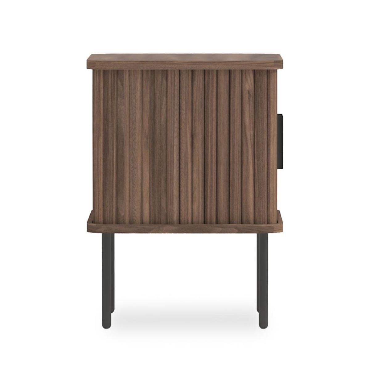 To declutter in style, the two cupboard drawers of the Mika Wooden Bedside Table glide effortlessly across revealing two spacious storage compartments with adjustable shelving so you can organise your personal belongings exactly how you like them. In a walnut stained wood with ribbed detailing, the Mika Bedside Table with storage incorporates contemporary design with durable materials for a gorgeous storage option with practicality.