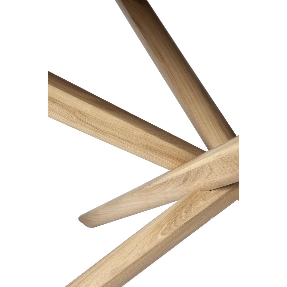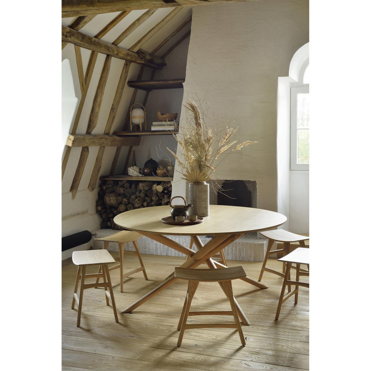 For twenty-five years, Belgian brand Ethnicraft has paid tribute to the beauty and authenticity of solid wood. Timeless, extremely strong and durable, these are quality pieces of furniture that age wonderfully and are passed down from generation to generation. Handcrafted, Ethnicraft furniture is the result of exceptional know-how. Behind the apparent simplicity of the design hides a constant search for innovation. Integrating advanced techniques into the creative process, each new design is worked out down to the smallest detail. Respectful of the environment, the wood used comes from sustainably, responsibly managed forests (FSC Co. C certification which attests that the wood was produced with respect for the environment and social values). The Mikado table by designer Alain Van Havre quickly became an essential classic. It stands out for its astonishing sculptural base with oblique lines, which is the result of a long search for dynamic balance. Reminiscent of the Mikado game, the four legs intersect, forming a graphic, unstructured assembly offering perfect stability. Mikado's legs provide an astonishing ballet that’s always eye-catching. The Mikado table will become the centrepiece of your dining room.
