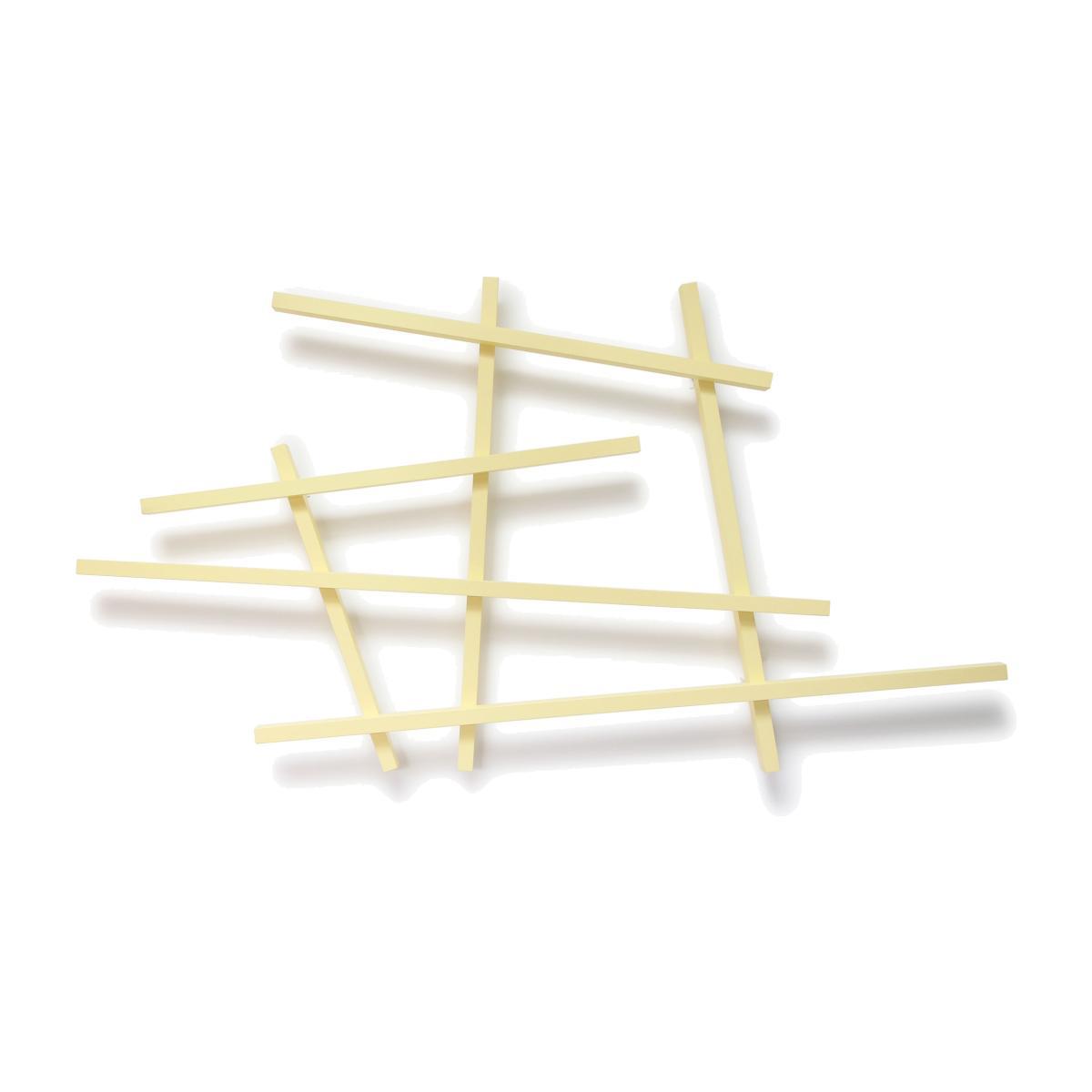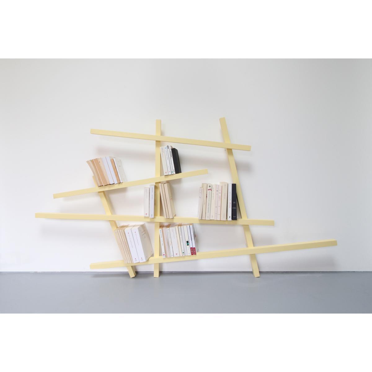 With its destructured graphic shape, this wall bookcase (H 100 cm x width 185 cm) displays your favourite books and CDs in an original way. It consists of seven oak bars of 3 cm square section: four placed horizontally and three placed vertically. Reminding us of the game of Mikado, the wooden bars seem to have been assembled randomly. Don’t be fooled by its light and minimalist structure; the Mikado bookcase is very sturdy. It does away with anything superfluous to show off what really matters: books and CDs. Mikado comes with eight spacers for wall mounting: four small 4cm ones and four large 12cm. You choose according to the format of the books you want to display in the bookcase. In a lounge or bedroom, this creation looks superb on your wall space while blending into the decor. N. B. : The Mikado bookcase can hold novels, paperbacks, CDs or DVDs on small cross-pieces, as well as large hardbacks on its larger cross-struts. However, this bookcase cannot hold flexible books or magazines.