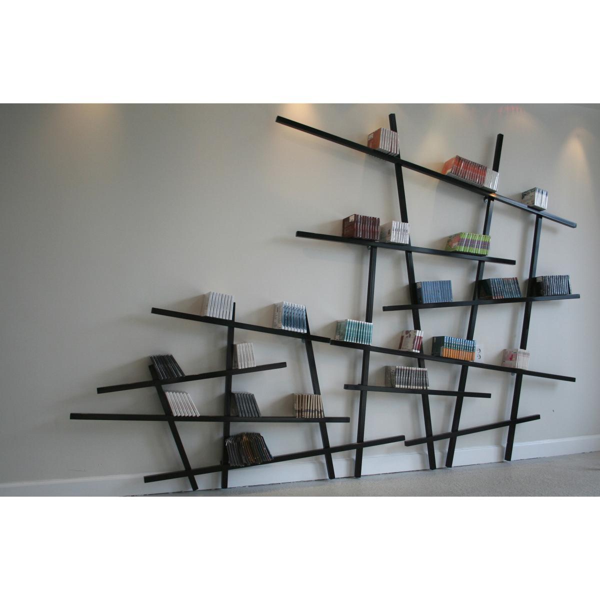 Very graphic, this bookshelf (H 100 cm X W 185 cm) directs your books and CD in an original way. Mikado is composed of seven rods of square section of 3 cm: four placed at the horizontal and three placed at the vertical. This bookshelf evokes the game of the Mikado and is born idea to assemble hypothetical wooden rods together. Mikado's light and minimalist structure is also very robust. This bookshelf is made in solid oak, a wood coming from French durably managed forests. You can associate this model with a larger one also available on our site.
