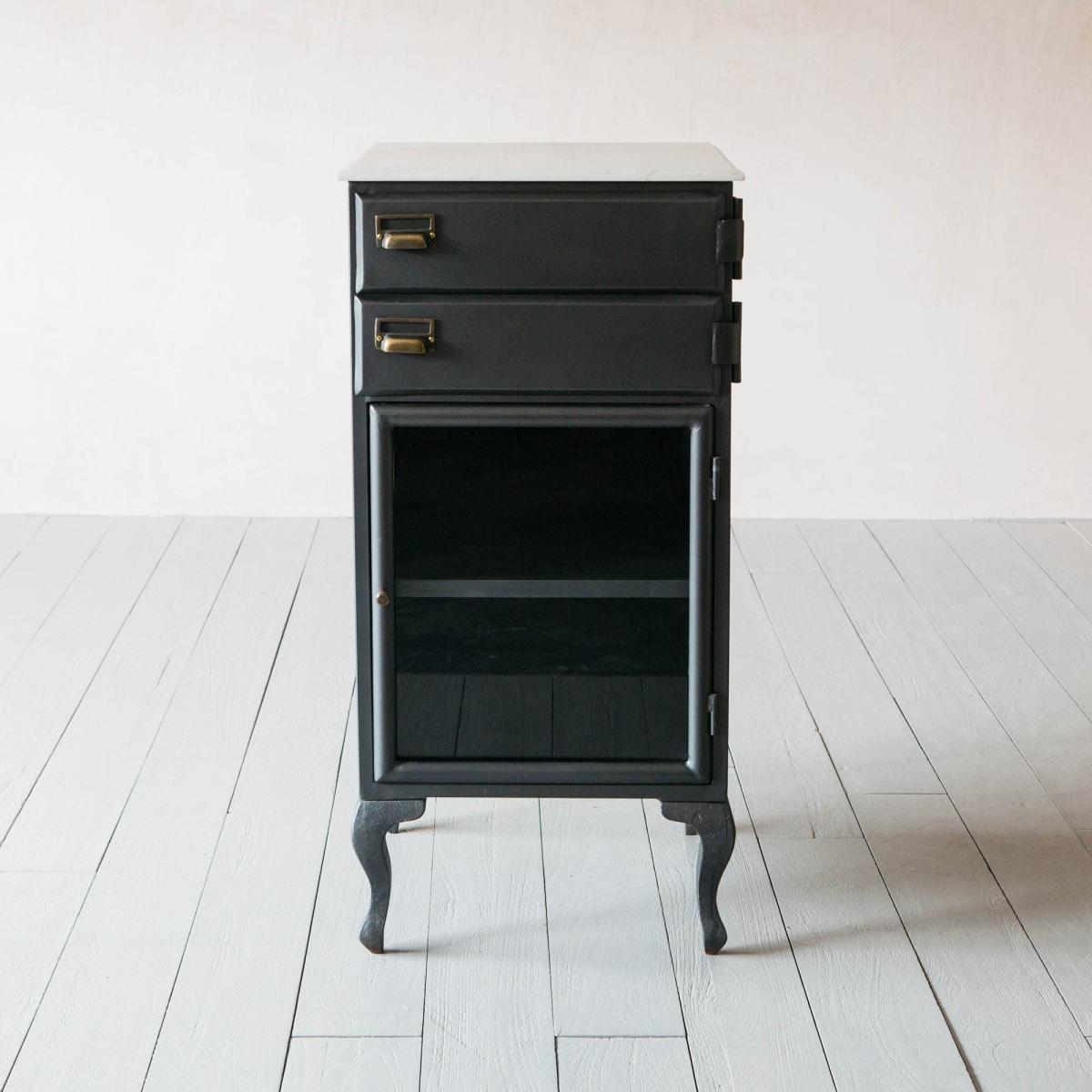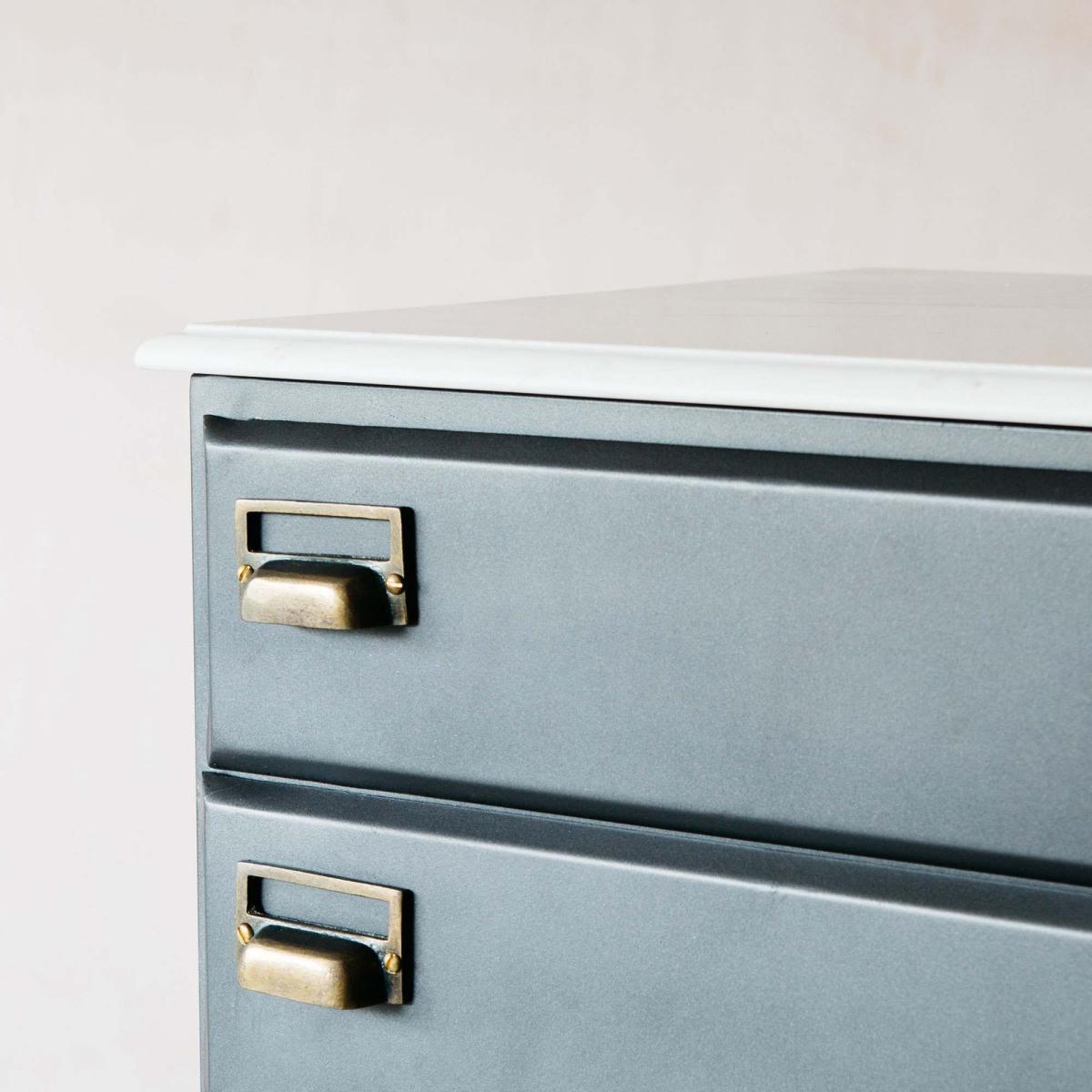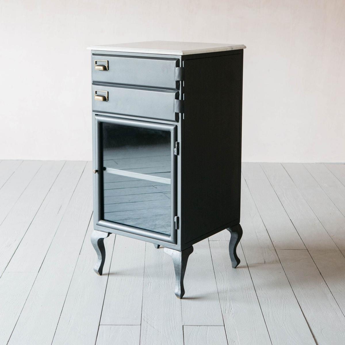 Our contemporary, tall Mikko cabinet is crafted from weighty iron with a polished, white marble top. A blend of rustic and industrial design, this cabinet boasts a solid iron frame, scroll-shaped legs and a glass-fronted cabinet - perfect for displaying items you'd like to find quickly.