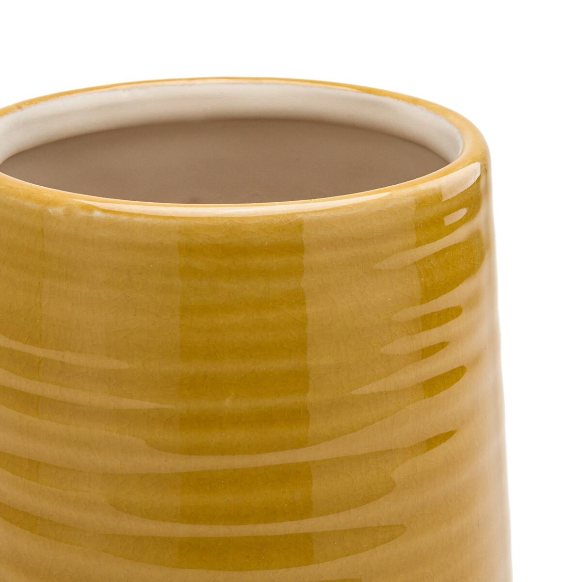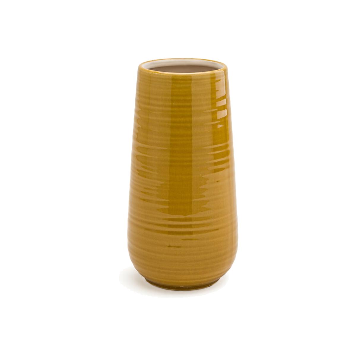This tall glazed ceramic vase is a versatile piece that works well in both contemporary and rustic interiors. I love its warm, mustard tone which adds a touch of colour without overwhelming a space. It’s perfect for layering on sideboards, mantels, or open shelving to create visual interest. For practical styling, consider displaying a simple arrangement of dried flowers or single stems for a minimalist look, or pair it with other earthy-toned ceramics for a curated, eclectic vibe. Its sizeable stature makes it equally effective as a standalone statement piece in a minimal setting or as part of a larger decorative vignette.