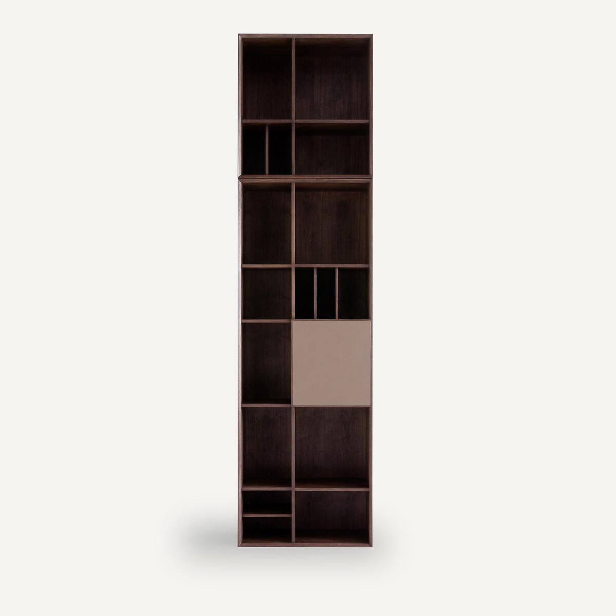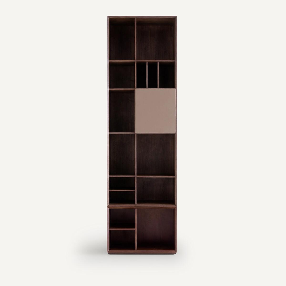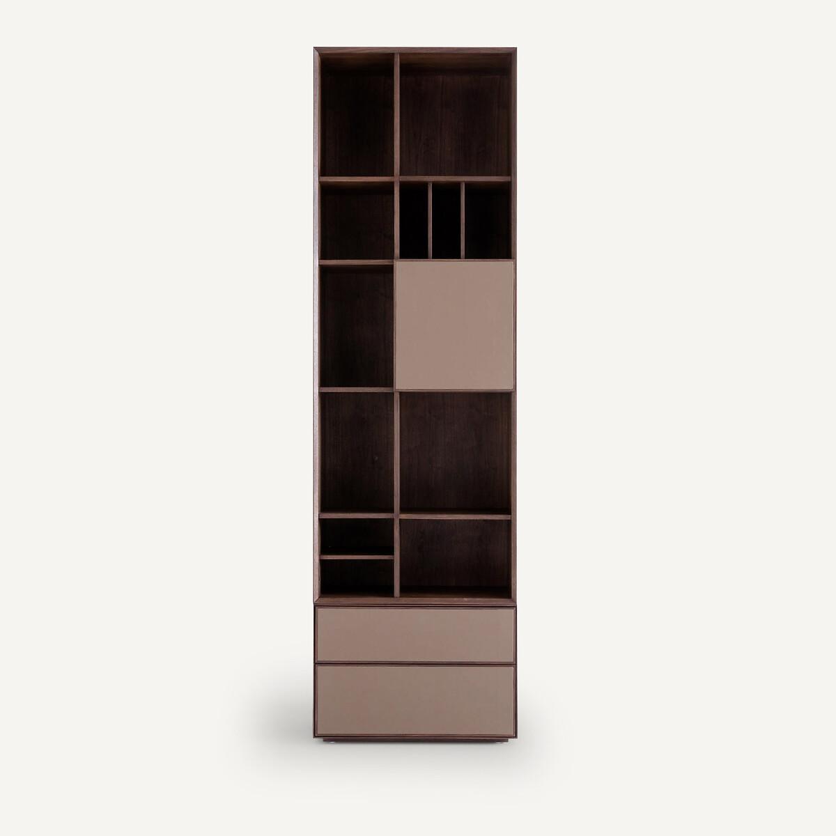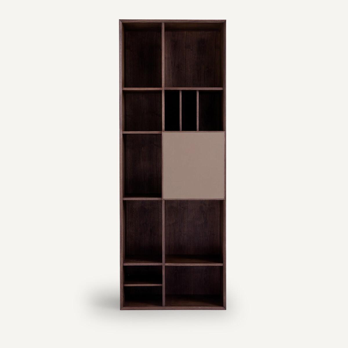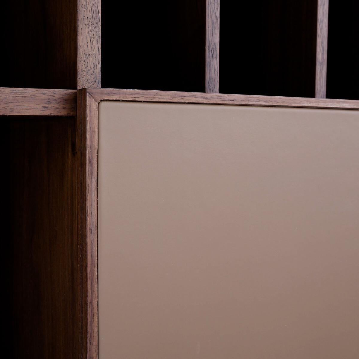 Part of the Mikube modular storage system, this wall-mounted element is designed to be used alone or with other modules in the range, to create an XXL bookcase, for example.. The bookcase is made of FSC® certified walnut veneered MDF, its edges have a 45° cut. It has a door, sheathed in genuine Italian leather, with soft closing fixtures. An AMPM exclusivity designed to adapt to all spaces. Product Details • In FSC® certified walnut veneered MDF, nitrocellulose finish • 1 door sheathed in genuine Italian leather (cowhide, corrected grain, aniline finish, chrome tanning), soft closing fixtures • 1 cable hole • Fixed shelves • Must be fixed to wall Quality Info • German brand hardware: reliable, discreet and functional. These accessories ensure the longevity of your product. • Soft-closing : system for closing doors smoothly, silently, also preventing fingers from getting caught. Care Advice • Leather is a delicate covering. Over time, it will acquire a patina and relax, which will make your product unique.. To maintain its flexibility, avoid any exposure to a heat source (direct sunlight, radiator, fireplace, etc.). • Regular leather care is essential: dusting with the soft brush of the vacuum cleaner or a slightly damp cloth, protection with a special leather lotion (always test the compatibility on a hidden part of your product). If in doubt, do not hesitate to call a specialist. Dimensions. Overall • Width: 70cm • Height: 190cm • Depth: 40cm. Usable space • Left column compartments: L26 x H41-26-12 x D33cm • Right column compartments: L38 x H41-26 x D33cm • Small vertical right column compartments: L10-10-16cm Delivery:Sold pre-assembled. Available for home delivery. Note! Please check that all access points are large enough to accommodate your delivery (doors, stairs, lifts). • WOOD FROM SUSTAINABLY MANAGED FORESTS. FSC® certified wood comes from forests that are environmentally, socially and economically well managed. Dimensions and weight of parcel • 1 parcel • L199 x H48 x D80cm. 71.5 kg.