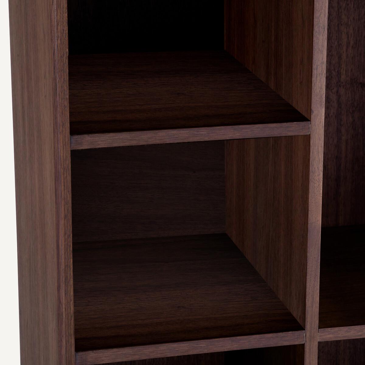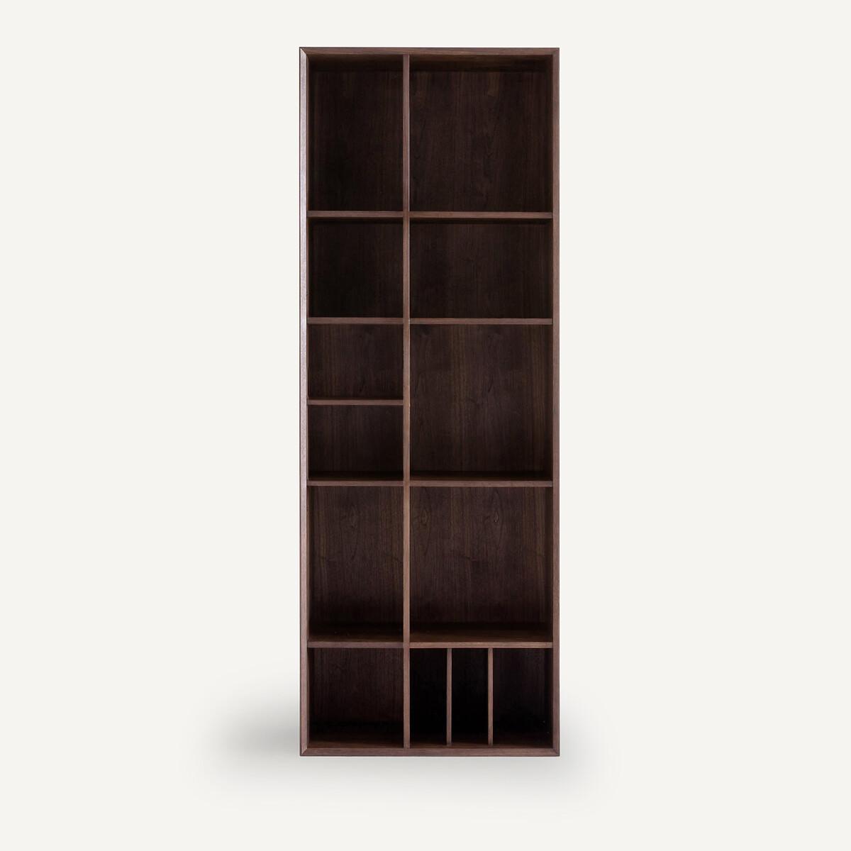 Part of the Mikube modular storage system, this wall-mounted element is designed to be used alone or with other modules in the range, to create an XXL bookcase, for example. The bookcase is made of FSC® certified walnut veneered MDF, its edges have a 45° cut. An AMPM exclusivity designed to adapt to all spaces. Product Details • In FSC® certified walnut veneered MDF, nitrocellulose finish • 1 cable entry slot (hidden behind a removable shelf) • Fixed shelves • Must be fixed to wall Dimensions • Width: 70cm • Height: 190cm • Depth: 40cm Usable space • Left column compartments:L26 x H41-26 x D33cm • Right column compartments: L38 x H41-26 x D33cm • Small niches at the bottom right: L10-9.5-16 x H26 x D29.5cmDelivery:. Sold pre-assembled. Available for home delivery. Note! Please check that all access points are large enough to accommodate your delivery (doors, stairs, lifts). • WOOD FROM SUSTAINABLY MANAGED FORESTS. FSC® certified wood comes from forests that are environmentally, socially and economically well managed. Dimensions and weight of parcel • 1 parcel • L199 x H48 x D80cm. 70kg.
