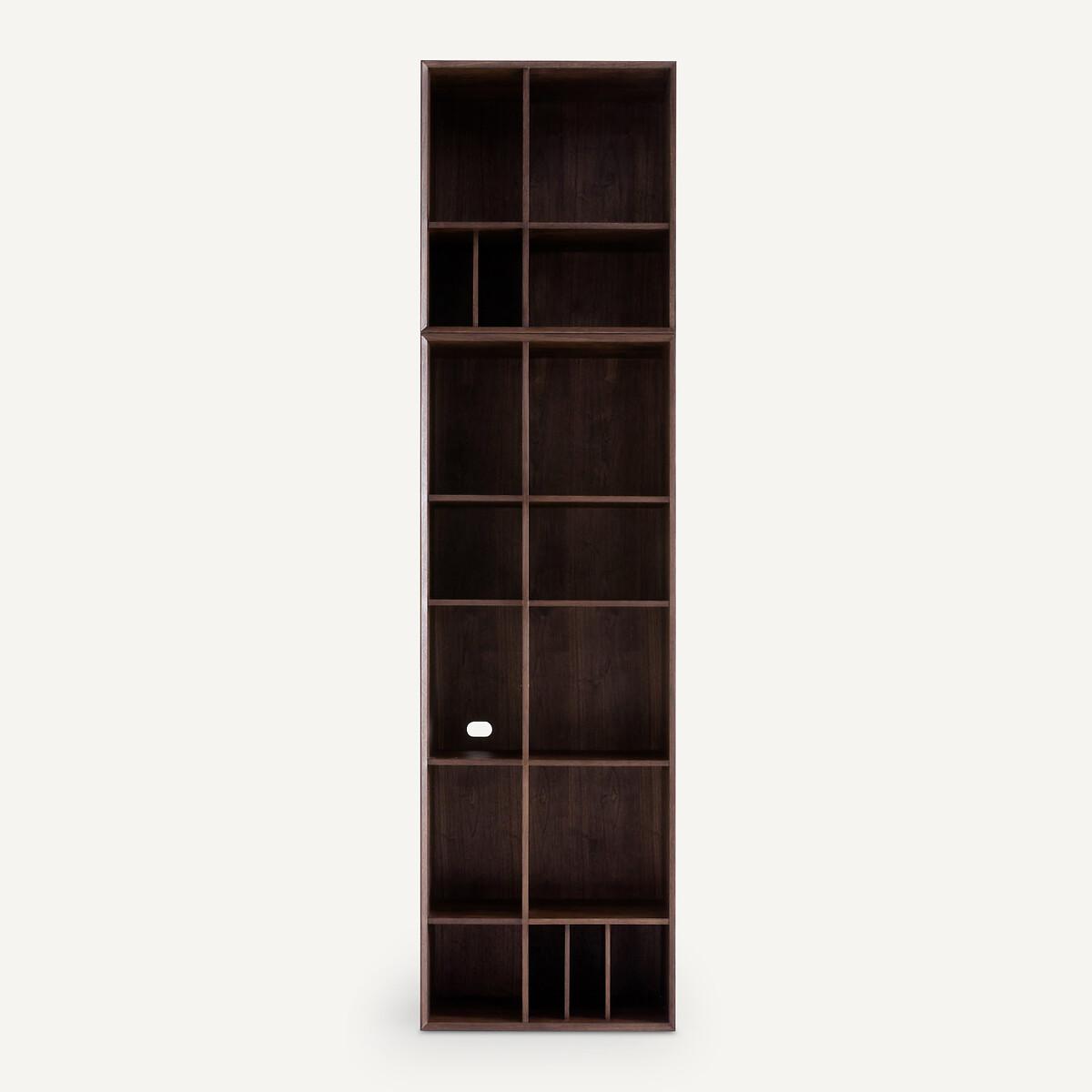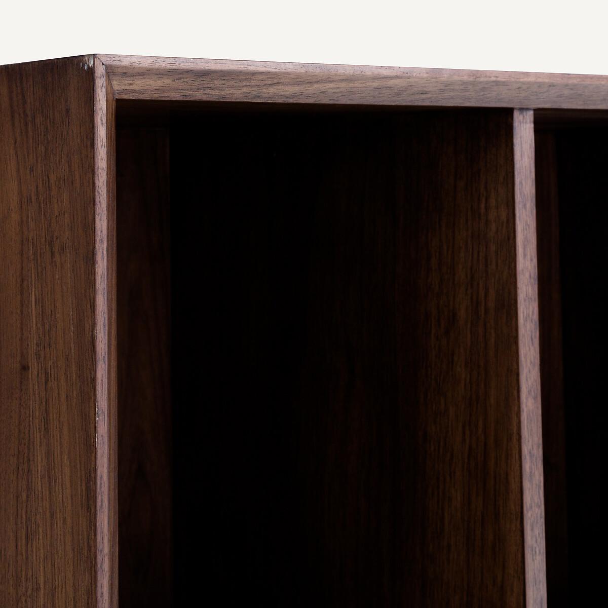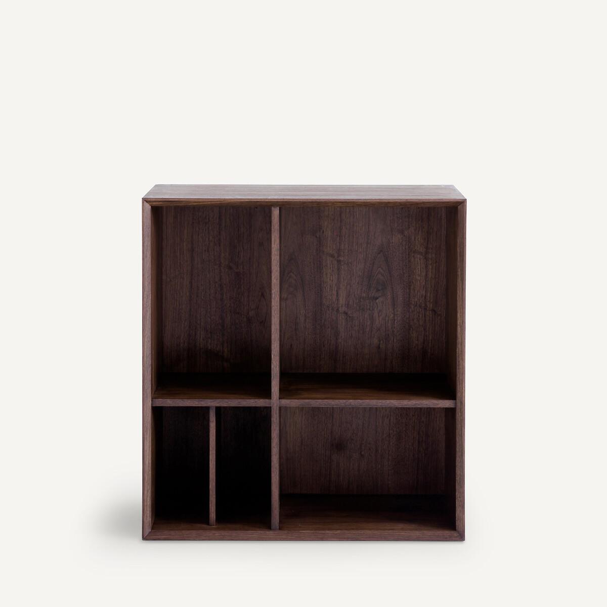 Part of the Mikube modular storage system, this wall-mounted element is designed to be used alone or with other modules in the range, to create a storage unit or an XXL bookcase.. This FSC® certified walnut veneered MDF shelf has 5 compartments. Its edges have a 45° cut. An AMPM exclusivity designed to adapt to all spaces. Product Details • In FSC® certified walnut veneered MDF, nitrocellulose finish • Fixed shelves • Must be fixed to wallDimensions. Overall • Width: 70cm • Height: 74.5cm • Depth: 40cm. Usable space. Upper compartments • L26-38 x H42 x D33cm. Lower compartments • L12-12-38 x H27 x D33cmDelivery:. Sold pre-assembled. It will be delivered to your door. Note! Please check that all access points are large enough to accommodate your delivery (doors, stairs, lifts). • WOOD FROM SUSTAINABLY MANAGED FORESTS. FSC® certified wood comes from forests that are environmentally, socially and economically well managed. Dimensions and weight of parcel1 parcel • L84 x H48 x D78cm. 35kg.