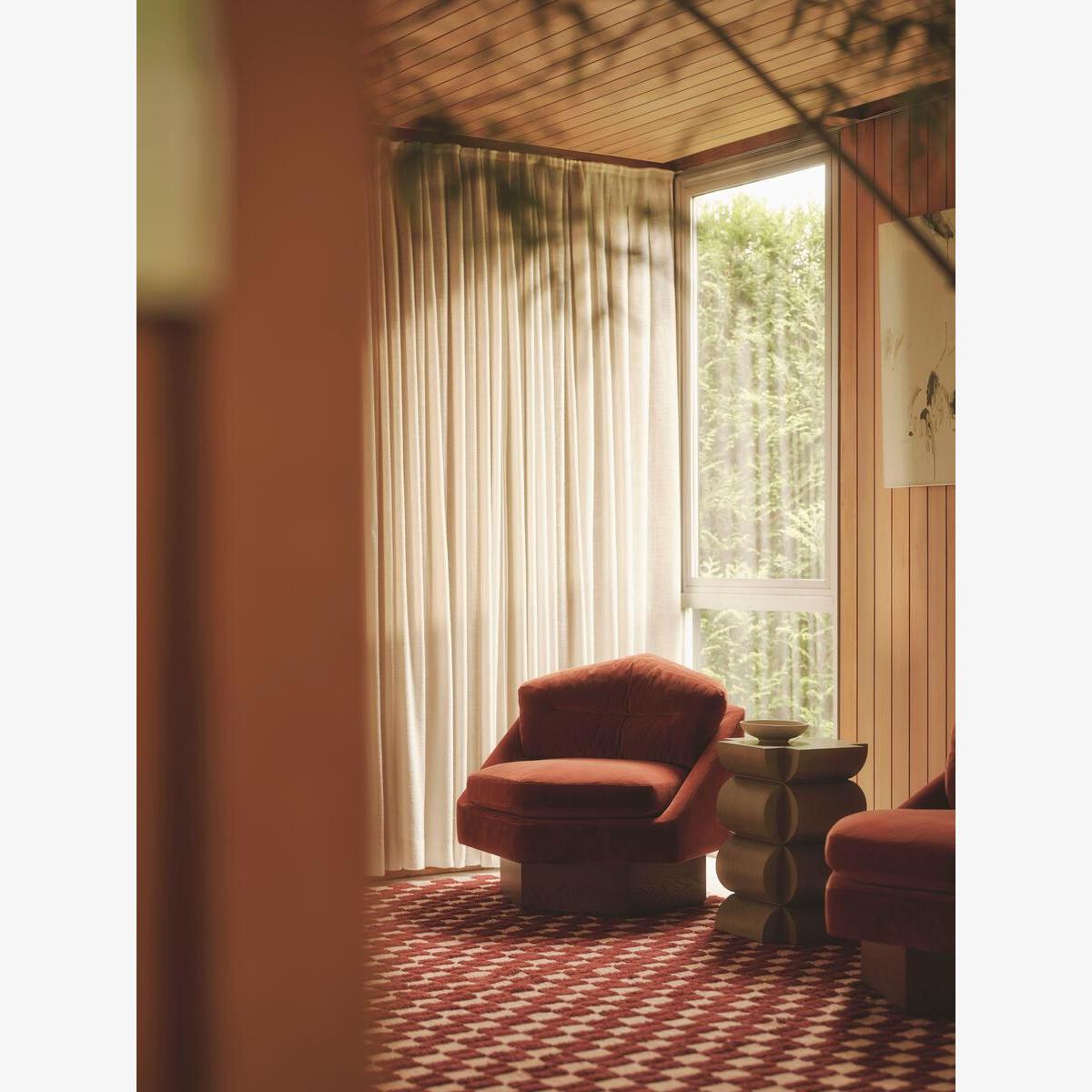 I love the Mila armchair in rust for its rich colour and plush velvet texture, which adds warmth and a touch of luxury to any space. It works particularly well in cosy living rooms or reading nooks, where its inviting style can be showcased alongside natural materials and neutral tones. To style it effectively, consider pairing it with soft throw cushions or a textured rug to enhance its cosy appeal. Its bold hue makes it a statement piece, so keep surrounding decor relatively pared back or in complementary earthy shades to allow it to stand out without overwhelming the room.