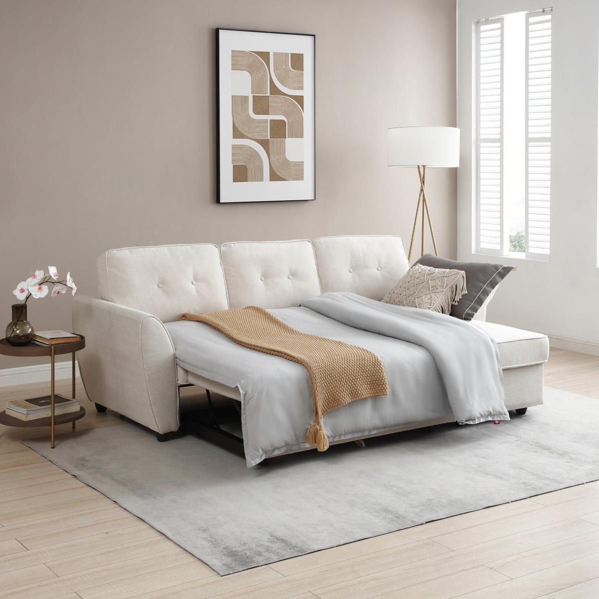 The Mila Corner Sofabed is a versatile piece that works well in both contemporary and transitional interiors. Its textured weave and neutral natural hue make it particularly suited for relaxed, cosy schemes, adding subtle interest without overwhelming the space. I love how it effortlessly combines style with practicality-perfect for guest rooms or open-plan living areas where space-saving furniture is key. Styling tip: pair it with layered cushions in various textures and complementary colours to enhance its tactile appeal, and keep accessories minimal for a sleek, uncluttered look. It’s a great choice for creating a welcoming, functional space with understated elegance.
