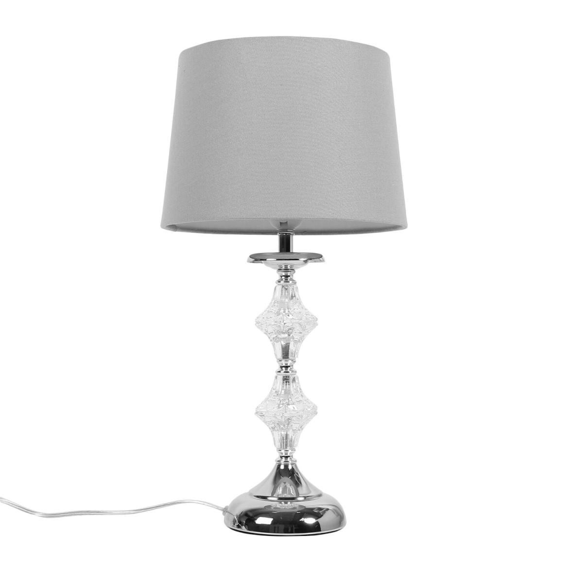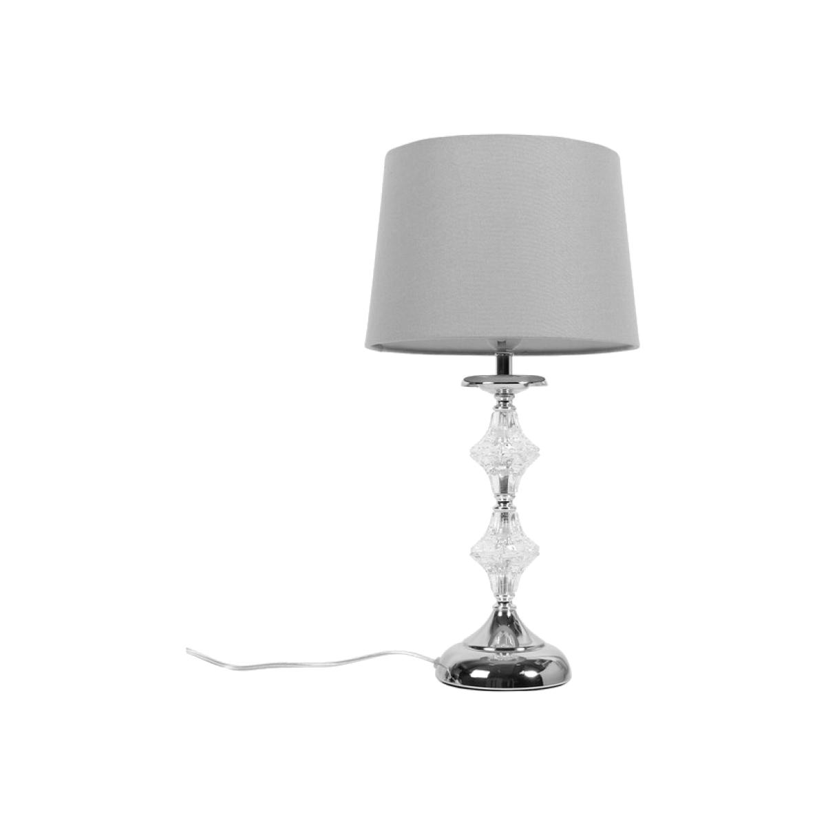 This elegant chrome Mila Crystal Table Lamp, with its unique design and grey shade, will perfectly match your home decor. Perfect for giving your home a luxurious and elegant finishing touch, the lamp would look spectacular sitting on your bedside table or on a mantelpiece in your living room to give it true versatility. This table lamp has a crystal effect stem that will suit any home where affordable luxury is paramount.