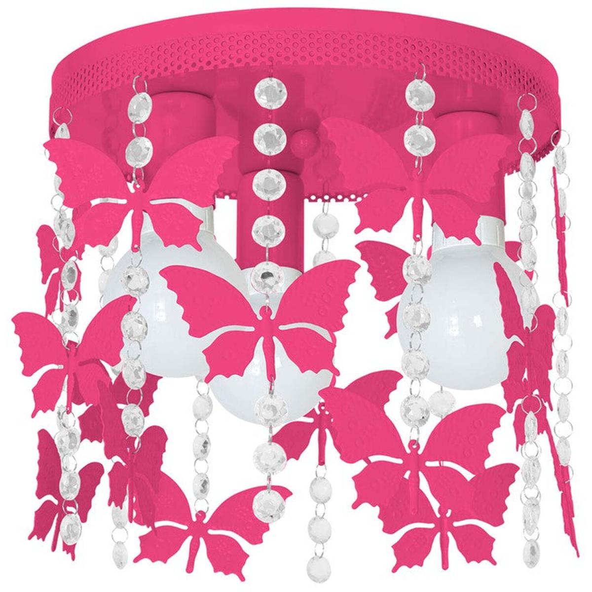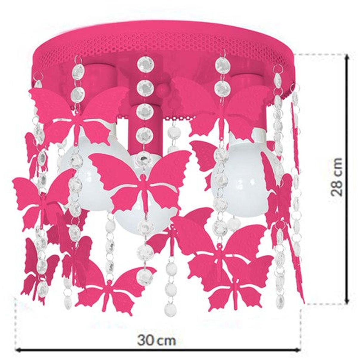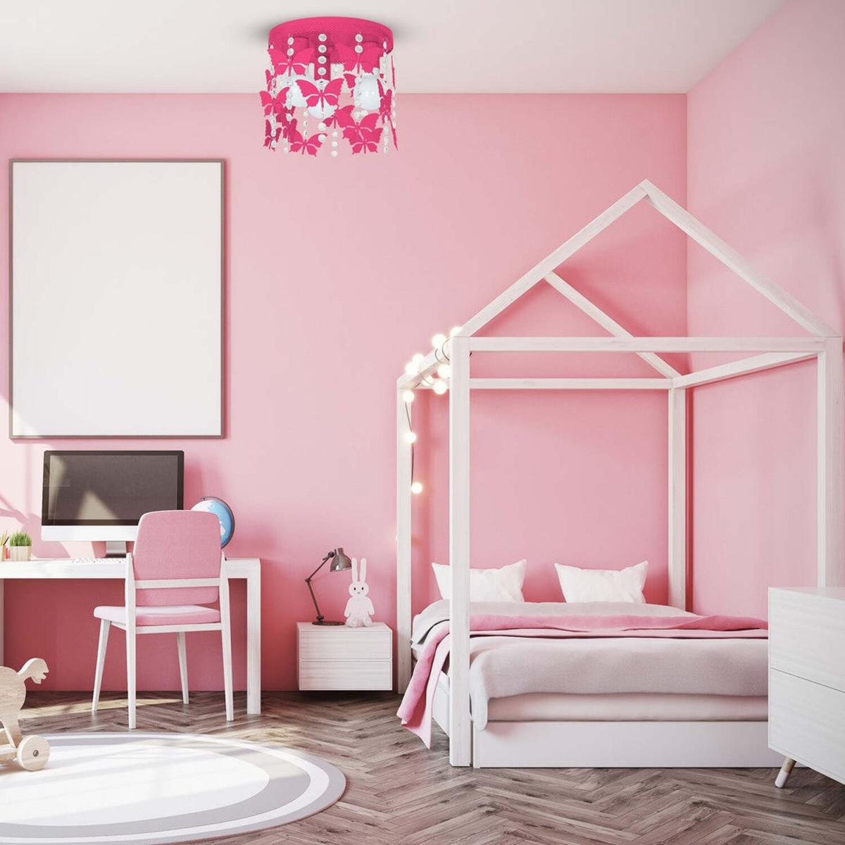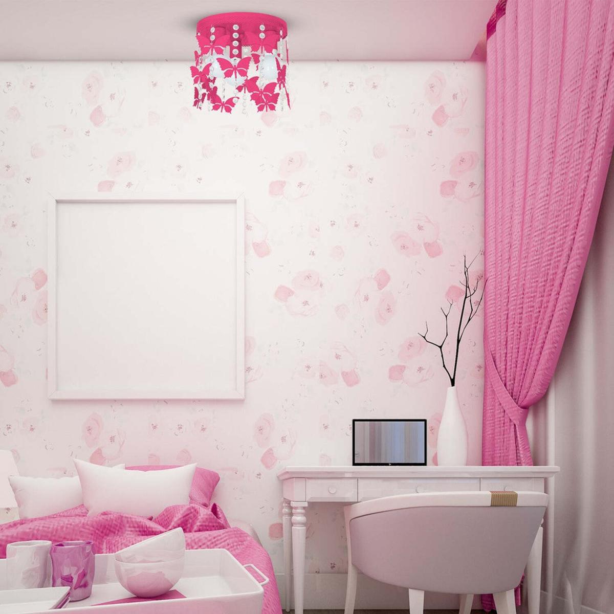 I love this Pink ceiling light for adding a playful yet stylish touch to a variety of interiors. Its vibrant colour and butterfly motif make it especially suitable for kids’ bedrooms, playrooms, or any space where a fun, uplifting vibe is desired. When styling with this lamp, consider pairing it with neutral or pastel shades to let the pink stand out, or incorporate similar colours for a cohesive look. Practical tips include hanging it at an appropriate height to ensure it doesn't feel overwhelming in smaller spaces, and balancing it with understated accessories elsewhere in the room so it remains the statement piece without competing with other bold elements. This light truly works best when it’s the focal point in a lively, bright setting.