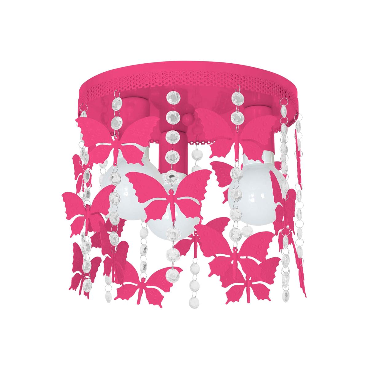 The Angelica by Milagro is a delightful 30cm hand made ceiling light. The delicate metal butterflies are suspended around the light sources by droplet crystals creating fascinating patterns of light and shadows. The hot pink chandelier would brighten up any bedroom but would also make a boutique chic centrepiece to a kitchen or conservatory