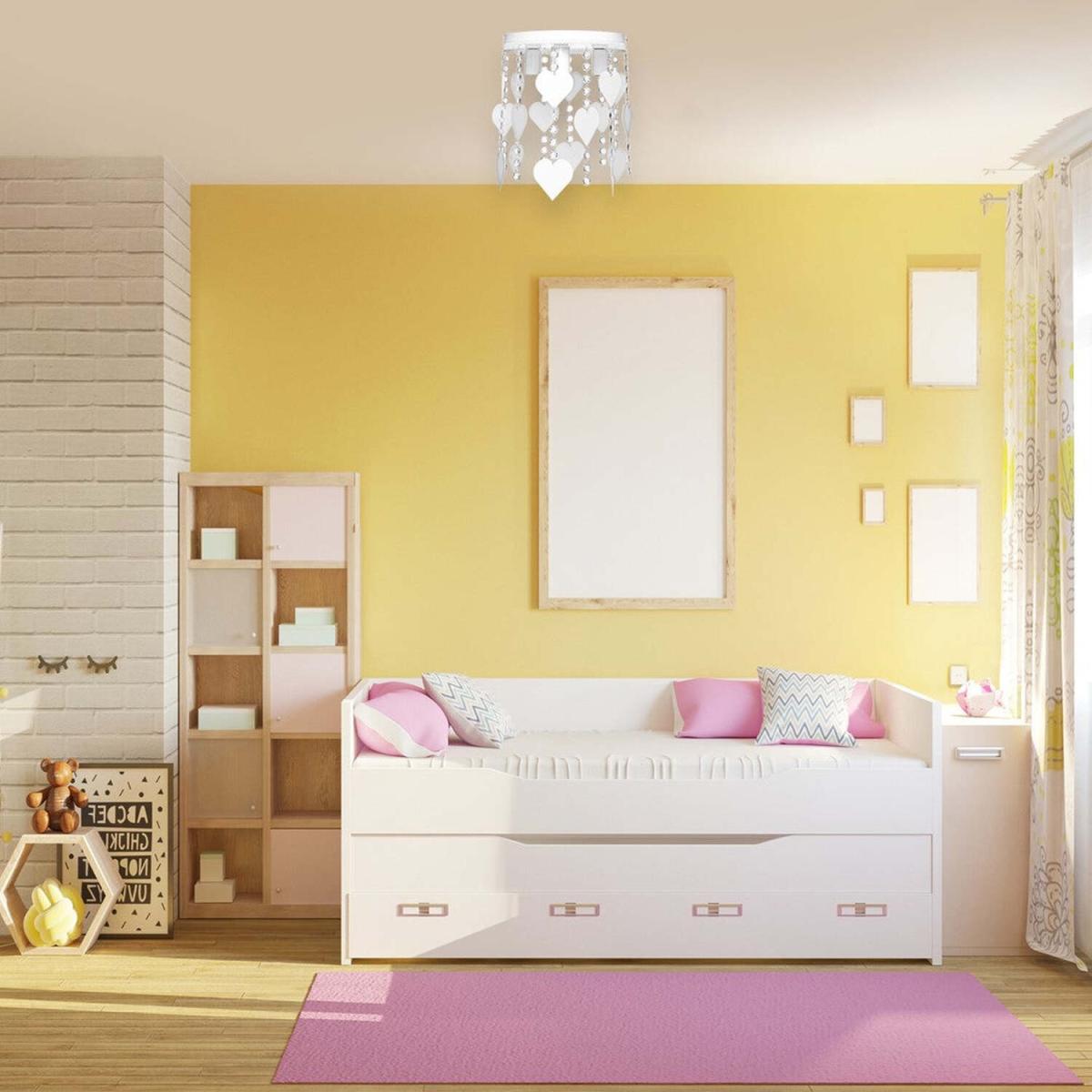The Corazon by Milagro is a delightful ceiling lamp available in cool grey, soft pink or hot pink and make a lovely centrepiece to a bedroom. The hearts and crystals are made from light alloy and acrylic making them a safe option for a childs bedroom. The Corazon is a quality hand made chandelier and the hearts and crystals create a mesmerising play of light creating an atmosphere of love!