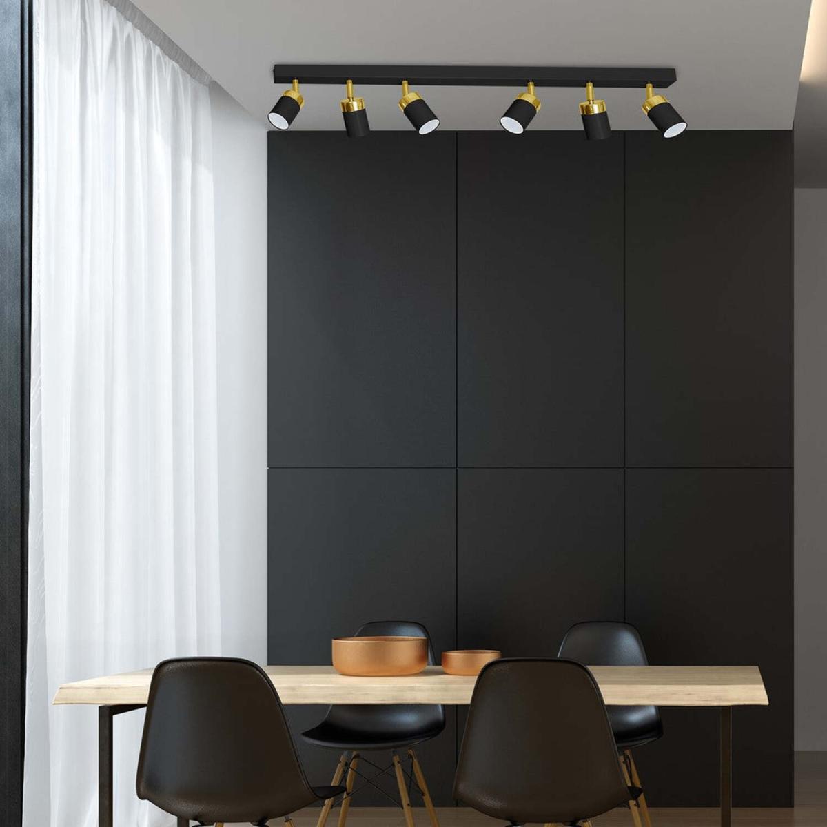 The Joker by Milagro is a range of beautifully hand made designer lights availble in matt black with gold or chrome detail. The Joker has minimalistic slender cylinder shades resembling spot lights and has options ranging from the single wall or ceiling lamp right up to the eye catching 90cm 5 lamp pendant and the 100cm "spotlight bar" with 8 adjustable shades. The contemporary styling is minimalistic with a noble touch due to the luxurious detail and is well suited to complement both modern and classic interiors. All the options are designed for use with ultra low energy GU10 LED bulbs.