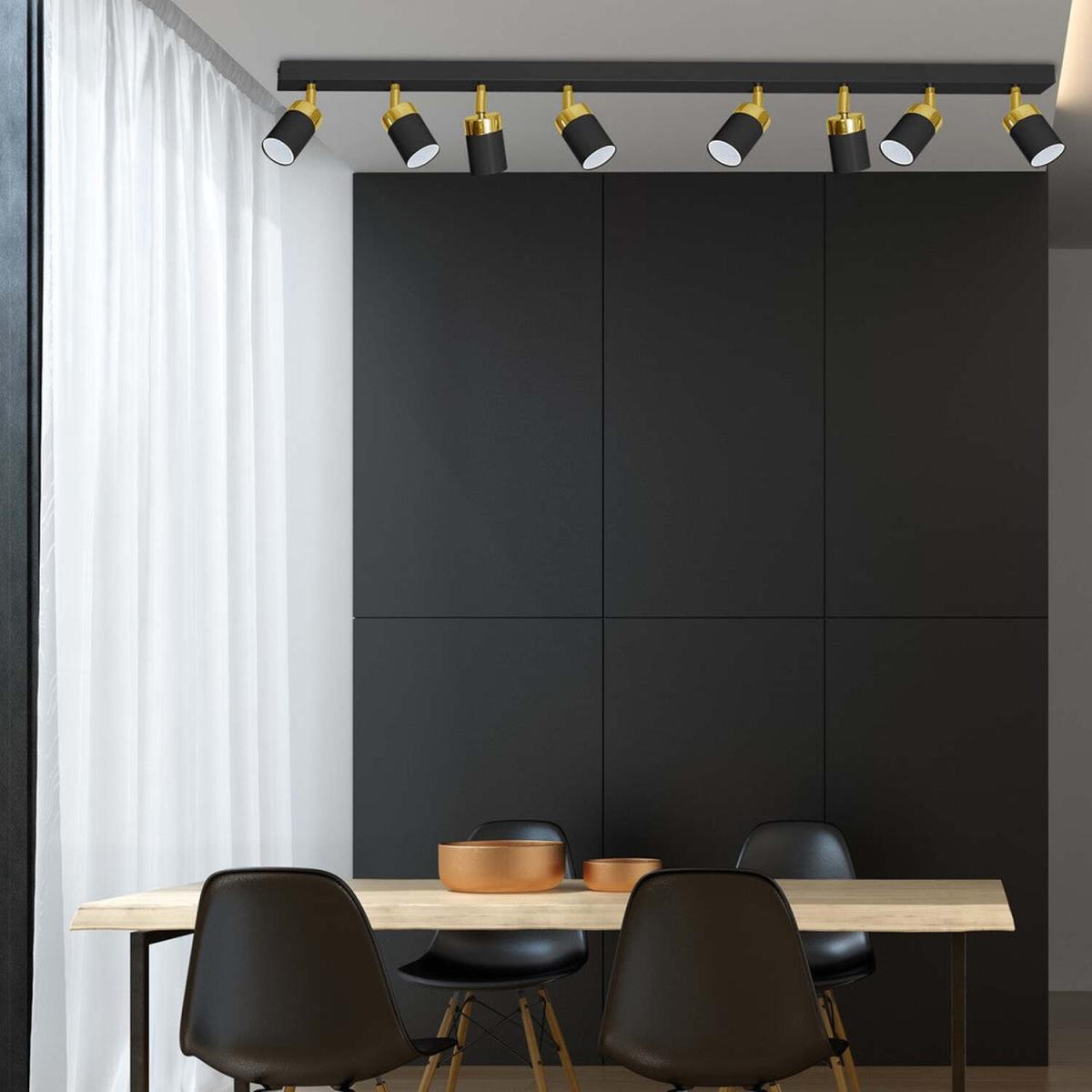 The Joker by Milagro is a range of beautifully hand made designer lights availble in matt black with gold or chrome detail. The Joker has minimalistic slender cylinder shades resembling spot lights and has options ranging from the single wall or ceiling lamp right up to the eye catching 90cm 5 lamp pendant and the 100cm "spotlight bar" with 8 adjustable shades. The contemporary styling is minimalistic with a noble touch due to the luxurious detail and is well suited to complement both modern and classic interiors. All the options are designed for use with ultra low energy GU10 LED bulbs.
