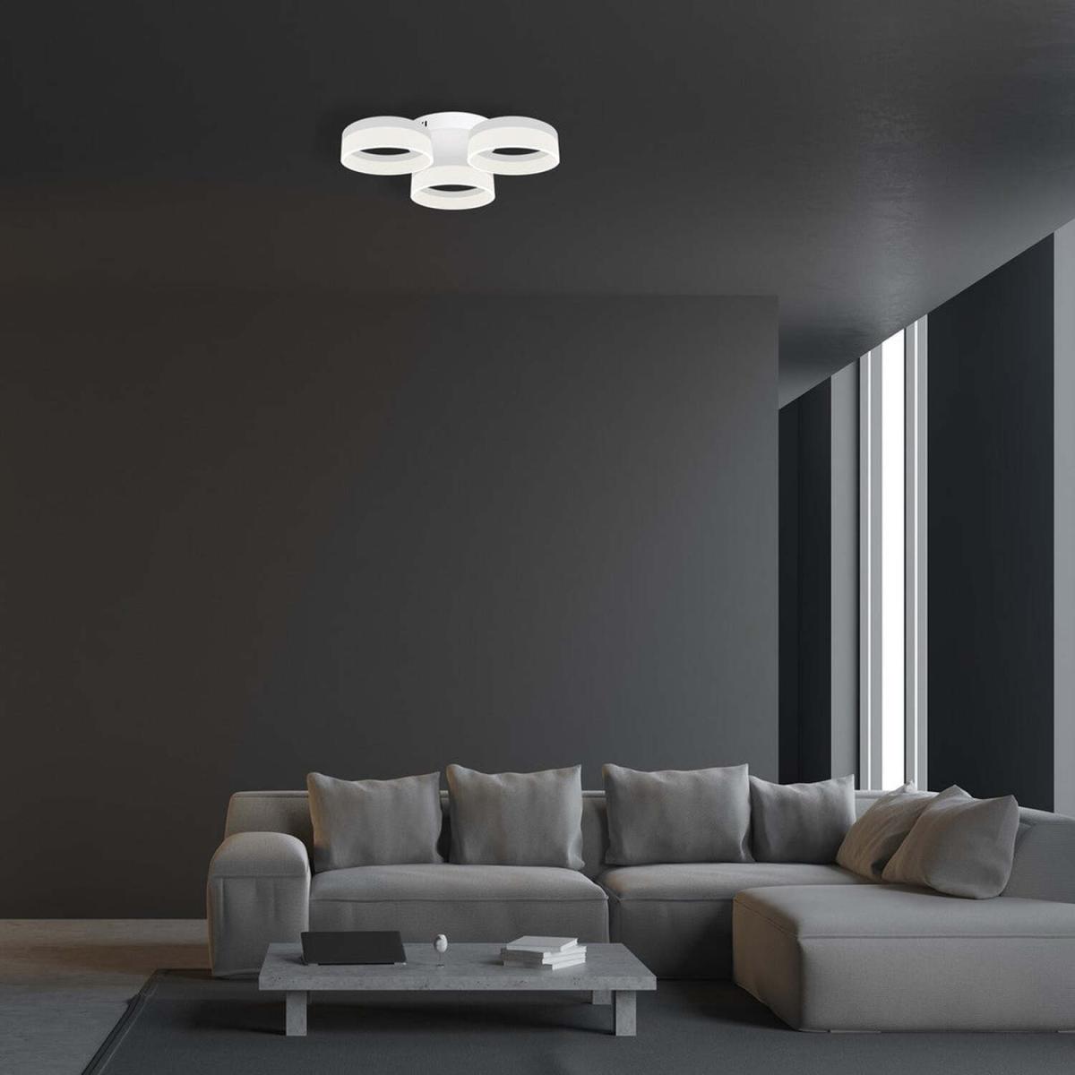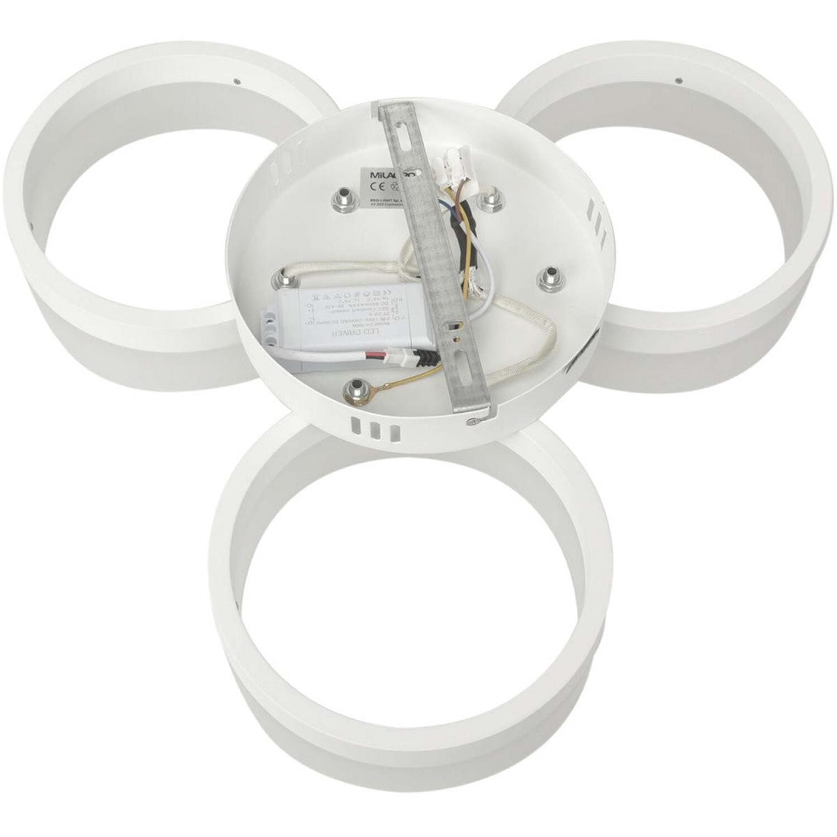 The Milagro Ring ceiling lamp is a stunning centrepiece formed from 3 gorgeous LED hoops that appear to float from the ceiling. The Ring has a high output of 2520 Lumen (equivalent to 150W from a traditional light source) at a colour of 4000. K while only consuming 36W from the lifetime included light sources