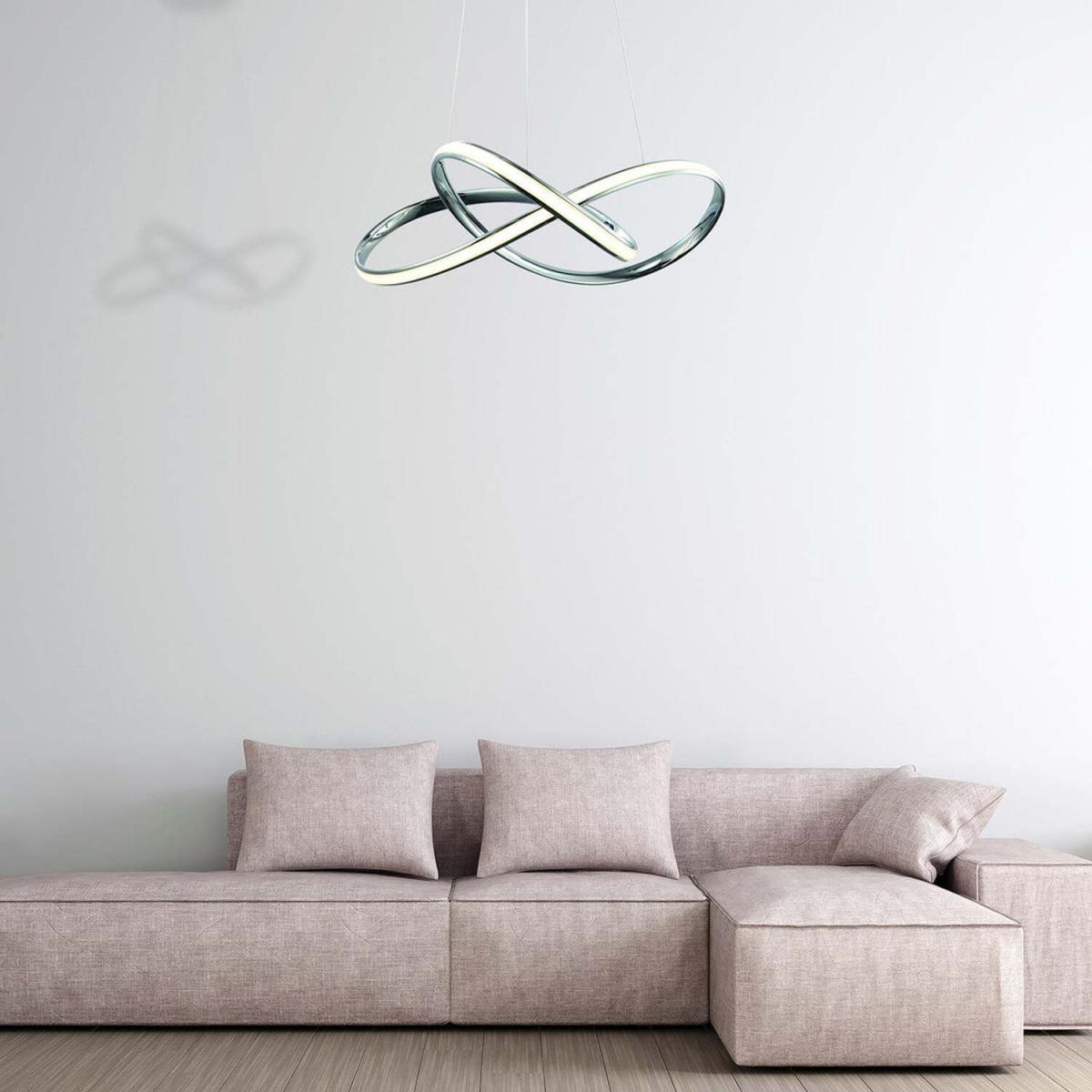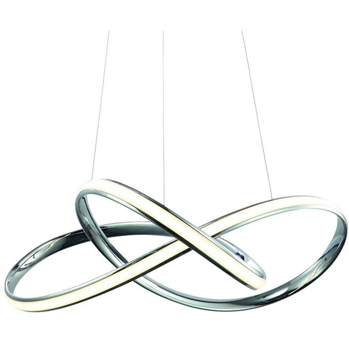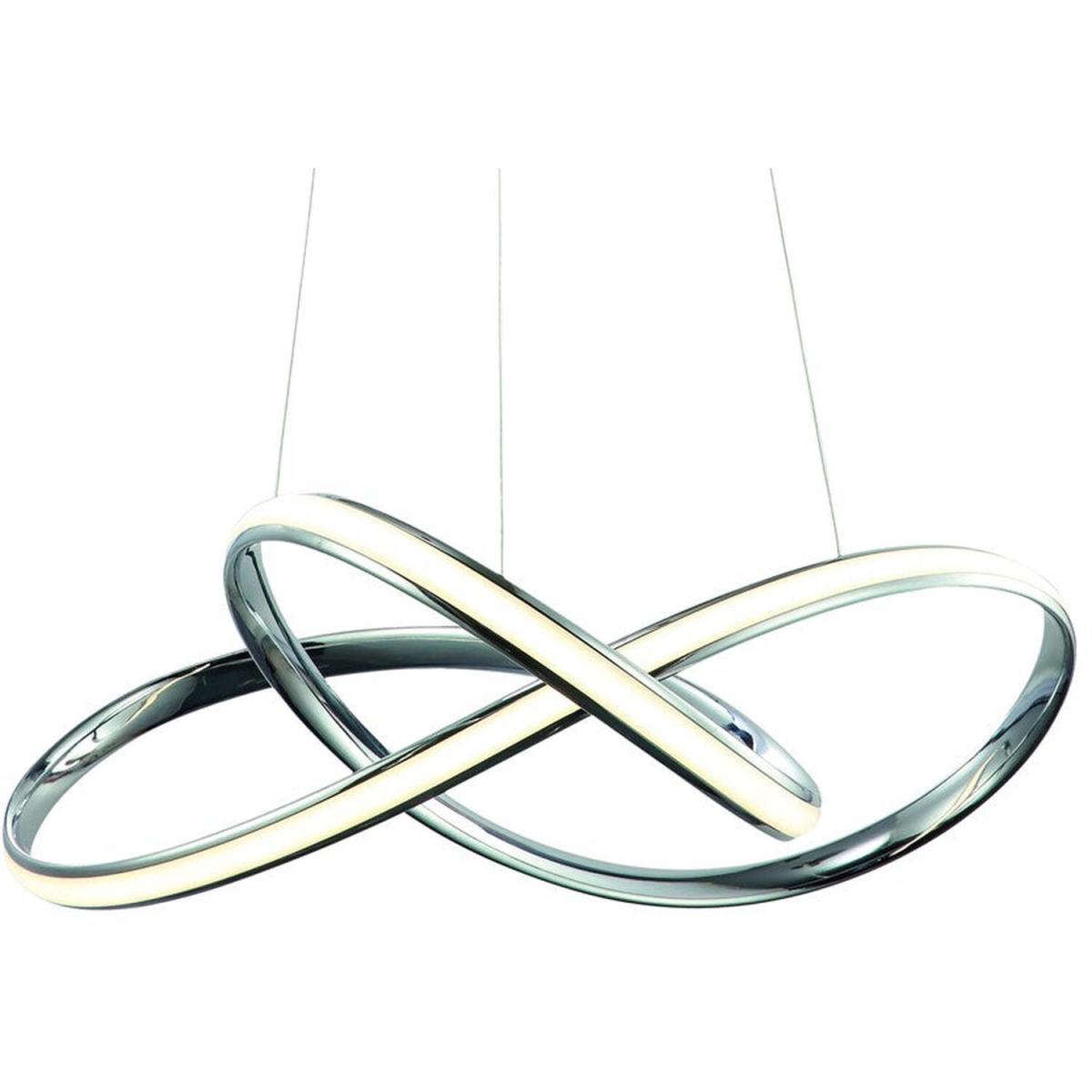 The Cappio by Milagro is a stunning designer hanging ceiling light fit to create a mesmerising centrepiece to any room. The elegant chrome curves hold the Low Energy LED light source which has an output of 2160 Lumen eqivalent to around 130W from a traditional light while only using 36. W. The Cappio is 60cm wide, 60cm long and can be height adjusted from 50-90cm
