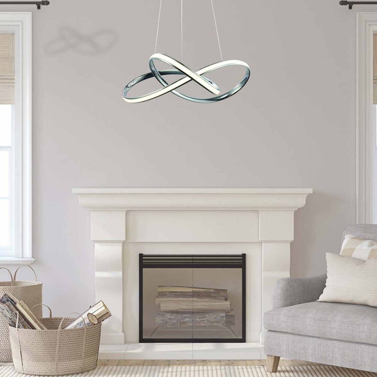 The Milagro Pendant Lamp Cappio 36W LED in chrome is a great modern addition to contemporary and minimalist interiors. Its sleek, sculptural design makes it a statement piece without overwhelming the space, perfect for living areas or kitchens where a touch of sophistication is desired. I love how its reflective chrome finish brings a subtle shine, enhancing the overall ambience. Practical styling tips include hanging it above a dining table or a sitting area to highlight conversational zones, and pairing it with other chrome or metallic accents to create a cohesive look. Keep the surrounding decor simple to really let the pendant’s sculptural form stand out.