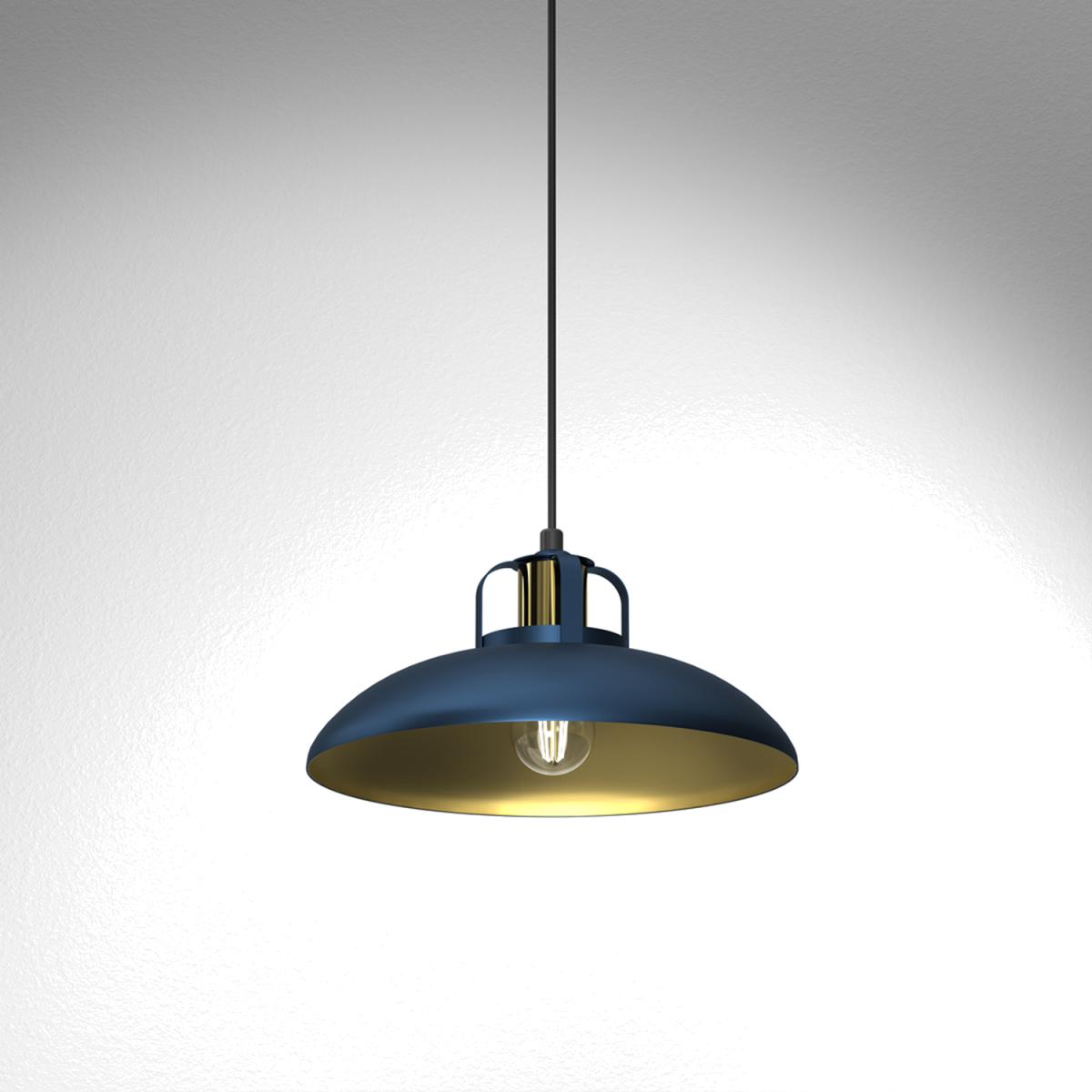 The Felix lamps from Milagro offer a fascinating blend of the rugged industrial look and the attractive chic provided by the luxurious colours. This single pendant is hand made from durable metals and finished in noble Navy Blue with a lovely golden interior to the shade as well as a golden brass effect finish to the top of the lamp. These look particularly effictive with a vintage or filament style LED bulb and is well suited to many room styles - striking against exposed brickwork or adding some ruggedness to a classy lounge or kitchen setting. The shade has a diameter of 29cm and the height can be adjusted from 50-90cm