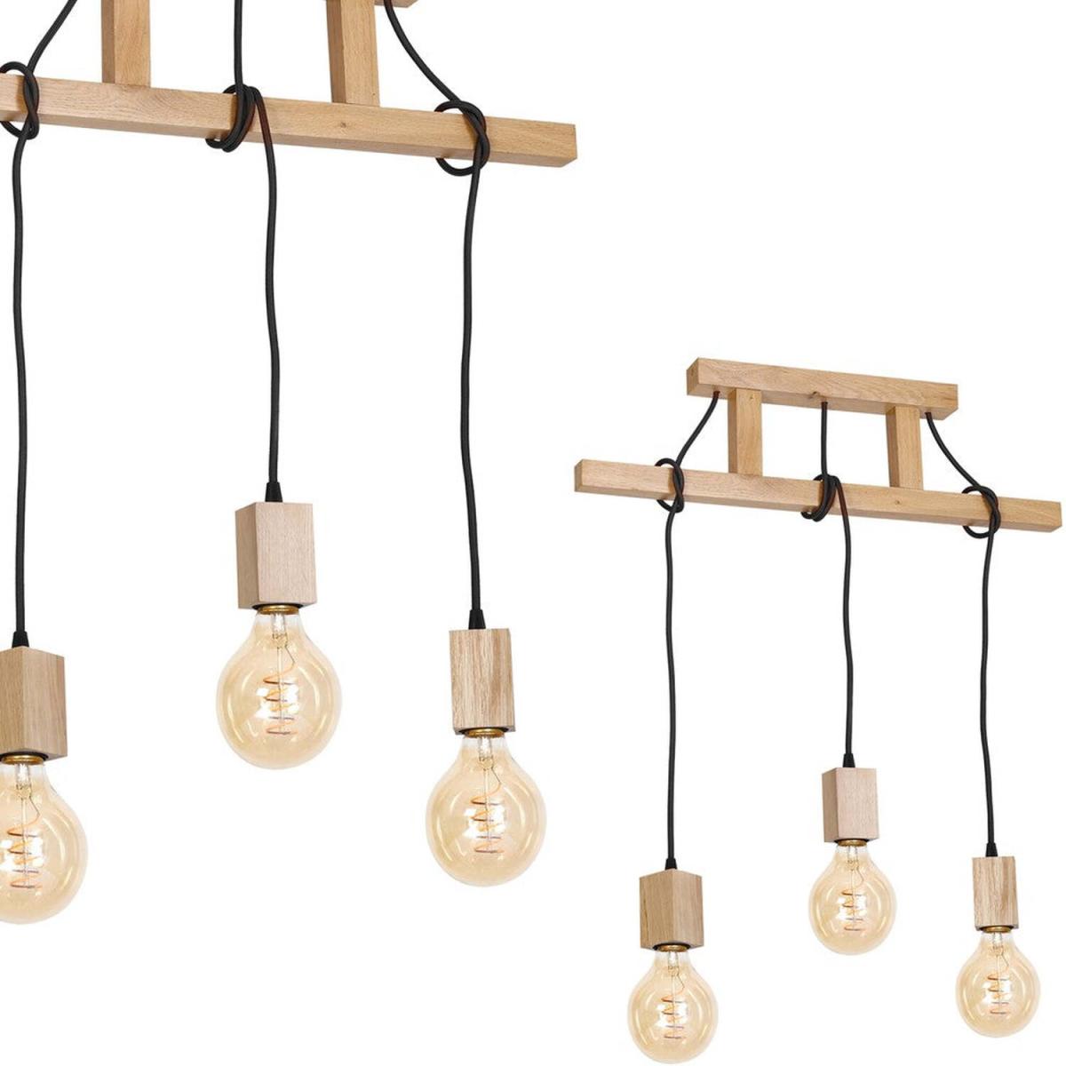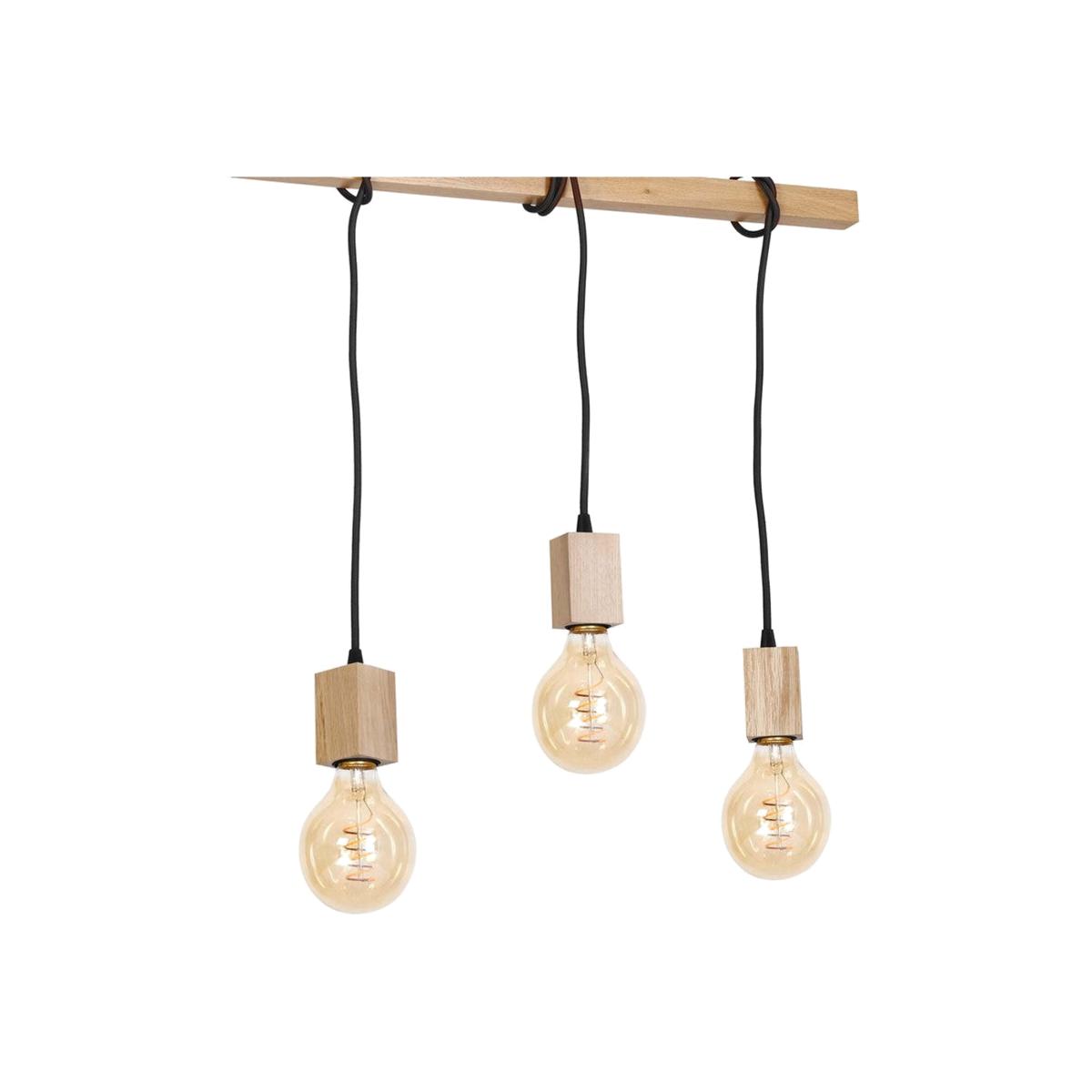 The Jack by Milagro is an individual 60cm pendant light with 3 light sources. The ladder style fixture, rope like cables and cube bulb holders all combine to create the lovely rustic ecological look. The Jack is hand made from locally sourced, accredited wood and the rope like cables are looped around the bottom rail and can be extended up to 120cm. This allows a number of non uniform effects in a rustic "workshop" style. It looks great with vintage style efficient LED bulbs and particularly suits rooms dominated by white or grey and looks great with plants or greenery.