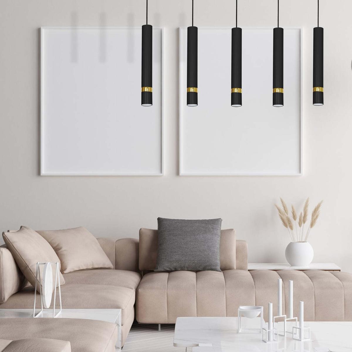 I really like this ceiling light when aiming for a modern, minimalist look. The black and gold finish offers a sleek, contemporary vibe that adds a touch of sophistication without overwhelming the space. It works especially well in open-plan living areas or kitchens where you want to create a stylish focal point. For styling tips, consider pairing it with neutral-toned furniture and subtle accent colours to let the pendant lamp stand out. It’s particularly effective in interiors with a monochrome palette or those that incorporate metallic accents, as it enhances the overall aesthetic without feeling fussy. Its clean lines and understated elegance make it versatile and suited for both residential and commercial spaces.