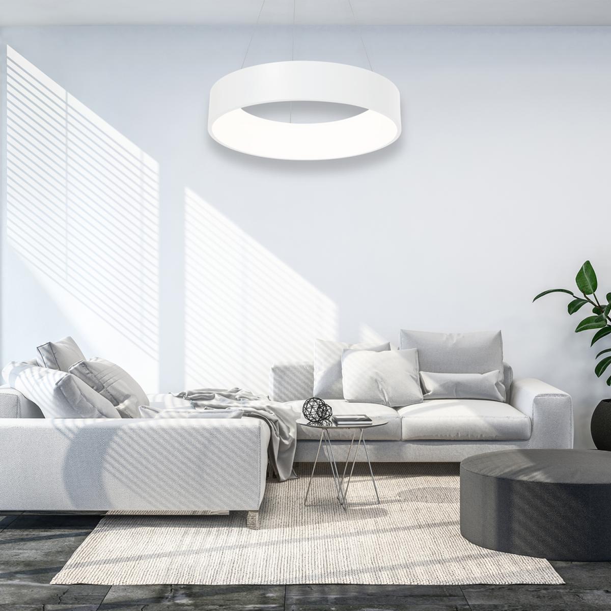 The Ohio is a designer pendant light by Milagro with a diameter of 45cm. The stylish matt white circular frame attracts attention with its clean, simple appearance. The use of LED technology ensures a long life and low energy consumption. The 24W LED module produces 1680 Lumen which is equivalent to a traditional bulb of 122W making it a great option for living room, dining room or kitchen