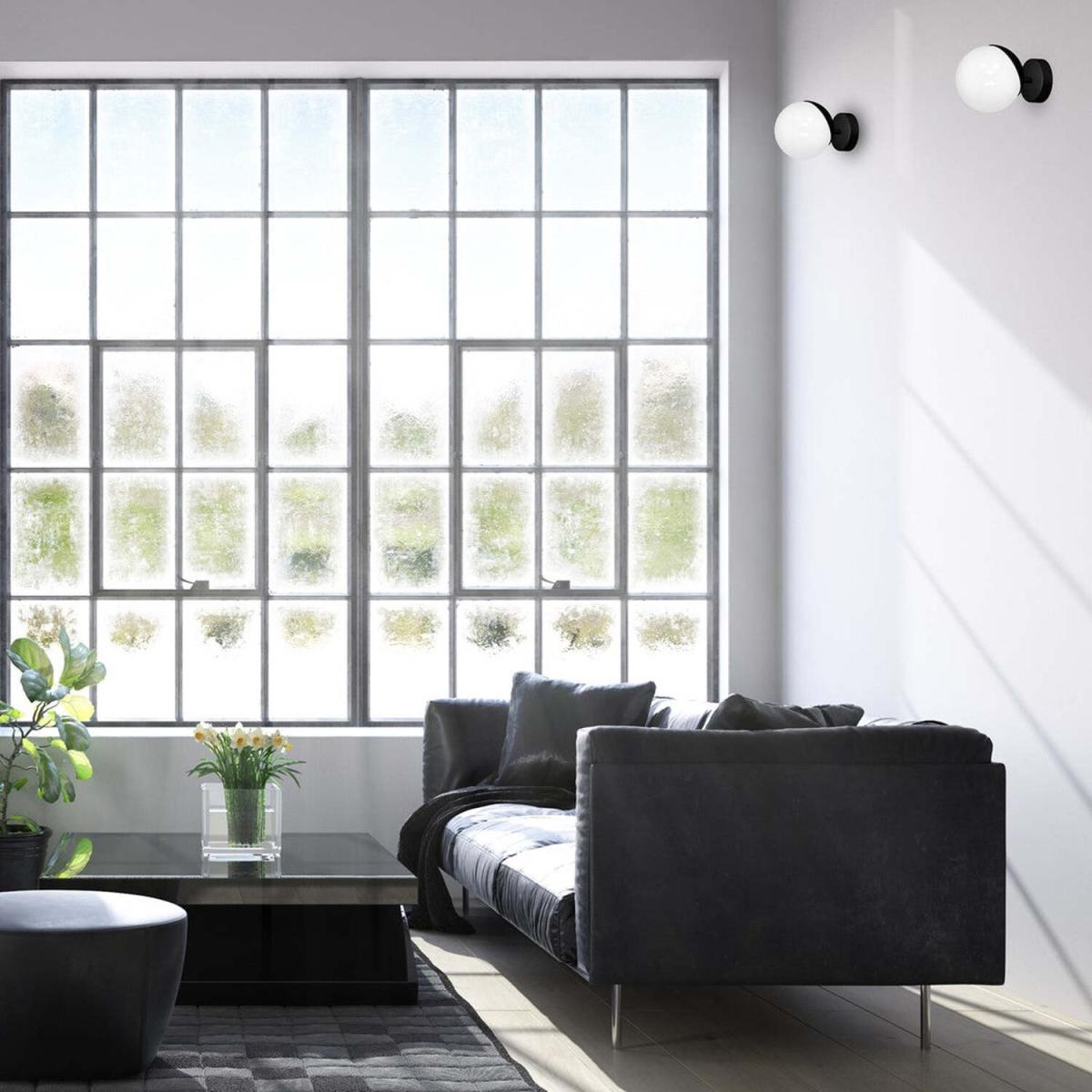 The Milafro Sfera Black Wall Light is a Modern Minimilistic light fitting hand made from Glass and Matt Black powder Coated Metal. The cool Monochromatic design would enhance any modern environment