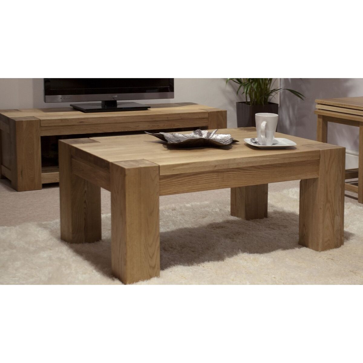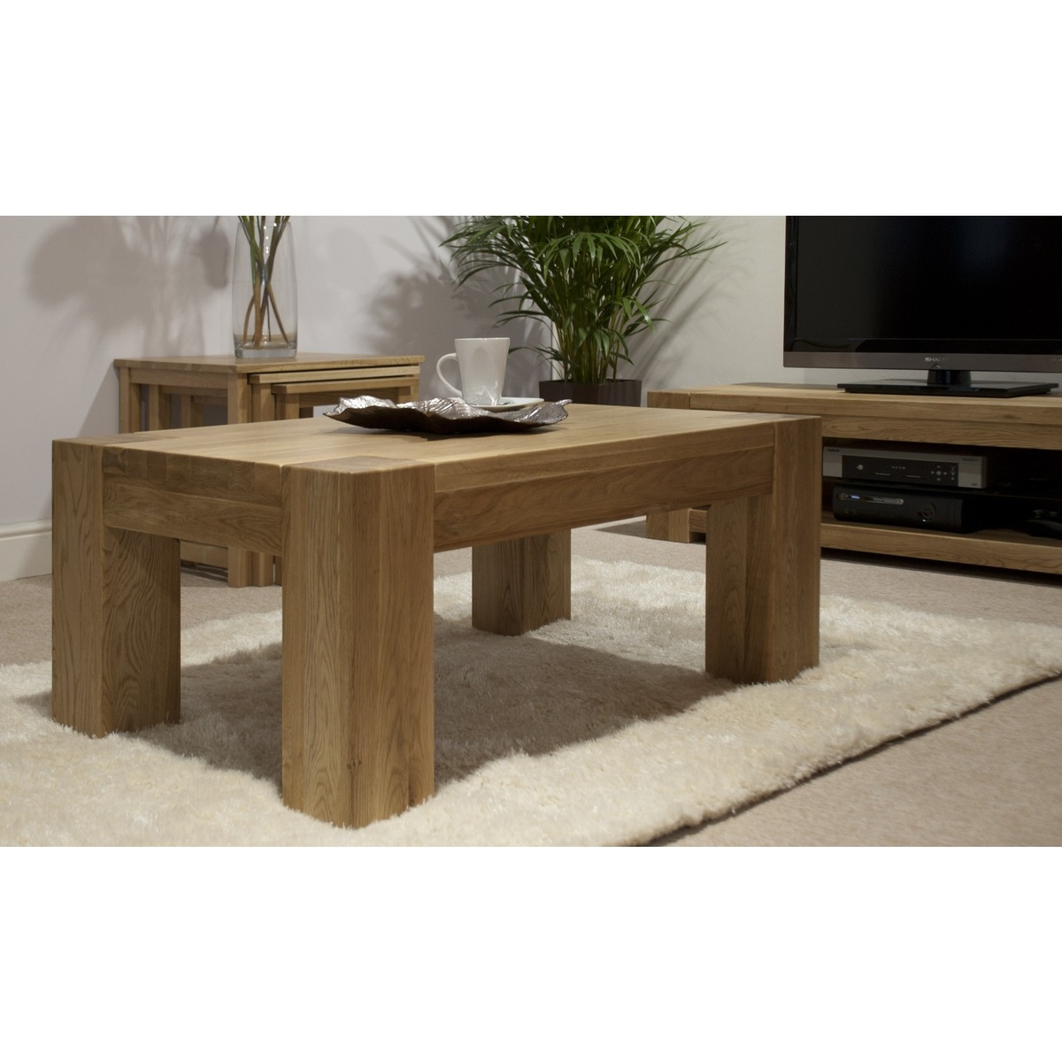 The Milan 120cm Oak 4x2 Coffee Table is an eye-catchingly chunky piece of furniture that will make an impression upon any family home’s living room. Designed with the legs cut out into the surface as an extra styling, the Milan Oak Coffee Table is a brilliantly robust table that will effortlessly bring your living room together. The Milan 120cm Oak 4x2 table has been carefully crafted from solid oak and is complete with a protective lacquer finish. Effortlessly combining superb craftsmanship with modern design, the 120cm coffee table is versatile, practical and perfectly placed in any living room. Further Items in the Collection: Milan 140cm Oak Sideboard, Milan 190cm Oak Glazed Display Cabinet, Milan 180cm Oak TV Unit, Milan 190cm Oak Bookcase, Milan 90cm Oak 3x2 Coffee Table and Milan 110cm Oak Console Table