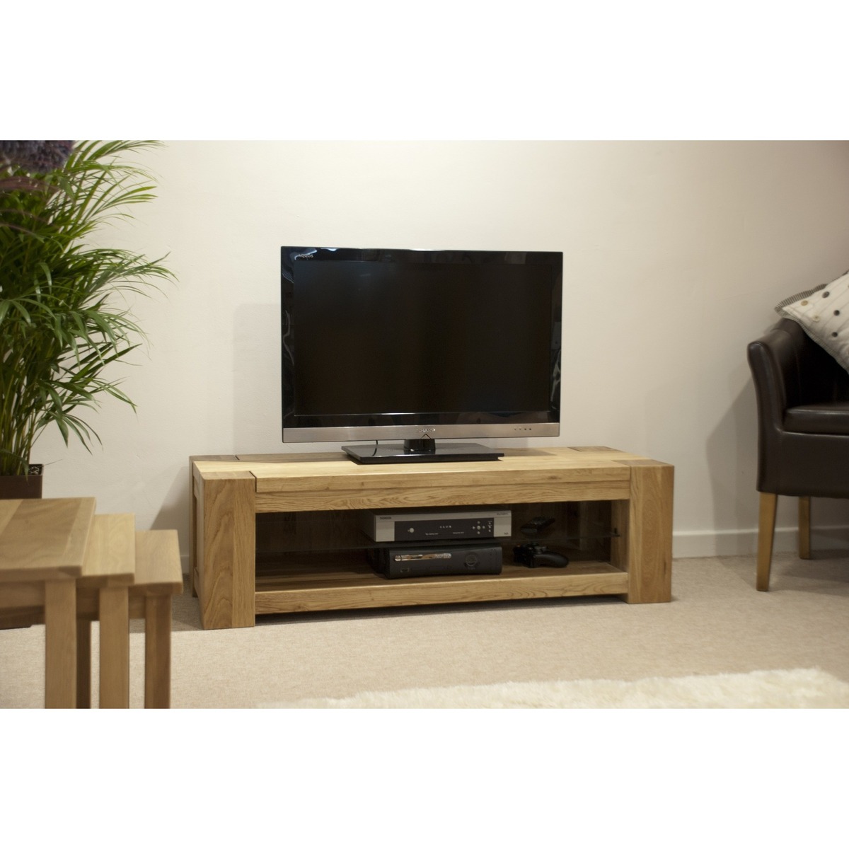 The Milan 120cm Oak TV Unit is a superb piece of furniture that accommodates your home entertainment requirements. The TV Unit is a beautifully crafted, quality piece of furniture that’s superb craftsmanship is highlighted by its contemporary chunky design. The Milan 120cm Oak TV is expertly crafted from naturally strong solid oak and is complete with a protective lacquer finish. Ideal for any home, the 120cm TV Unit is capable of accommodating any large flat screen TV and features a wide glass shelf that is ideal for your DVD/Blu-ray Player, Games Console and Digi-Box. Further Items in the Collection: Milan 140cm Oak Sideboard, Milan 190cm Oak Glazed Display Cabinet, Milan 180cm Oak TV Unit, Milan 190cm Oak Bookcase, Milan 90cm Oak 3x2 Coffee Table and Milan 110cm Oak Console Table