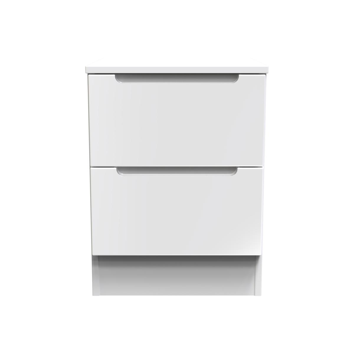 Milan 2 Drawer Bedside Cabinet - White Gloss & White