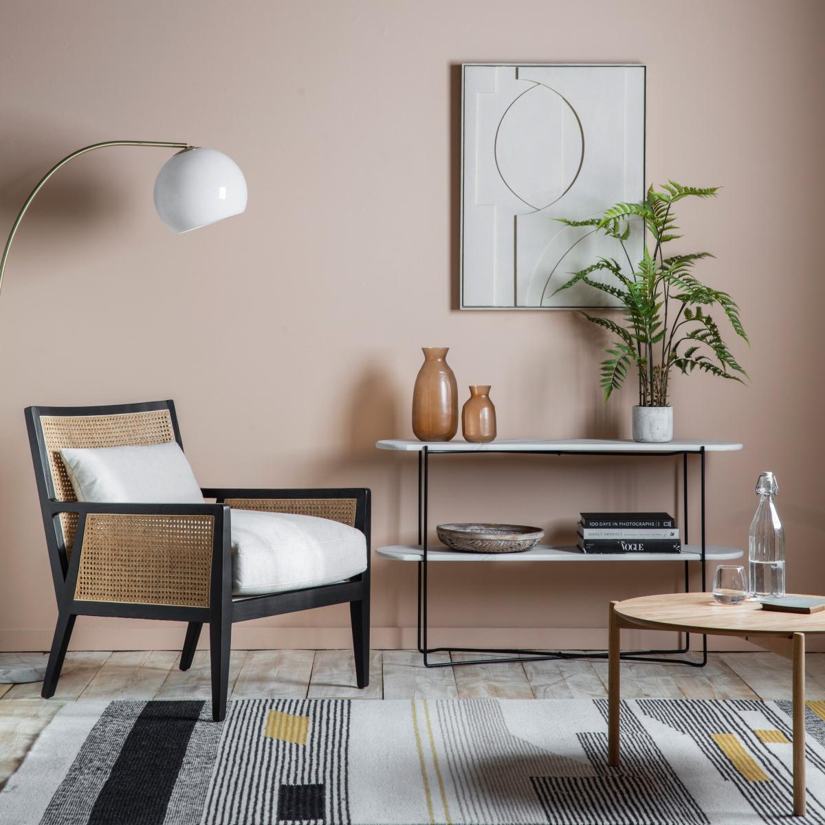 I’m a fan of this armchair for its clean lines and mix of natural rattan with a dark-stained frame - it brings warmth without feeling fussy. It sits equally well in a Scandi-inspired living room, a relaxed coastal scheme or even a contemporary office corner. To style it, layer a neutral lumbar cushion or a soft sheepskin throw for added comfort and texture. Place it beside a slimline side table and a potted plant to create a simple reading nook. Its versatile palette means you can swap in colourful accessories seasonally, keeping the look fresh without overhauling your scheme.