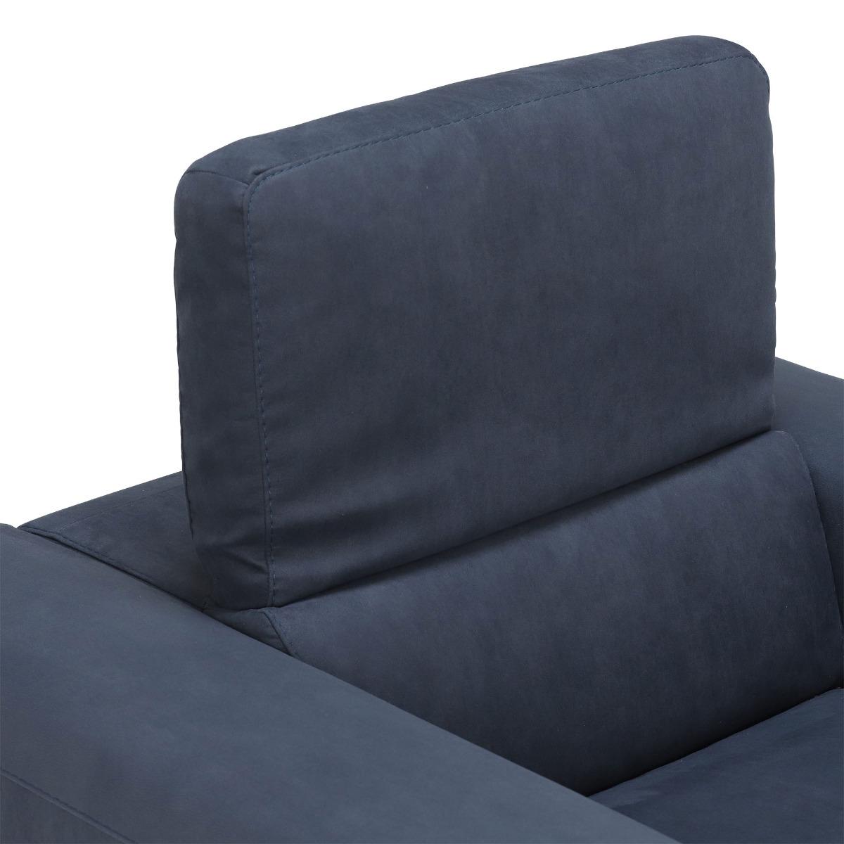 I love this armchair for its bold blue fabric and modern silhouette, making it a versatile statement piece. It works well in contemporary interiors, especially those with a colour palette that includes neutrals or complementary shades like mustard or soft pink. The added headrest provides extra comfort, perfect for relaxing or reading. For styling tips, pair it with textured cushions or a cosy throw to soften the look, and position it alongside a sleek coffee table or in a lounge corner to create a welcoming yet sophisticated space. Its clean lines and sturdy frame also make it suitable for both minimalist and eclectic interiors.