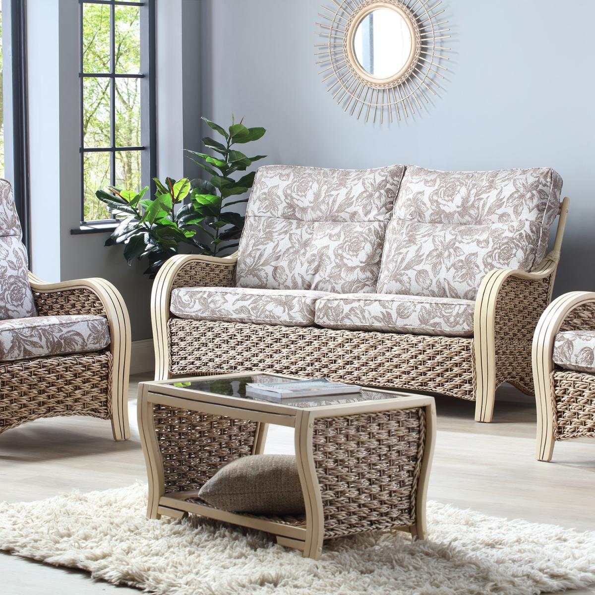 The Milan 3-Seater Sofa in the specialist Aqua Clean Floral Beige material will keep you comfortable all year round, it has a natural wash finish and is perfect for any home. It not only looks wonderful, but it is also a natural, hand-crafted, ethical product manufactured from sustainably farmed materials. The Milan Natural collection is ideal if you are searching for a new, stylish, and contemporary couch or want to give your conservatory, kitchen area, summer house, or even living room, a real sense of modern elegance. The set includes a 3-Seater Sofa and soft, foam-filled seat cushions with supportive fibre-filled back cushions that are Dacron wrapped for longevity as well as a comfortable plump finish. The Milan Natural Wash collection features a sustainably farmed rattan frame and Pirelli webbing has been used in the base of the furniture for a sturdy foundation designed to last many years of comfort.