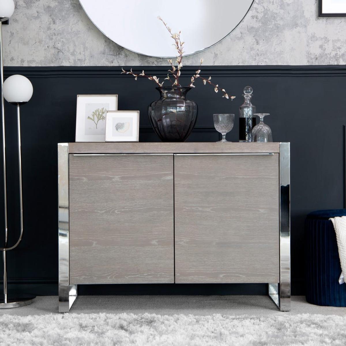 Tired of the traditional? Meet our Milan Chrome & Oak Collection. This stunning collection pairs grey-washed real oak veneer with chrome detailing in the most sophisticated and contemporary way imaginable. Bringing light and texture to any room, this stunning Living & Dining furniture collection features rounded chrome legs and accents, adhering to the latest interior design trends. To ensure consistency and in line with the overall contemporary feel of the range, only the highest grade solid real wood veneers have been chosen in the manufacturing of this unforgettable Collection, to ensure there are no imperfections. Loaded with unique items, look out for the wonderful Bench combinations, which can connect together to form a booth.