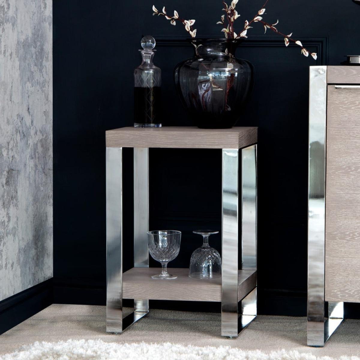 Tired of the traditional? Meet our Milan Chrome & Oak Collection. This stunning collection pairs grey-washed real oak veneer with chrome detailing in the most sophisticated and contemporary way imaginable. Bringing light and texture to any room, this stunning Living & Dining furniture collection features rounded chrome legs and accents, adhering to the latest interior design trends. To ensure consistency and in line with the overall contemporary feel of the range, only the highest grade solid real wood veneers have been chosen in the manufacturing of this unforgettable Collection, to ensure there are no imperfections. Loaded with unique items, look out for the wonderful Bench combinations, which can connect together to form a booth.