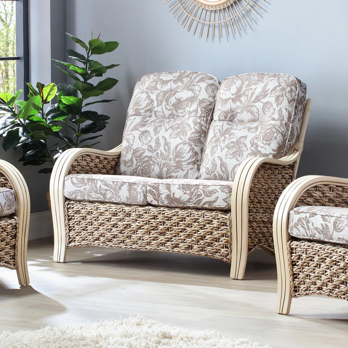 The Milan 2-Seater Sofa in Floral Beige will keep you comfortable all year round, it has a natural wash finish and is perfect for any home. It not only looks wonderful, but it is also a natural, hand-crafted, ethical product manufactured from sustainably farmed materials. The Milan Natural collection is ideal if you are searching for a new, stylish, and contemporary couch or want to give your conservatory, kitchen area, summer house, or even living room, a real sense of modern elegance. The set includes a 2-Seater Sofa and soft, foam-filled seat cushions with supportive fibre-filled back cushions that are Dacron wrapped for longevity as well as a comfortable plump finish. The Milan Natural Wash collection features a sustainably farmed rattan frame and Pirelli webbing has been used in the base of the furniture for a sturdy foundation designed to last many years of comfort.