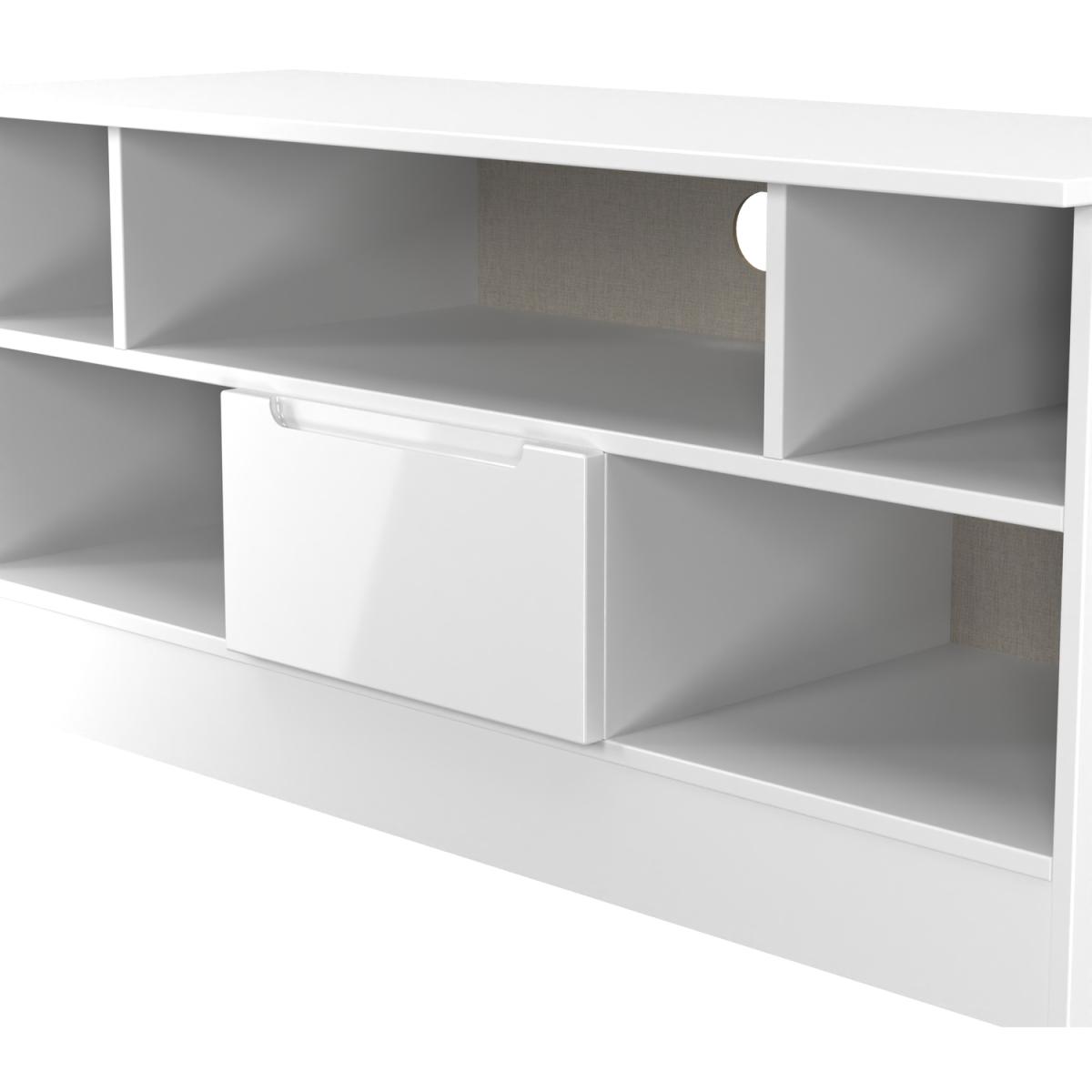 This low level TV Corner unit features plenty of open shelving and a central storage drawer and will support a flat screen TV of up to 50". An exciting new range ideal for the modern contemporary home it comes with distictive indented handles, perfect for the 21st century home. All our furniture is made to order in the United Kingdom, to the highest quality using responsibly sourced materials. It is delivered within 10 working days direct to your location of choice by one of our two man delivery teams, and comes fully assembled (although items with legs will have those legs removed during transit to avoid damage).
