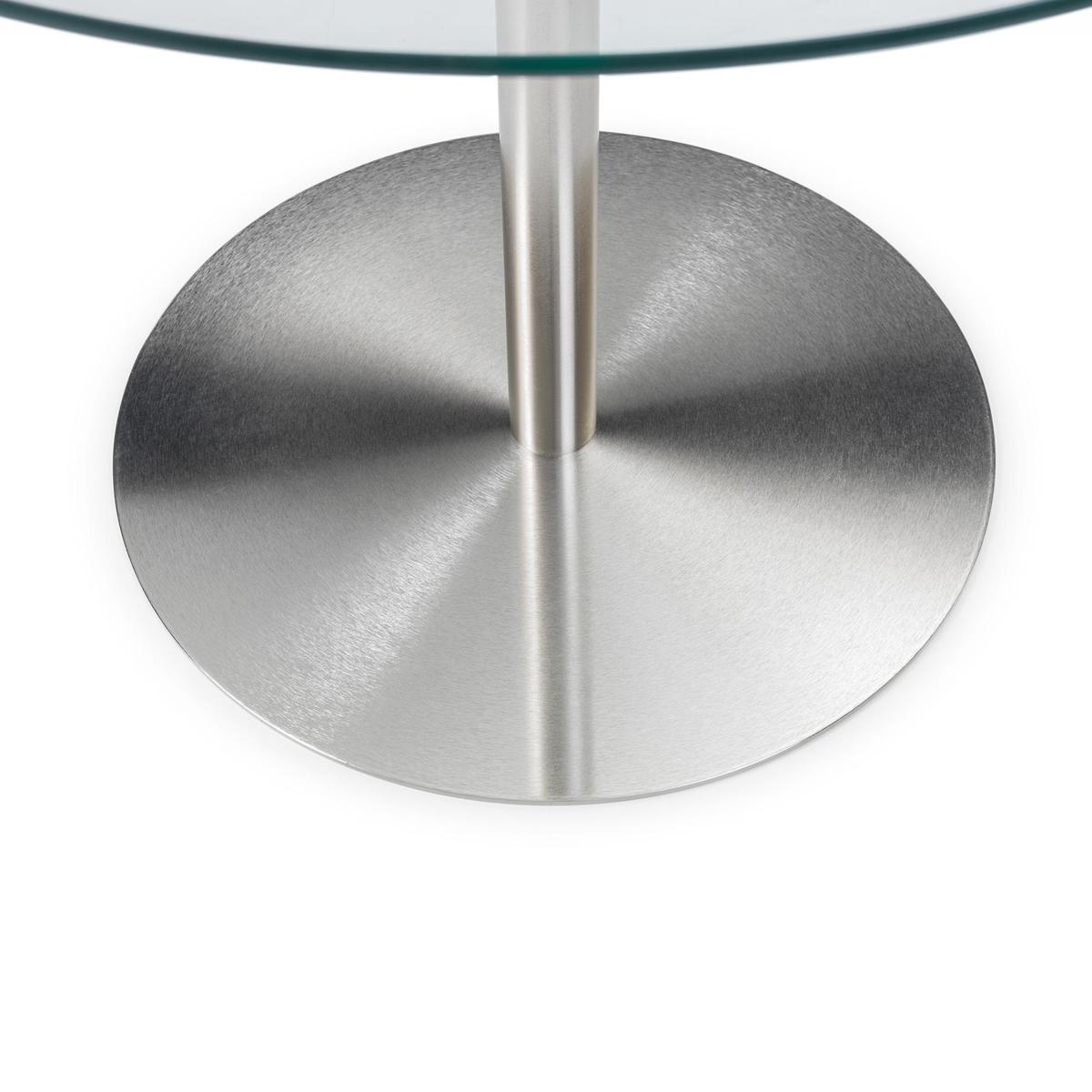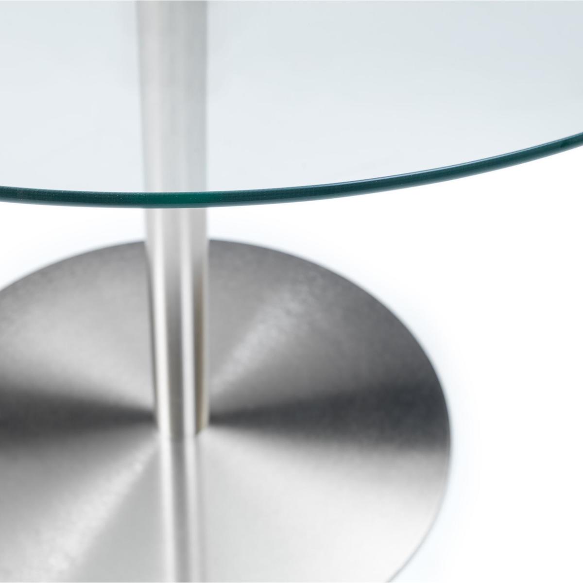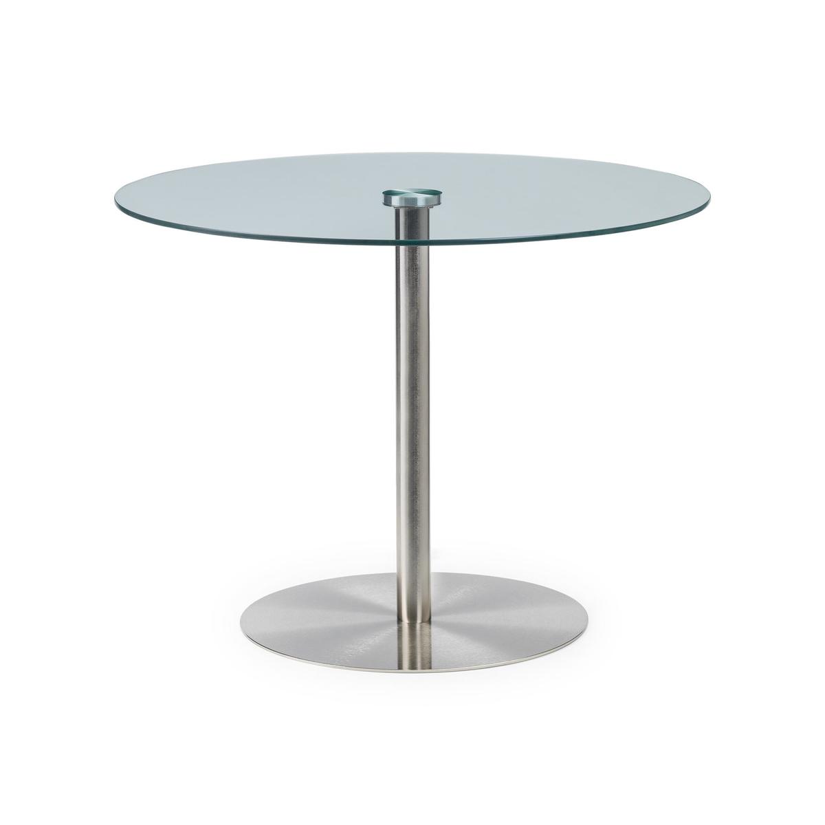 Maximises space in any room. Suitable for those with a smaller kitchen or dining area. Constructed from brushed steel with a round glass table top. Suitable to mix and match with a range of Julian Bowen dining chairs. The simplistic yet modern design adds life and character to any home.
