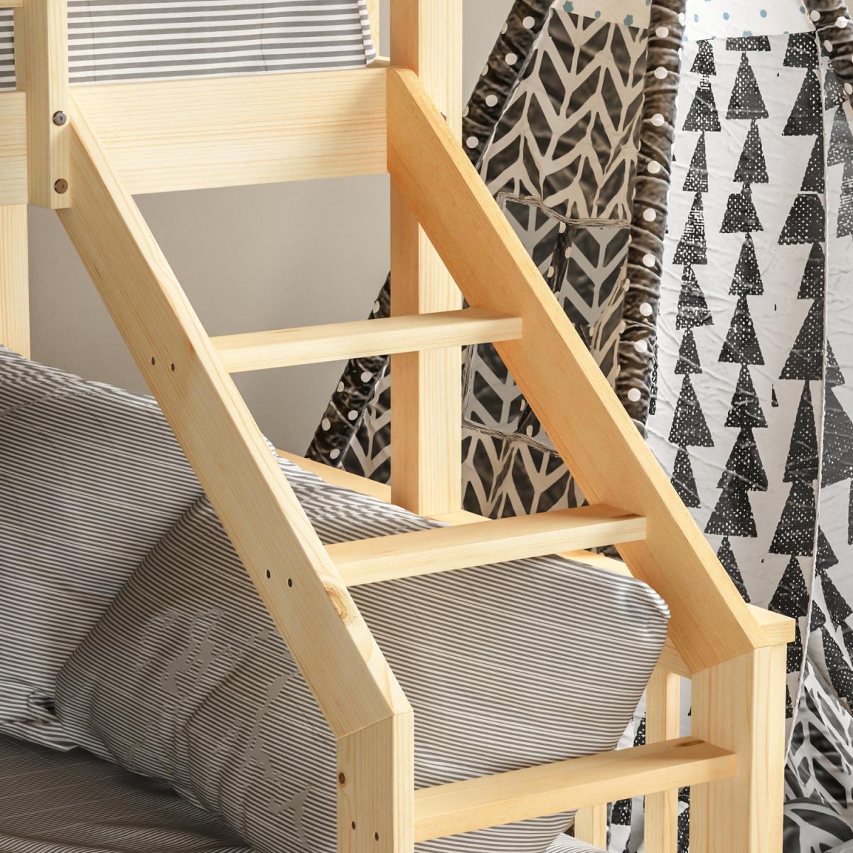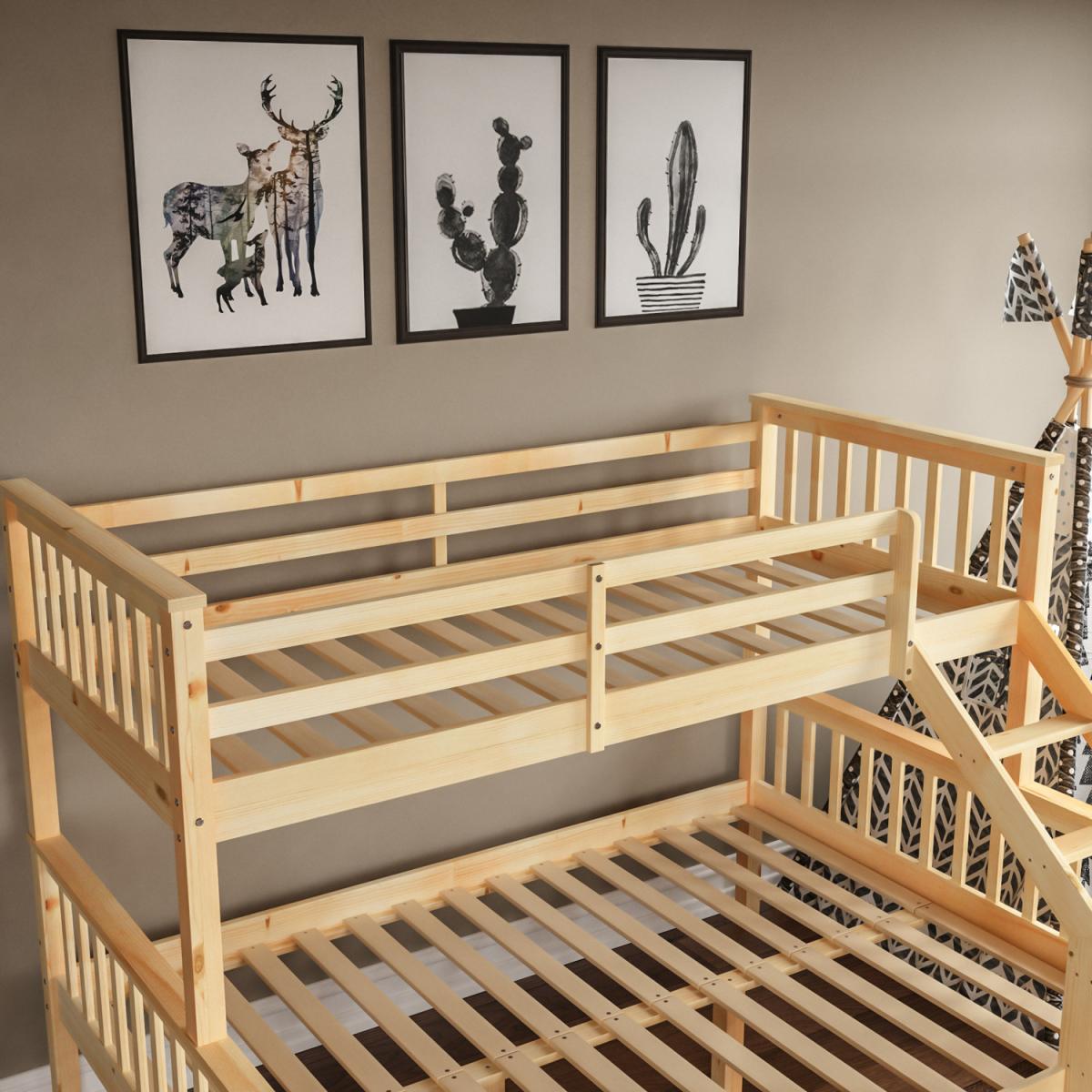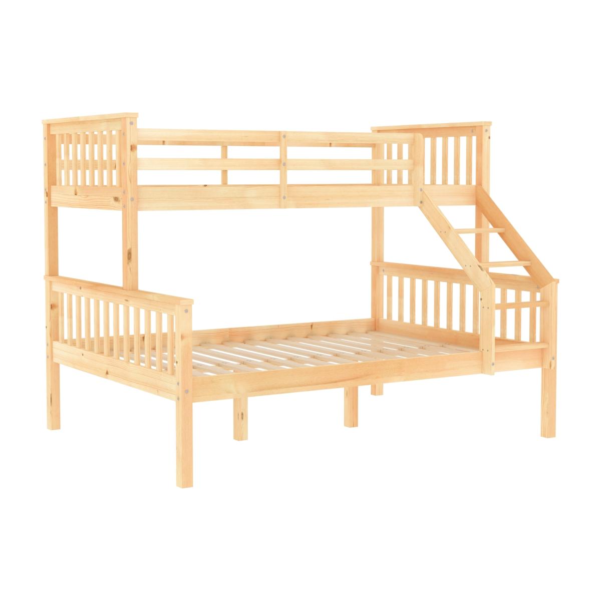 Milan Triple Sleeper Bunk Bed provides sleeping space for one person at the top tier and two people at the bottom tier this is a perfect solution for a limited space rooms. This bunk bed is adjustable which makes it a gem among all other bunk beds: you can change ladder positioning from left side to right side to fit your room layout. Moreover, it can be detached in two separate beds if you like.
