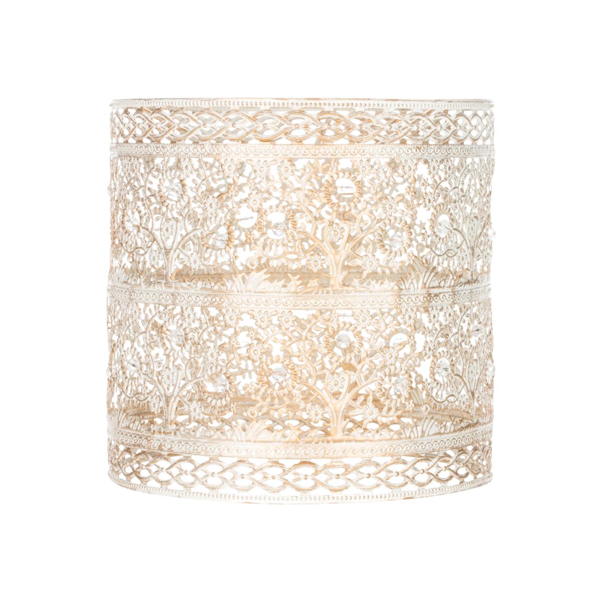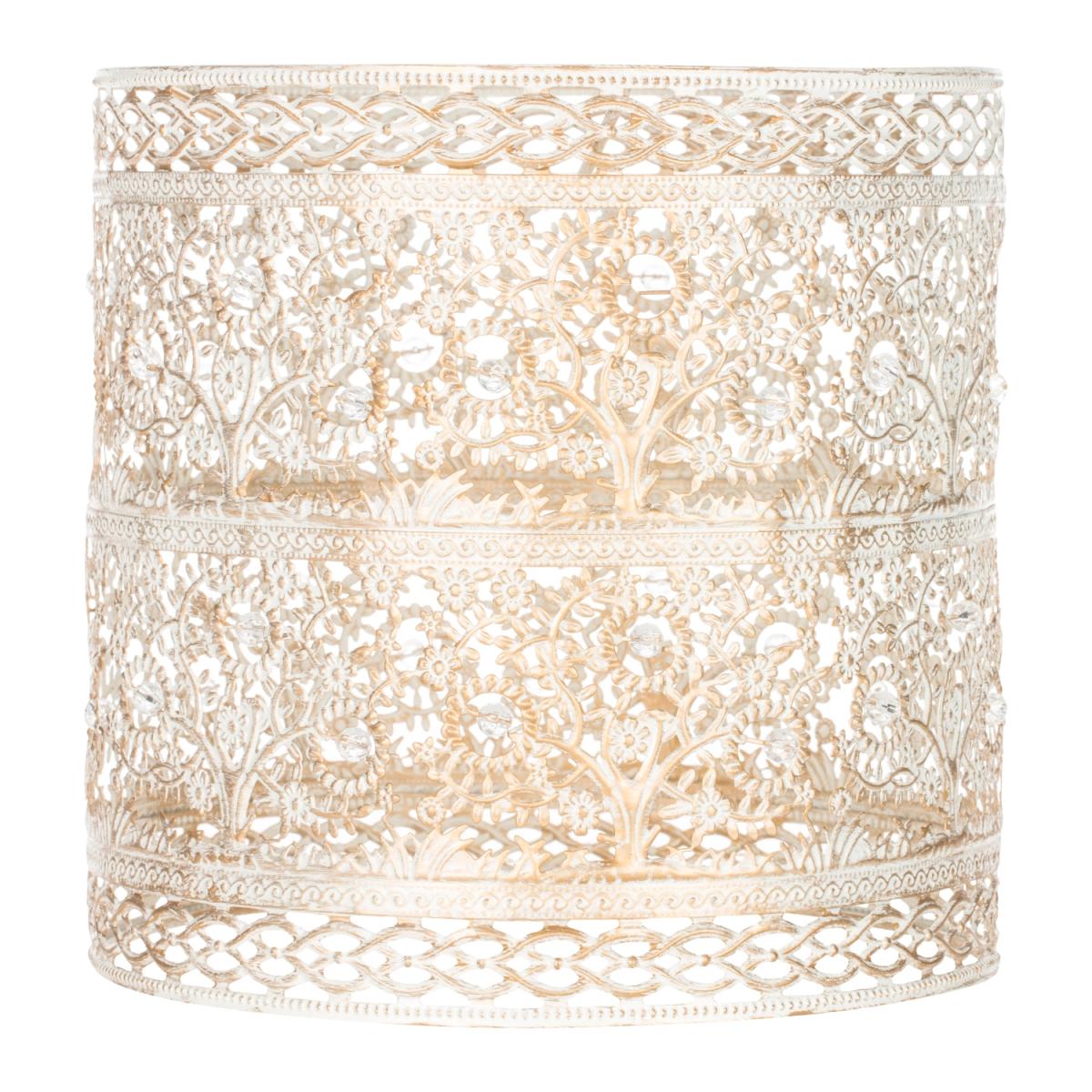 With its beautifully intricate winding tree and floral designs, this Milana Crystal Ivory Lampshade will add glamour and opulence to your room. Finished in shabby-chic ivory paint, this lamp shade is a timeless design that will look good in both traditional and contemporary interiors. When lit, light will burst through the detailed metal designs, filling your room with light and drawing attention to its stunning patterns.