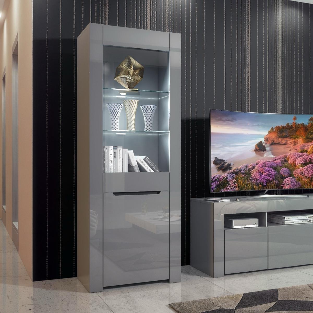The cabinet features a high gloss grey finish to the front (including door and front panels) with the rest of the body (top, sides and inside) in a matt grey finish and a stylish graphite grey inner handle. The cabinet features a glass fronted door that opens to the left. The display area has two glass shelves and two wooden shelves below, excellent for additional storage. Dimensions: (WxHx. D): 60x165x35cm. White LED lights are included, they are mains powered with a UK power adapter and foot switch to turn them on and off. Due to the nature of glass shelves, they will have a green hue. Note that this is a flatpack item and will require assembly. Picture instructions, and a written notice are included with the item, these should be looked over carefully, before attempting assembly. Delivery is via a UK courier (24/48 hour service), any questions relating to delivery can be put to us. This is a basic delivery service, delivery is to the front door of the building only. Any damages or faults must be put to us before attempting assembly. You should not begin assembly until your problem is resolved by a member of our customer support team. Damage reported after assembly of the item will not be considered for return/refund, this may be the result of improper assembly. We are unable to accept returns of items that have been previously assembled or partially assembled. If you are not satisfied with your purchase, you can return the product for a refund, within 30 days after delivery. Any product you return must be in the original packaging in the condition that you received it, unused, including all internal protective packaging, and appropriately secured as before. We cannot accept returns of items that have been assembled, these will be treated as 'used'. Please note that returns must be made at buyer's own cost.