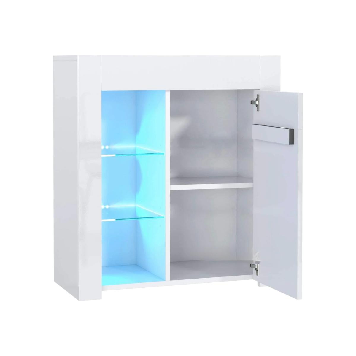 The cabinet features a high gloss White finish to the front (including door and front panels) with the rest of the body (top, sides and inside) in a matt white finish and a stylish graphite grey inner handle. The cabinet features an open display area with two glass shelves as well as a cupboard with a wooden shelf for storage Dimensions: (WxHx. D): 75x83x35cm, LED lights are included, they are mains powered with a UK power adapter and foot switch to turn them on and off. This is a flatpack item requiring assembly. Picture instructions, and a written notice are included with the item, and should be looked over carefully, before attempting assembly. Delivery is via a UK courier (24/48 hour service), any delivery questions can be put to us. This is a basic delivery service, to the front door of the building only. For additional delivery services, please contact us for details. Any damages or faults must be put forward to us before attempting assembly. You should not begin assembly until your problem is resolved by our customer support team. Damage reported during or after assembly of the item will not be considered for return/refund, this may be the result of improper assembly. Please note that returns must be made at the buyer's own cost.