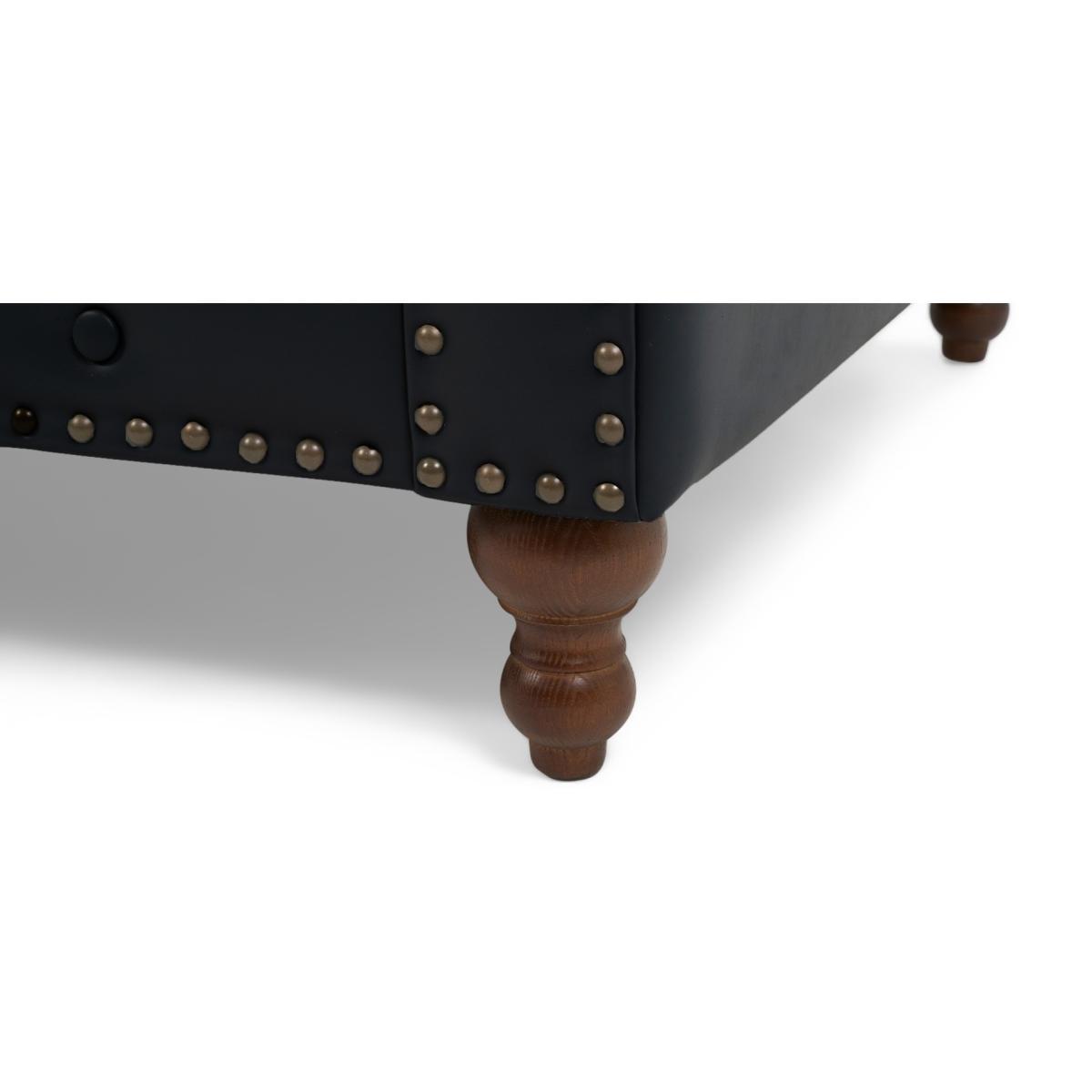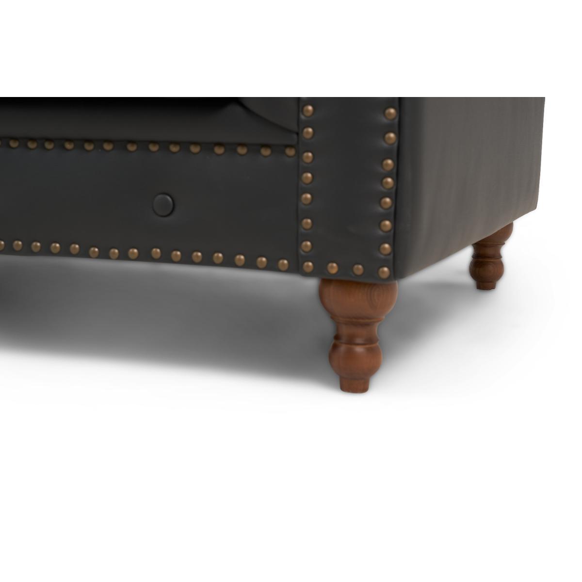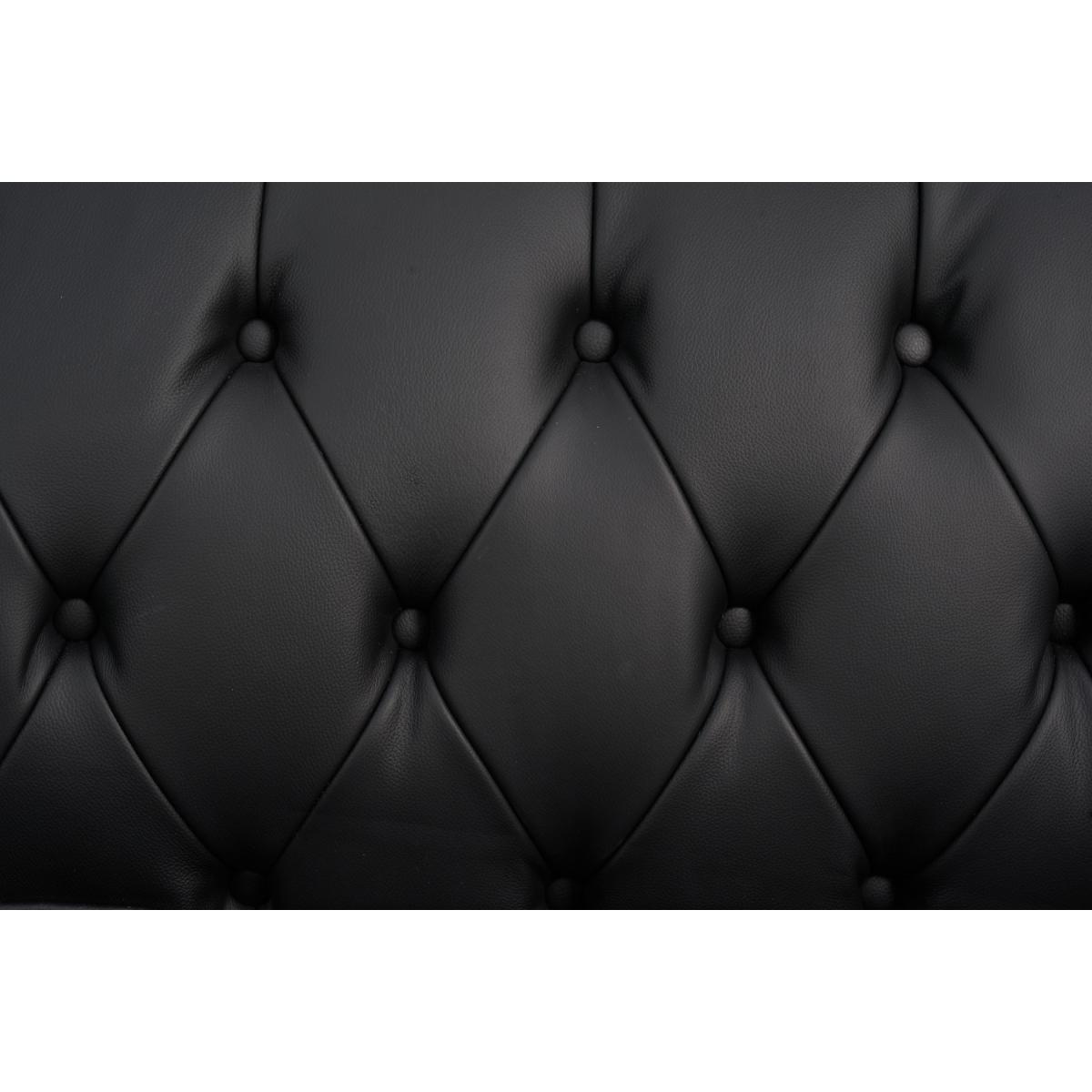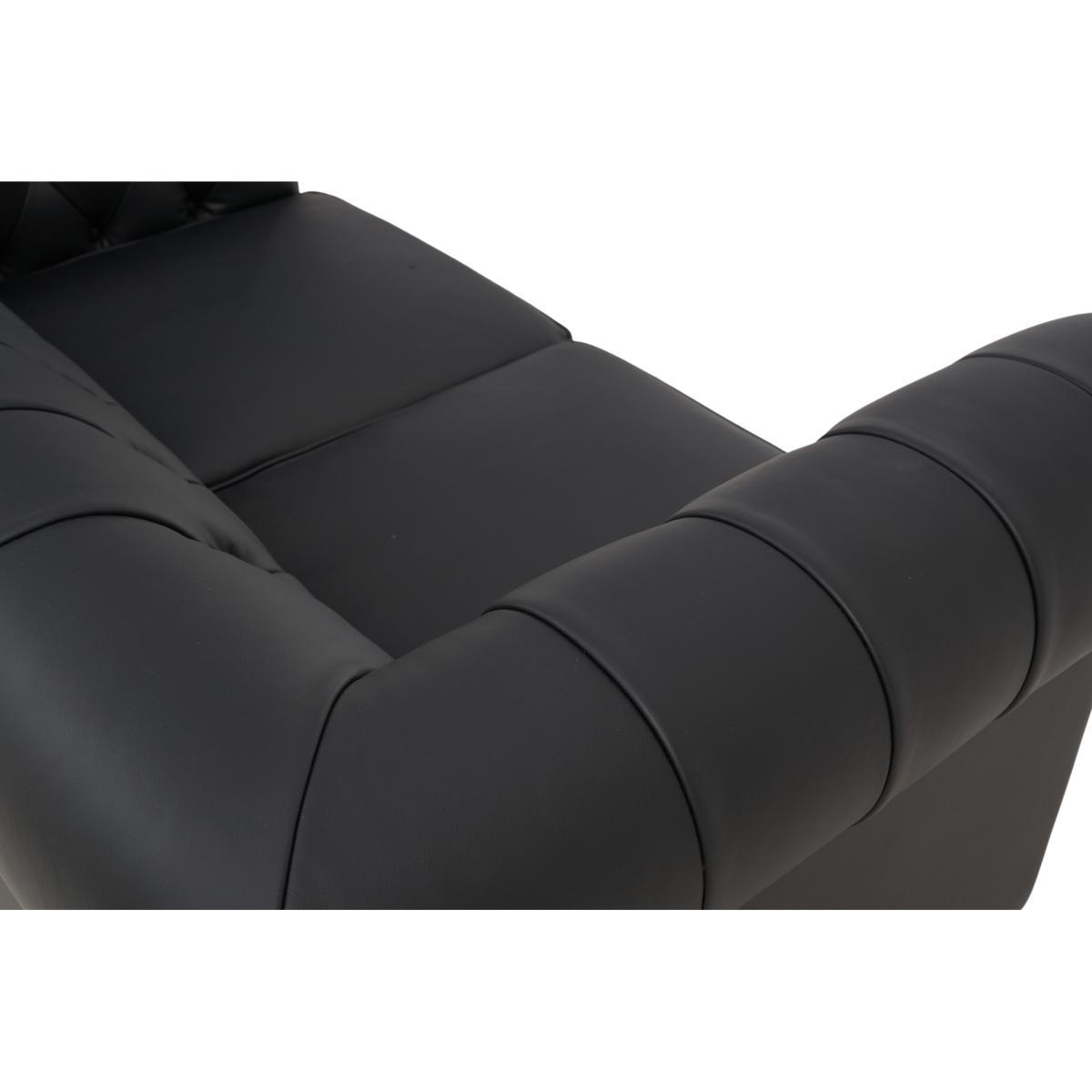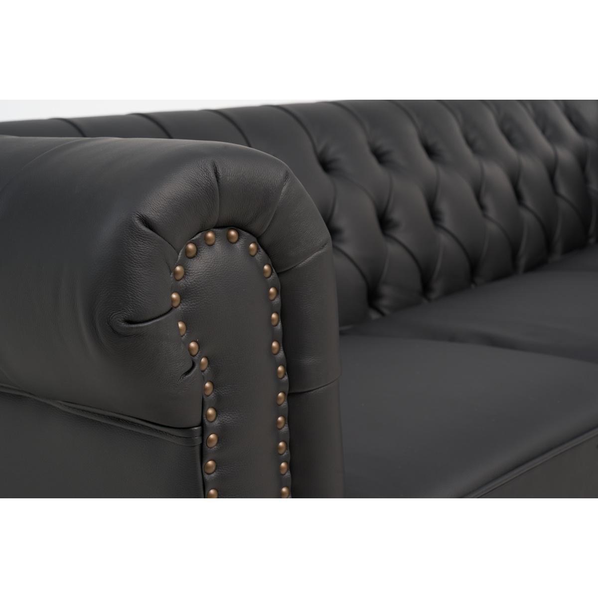 Upholstered in smooth black leather, the Milano 2 Seater Sofa is classically stylish. Featuring a deep-buttoned backrest and scrolled arms, the Chesterfield sofa is complete with a metal stud trim. Deep filled seat cushions offer a comfortable sit while the solid wood legs are stylish and supportive with an ornate design. Leather sofa with classic Chesterfield design. Stunning buttoned backrest and scrolled arms Complete with chic metal stud trim. Carefully crafted, with ornate solid wood feet. Plump, deep filled seat cushions provide a comfortable sit. Comes with two free matching scatter cushions. Also available in:Brown Leather, Grey Linen, Blue Plush, Green Plush, Grey Plush.
