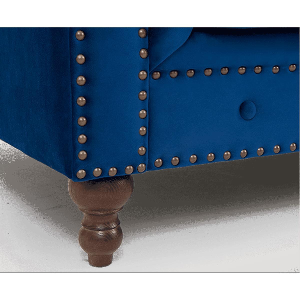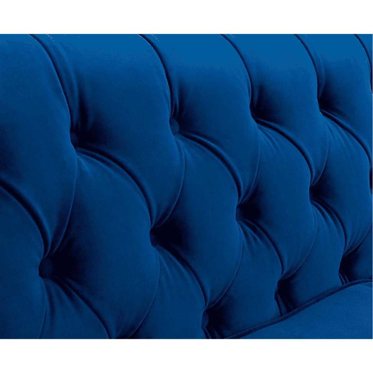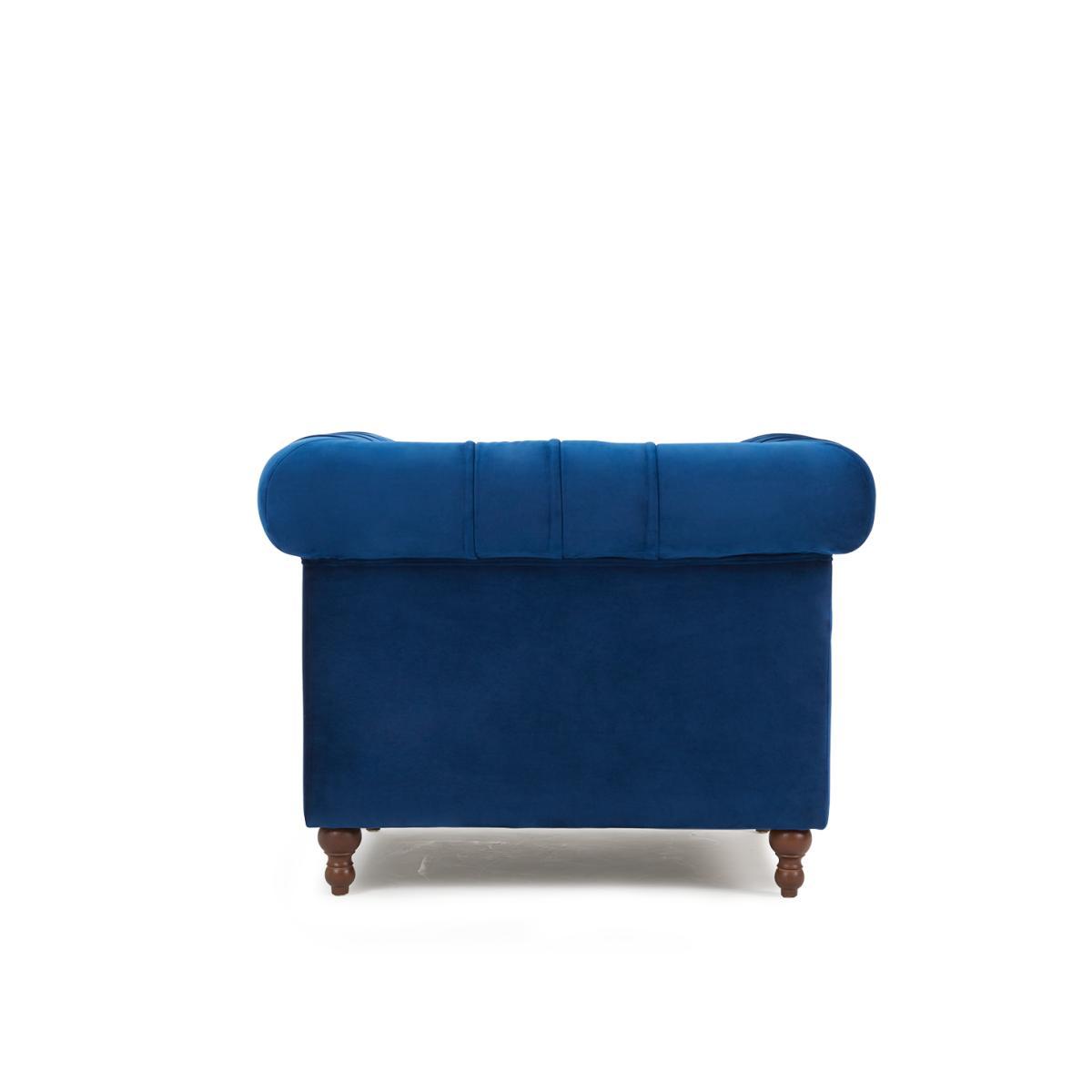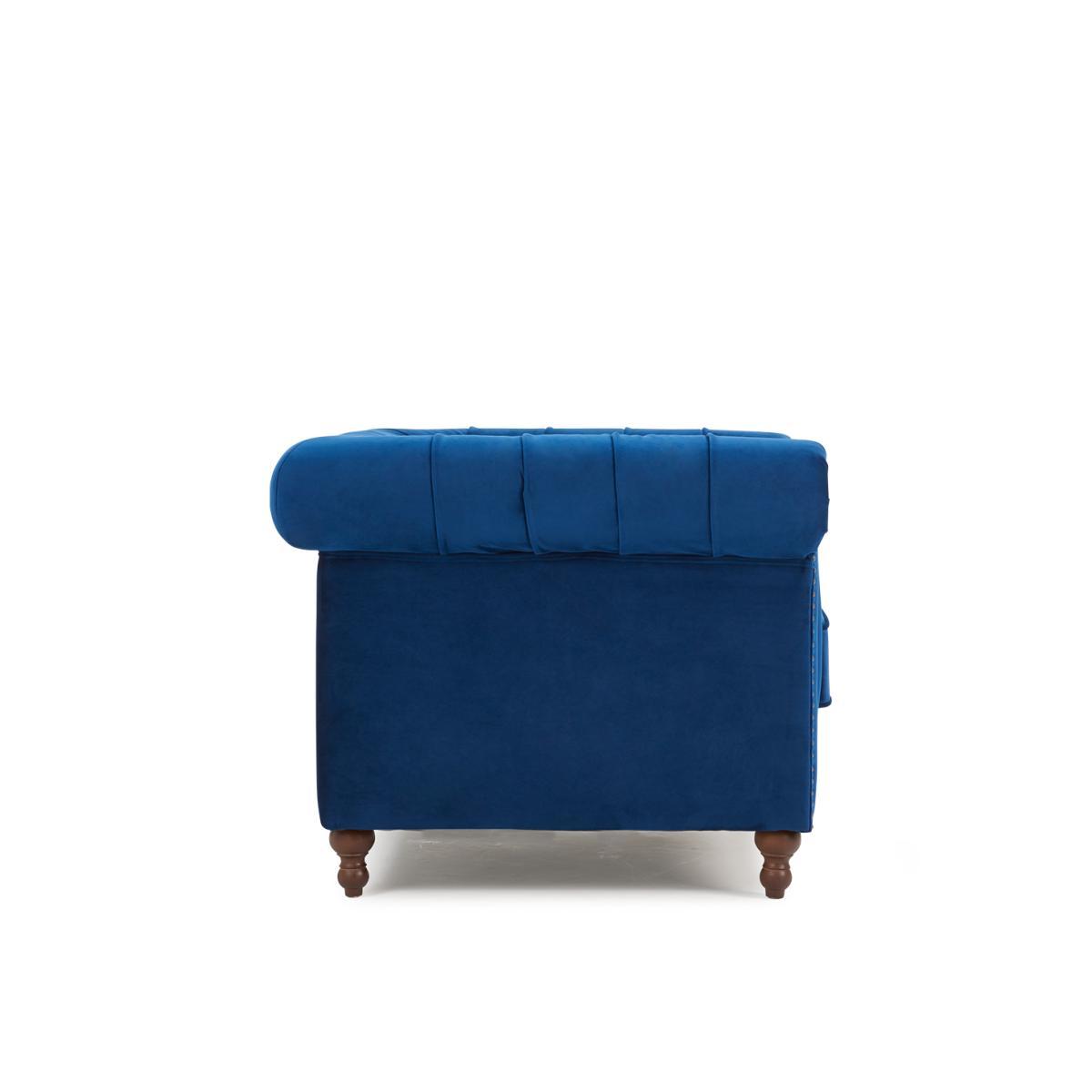 Milano Chesterfield Blue Plush Velvet Armchair brings a hint of glamour to any interior. Inspired by the classic Chesterfield design, the armchair is upholstered in rich blue plush fabric and features a deep-buttoned backrest and rolled armrests. The design of the chair is finished beautifully by metal studs that run around the edges and elegant yet resilient solid wood feet. The Milano Plush Armchair is also available in a choice of grey or green and is complete with 1 free scatter cushion.