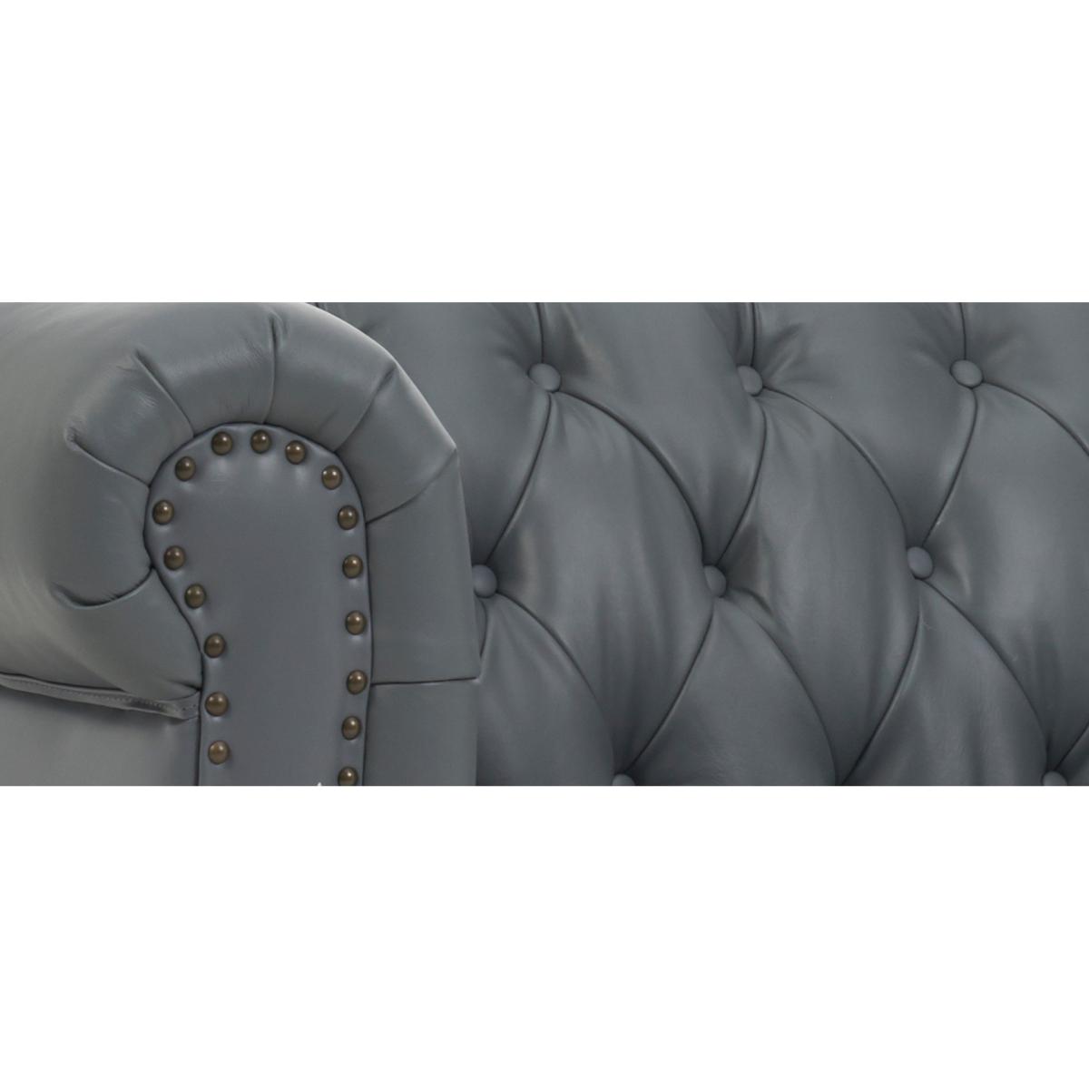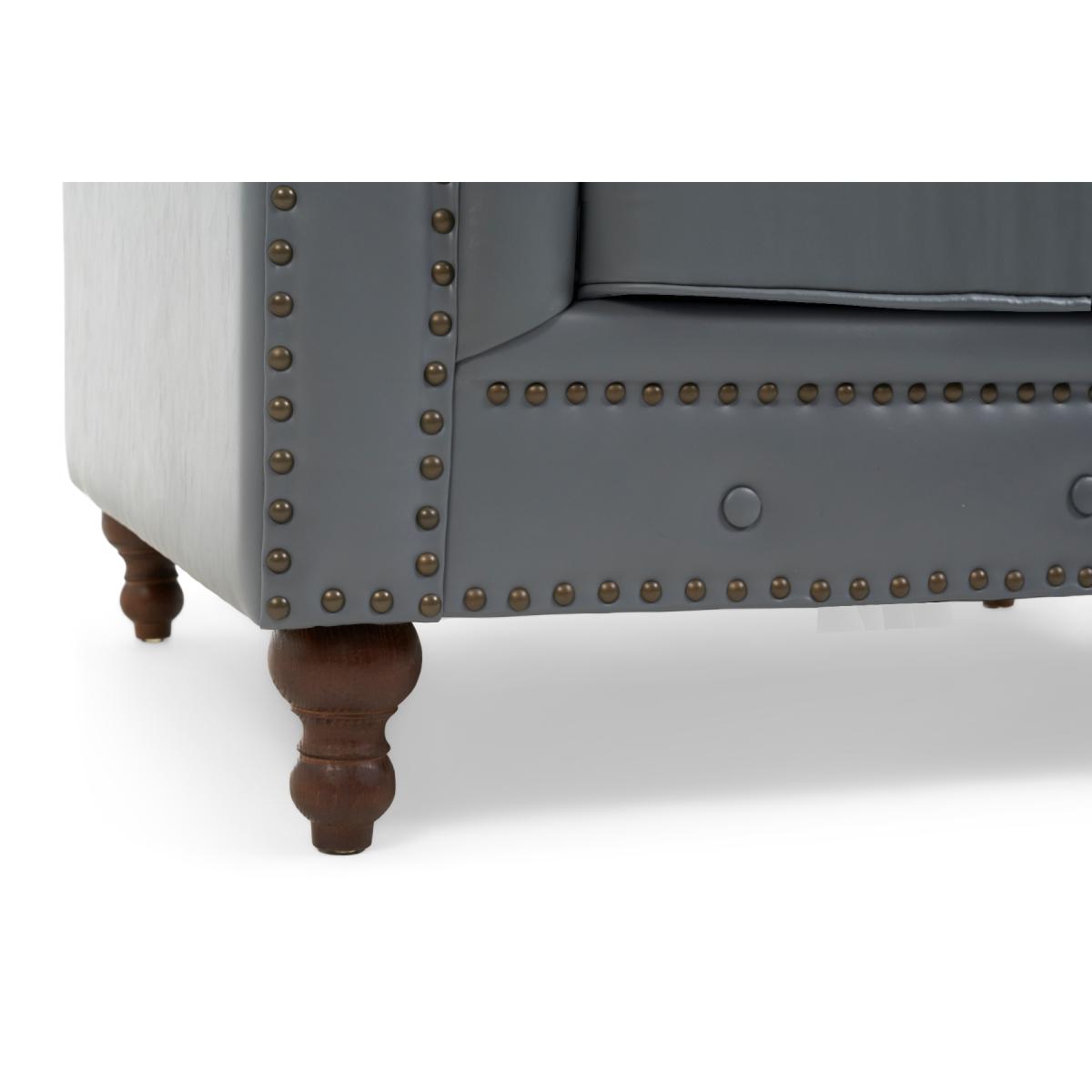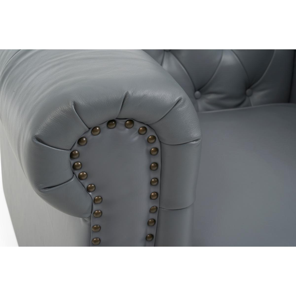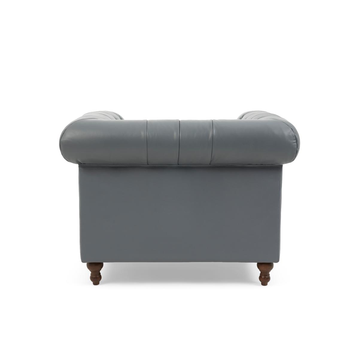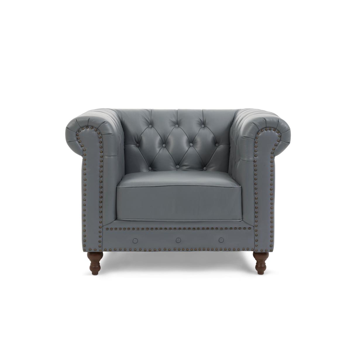 The perfect piece to both curl up in and add stylish charm to any living space, the Milano Chesterfield Armchair features our soft and supple leather in elegant grey, and classic Chesterfield styling. Deeply buttoned to the plump and comfortable back, and boasting a foam-filled cushion and high arms for a seriously cosy seat. A contemporary metal studded trim adds a modern, of-the-moment finish, and sturdy solid ash legs offer lasting support. Our soft and supple leathers lend both comfort and style, plus they’re effortless to wipe and clean. Contemporary tonal metal studding adds a modern touch to classic Chesterfield design. Supported by sturdy dark ash legs, designed to last. Carefully crafted, with every design aspect considered for a piece that’s truly unique.. We Love: Styled with the matching Milano Grey leather 3 Seater Sofa, and Milano 2 Seater Sofa for a full suite. Also available in: Grey Linen, Blue Plush, Green Plush, Grey Plush.