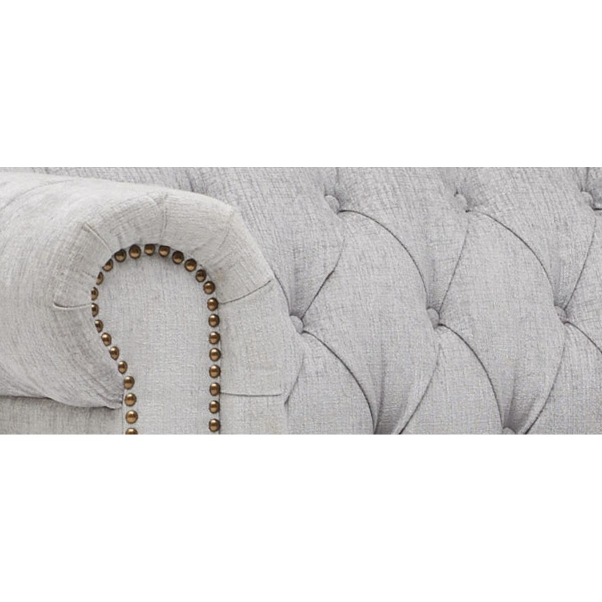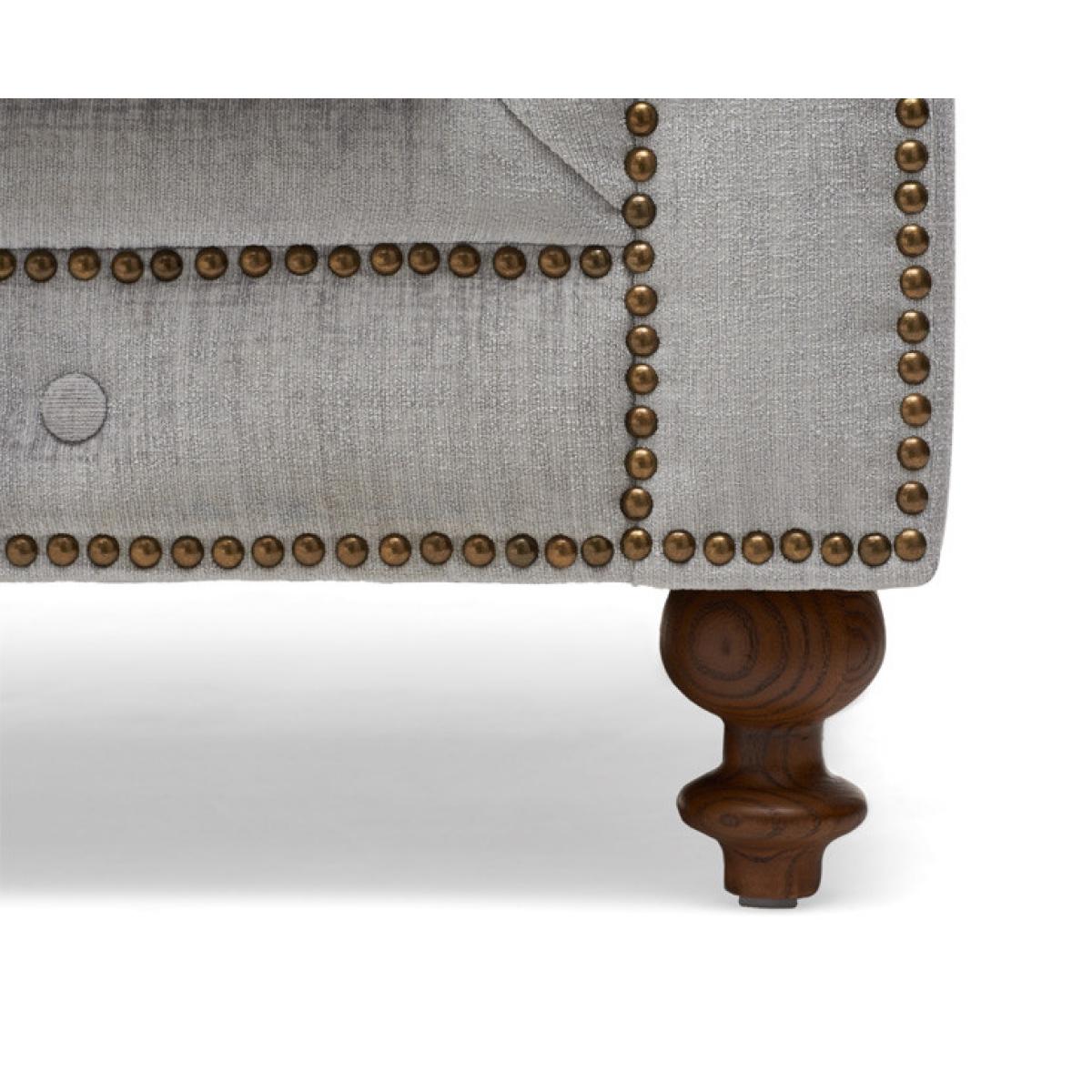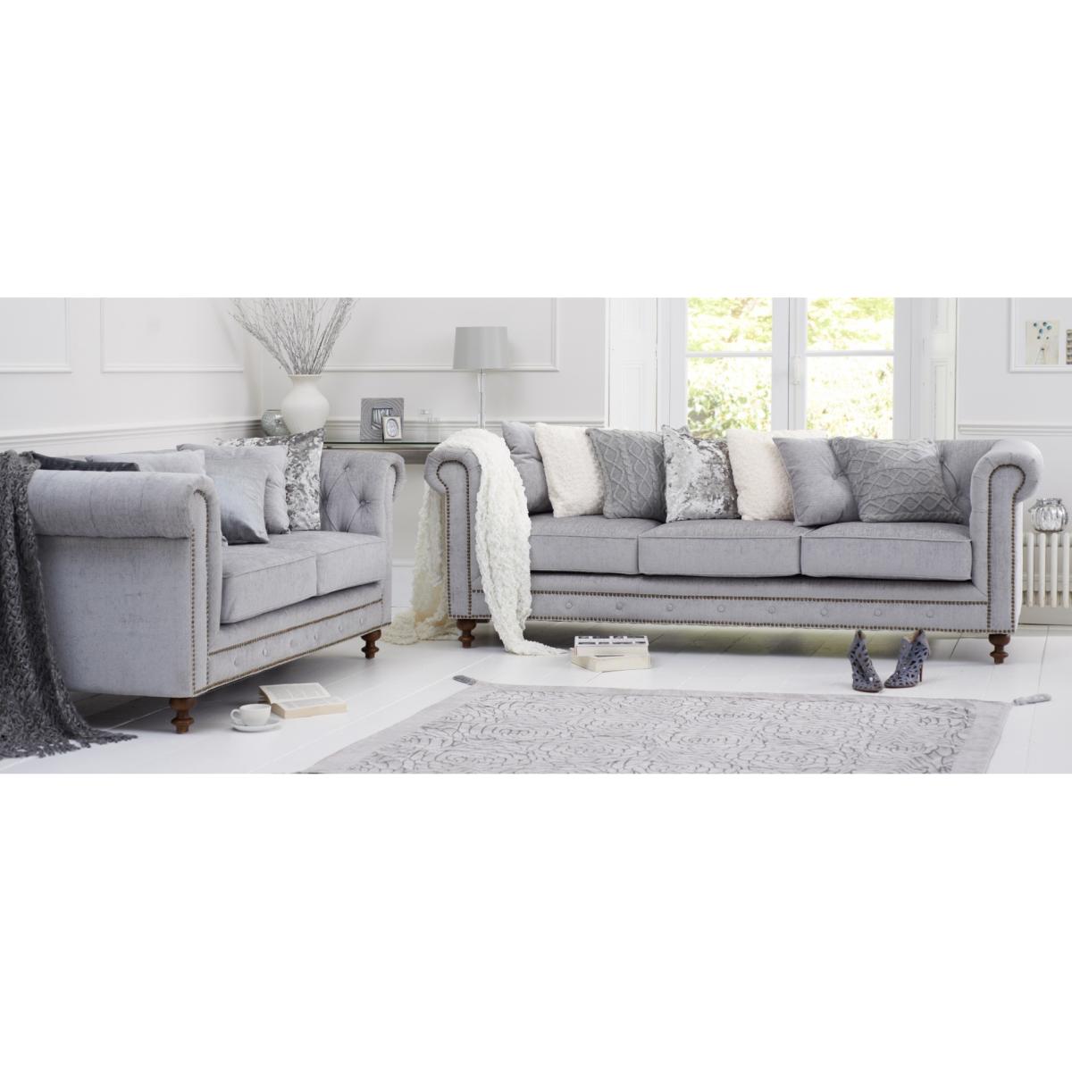 The Milano Chesterfield Grey Plush Fabric Armchair will bring charm and elegance to any room you choose to place it in. Inspired by the classic Chesterfield design, this armchair features scroll arms, deep-buttoning on its back, turned solid ash legs and on-trend metal stud edging. Plus, the Milano Grey Plush Fabric Armchair also offers just the right amount of comfort thanks to its smooth upholstery, deep-filled seat cushions, supportive S-spring structure and high-rise arms, which make this armchair perfect for curling up into. As well as providing the perfect finishing touch to the Milano suite, it's also a fantastic accent chair by itself.