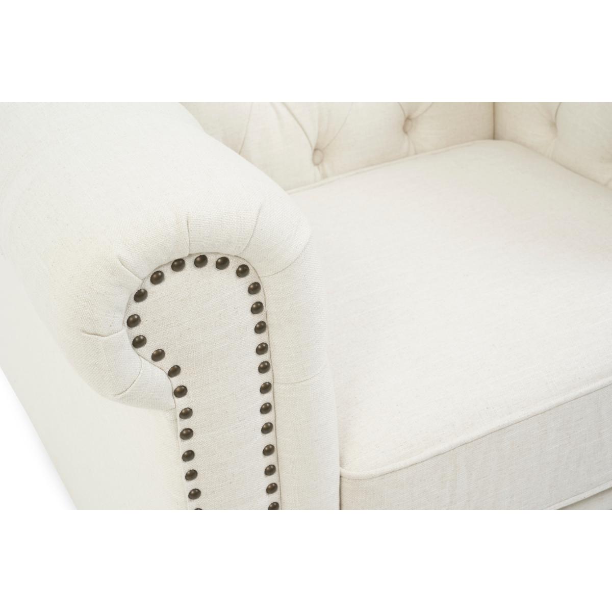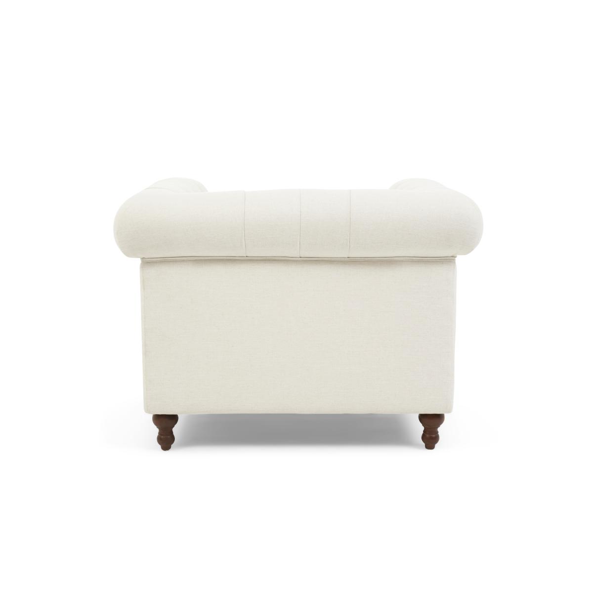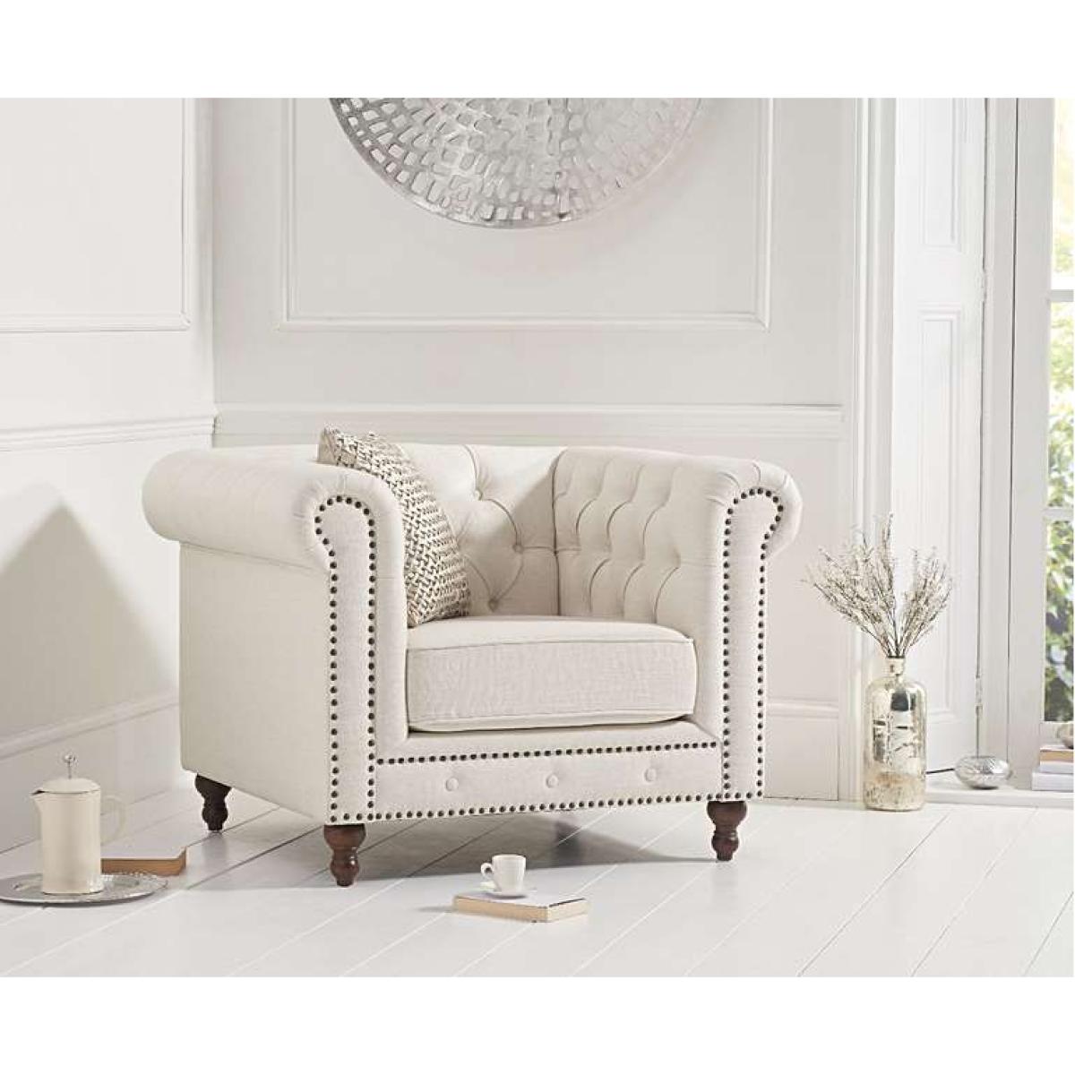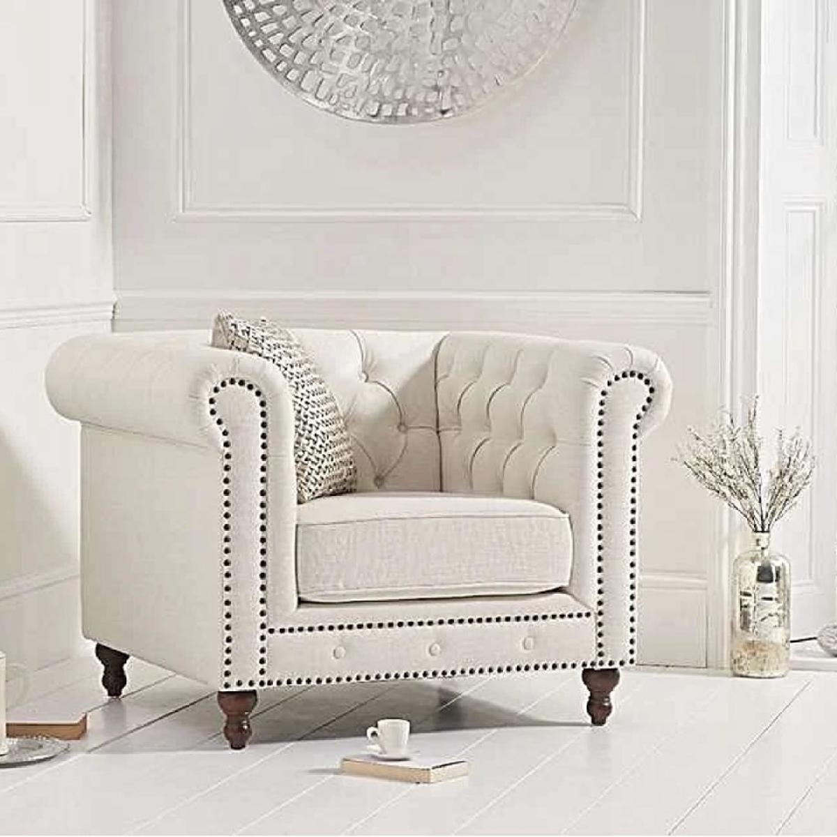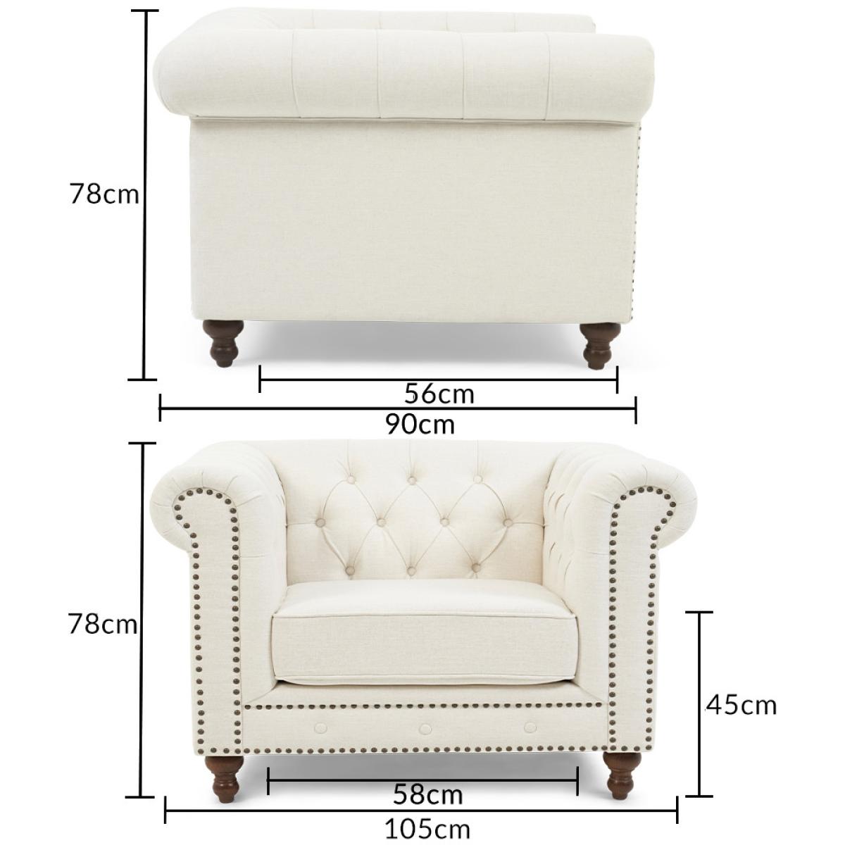 Add stylish charm as well as cosy comfort to your living space with the Milano Chesterfield Armchair, featuring our soft and supple leather in elegant Grey, and classic Chesterfield styling. Deeply buttoned to the plump and comfortable back, and boasting a foam-filled cushion and high arms for a seriously comfortable seat. A contemporary metal studded trim adds a modern, of-the-moment finish, and sturdy solid ash legs offer lasting support. Our smooth linen upholstery offers cool, soft comfort Contemporary tonal metal studding adds a modern touch to much-loved Chesterfield design. Supported by sturdy dark ash legs, fixed low for easy access. Carefully crafted, with every design aspect considered for a piece that’s truly unique. We Love: Styled with the matching Milano Ivory Linen 3 Seater Sofa, and Milano Ivory Linen 2 Seater Sofa for a full suite. Also available in: Grey Linen, Blue Plush, Green Plush, Grey Plush, Grey Leather.
