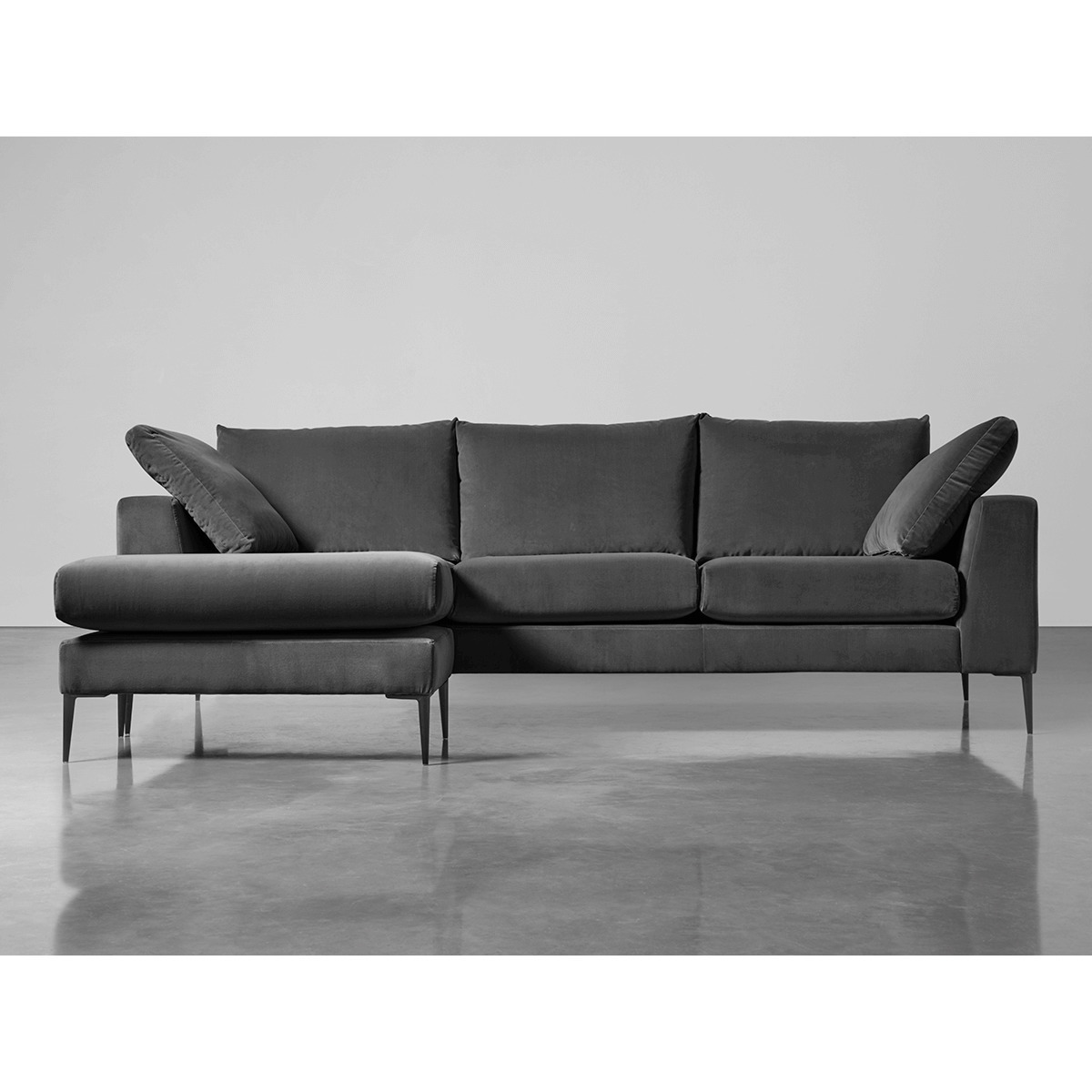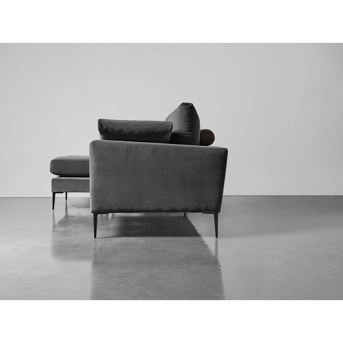 Handcrafted in England and custom made to your space, our showstopper of the Milano Collection is the perfect choice for those who love to lounge with their feet up. Our clever Chaise Sofa is designed to adapt to your living room thanks to a detachable footstool and reversible seat cushions, meaning you have the freedom to place the your chaise on the left or the right. Featuring defined black aluminium legs and feather bolster cushions, our Grand Sofa Chaise can be upholstered in a soft linen cotton blend or a sumptuous cotton velvet in a choice of six colours. With a sustainable, seasoned hardwood frame, fibre back cushions and high density foam seat cushions, it is sumptuously comfortable, while the slender matte black aluminium legs add a modern twist. Important: Before buying your Custom Made upholstery, please check the dimensions of each product and that it will fit in your intended room. Please also check that it will fit through any doorways, hallways and staircases, as all Custom Made Upholstery items are non-returnable. Click here to view our Upholstery FAQs;Click here for full Upholstery Terms and Conditions