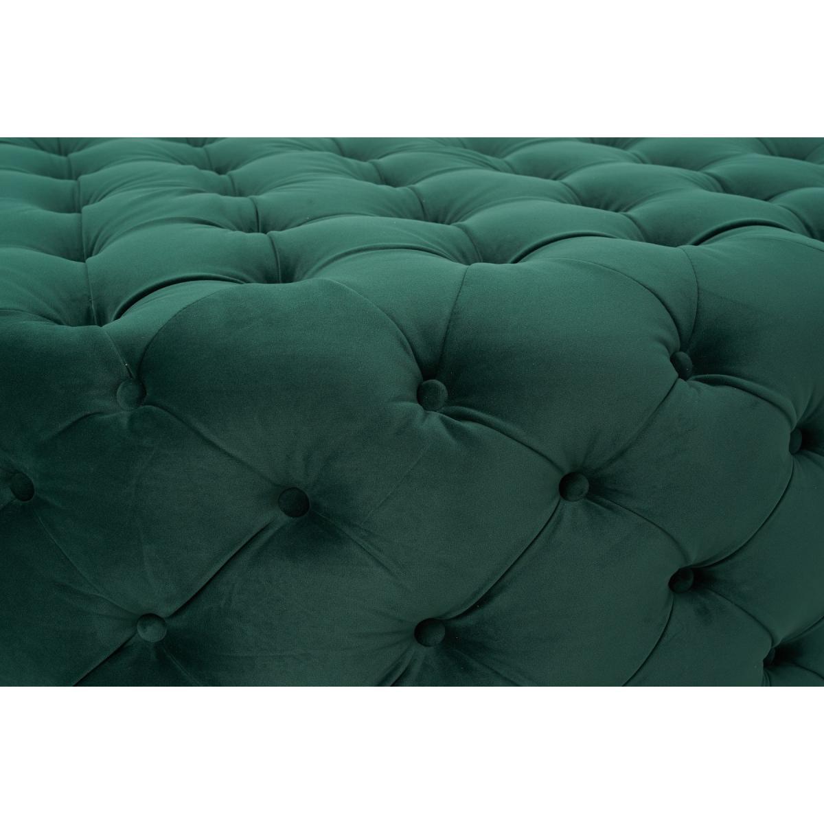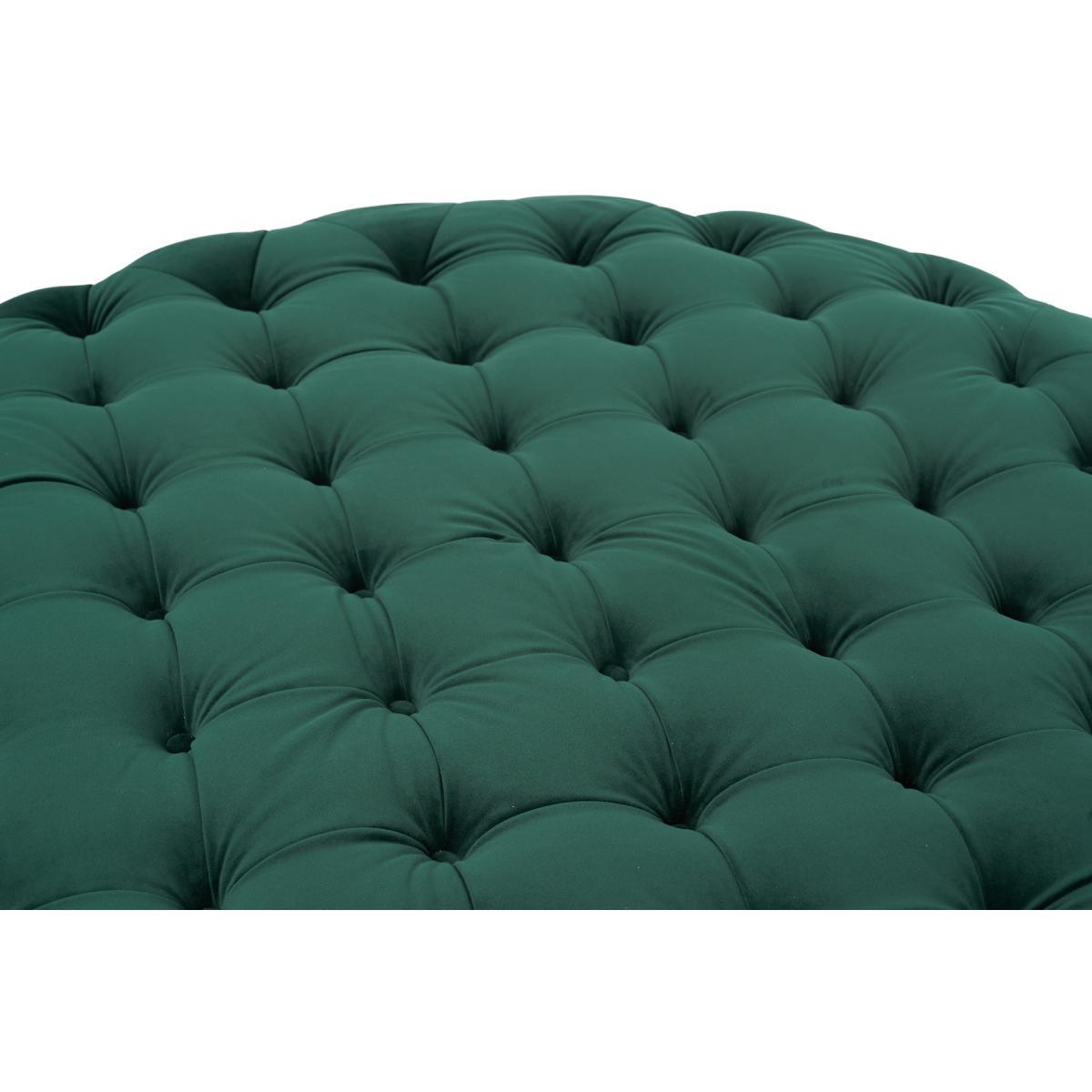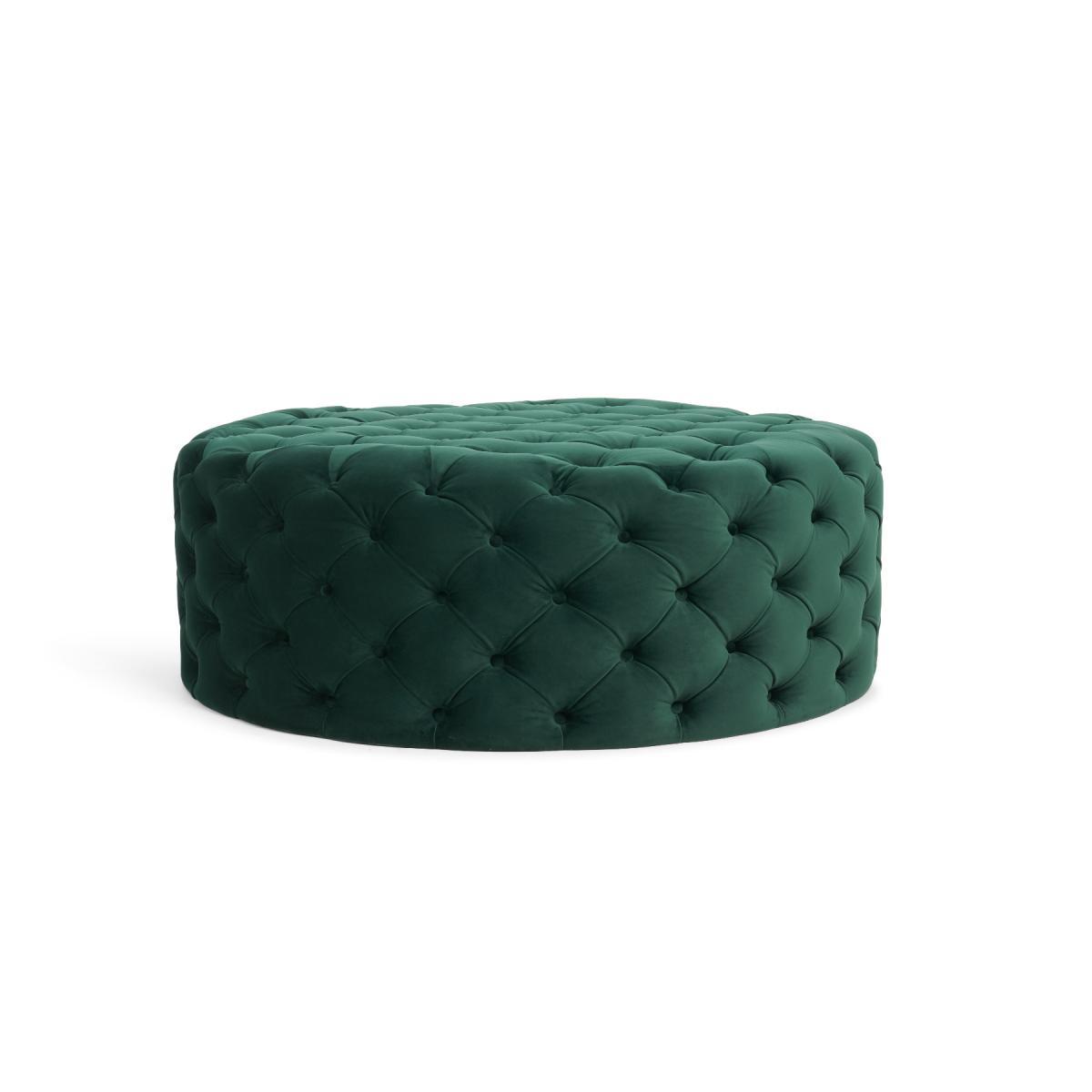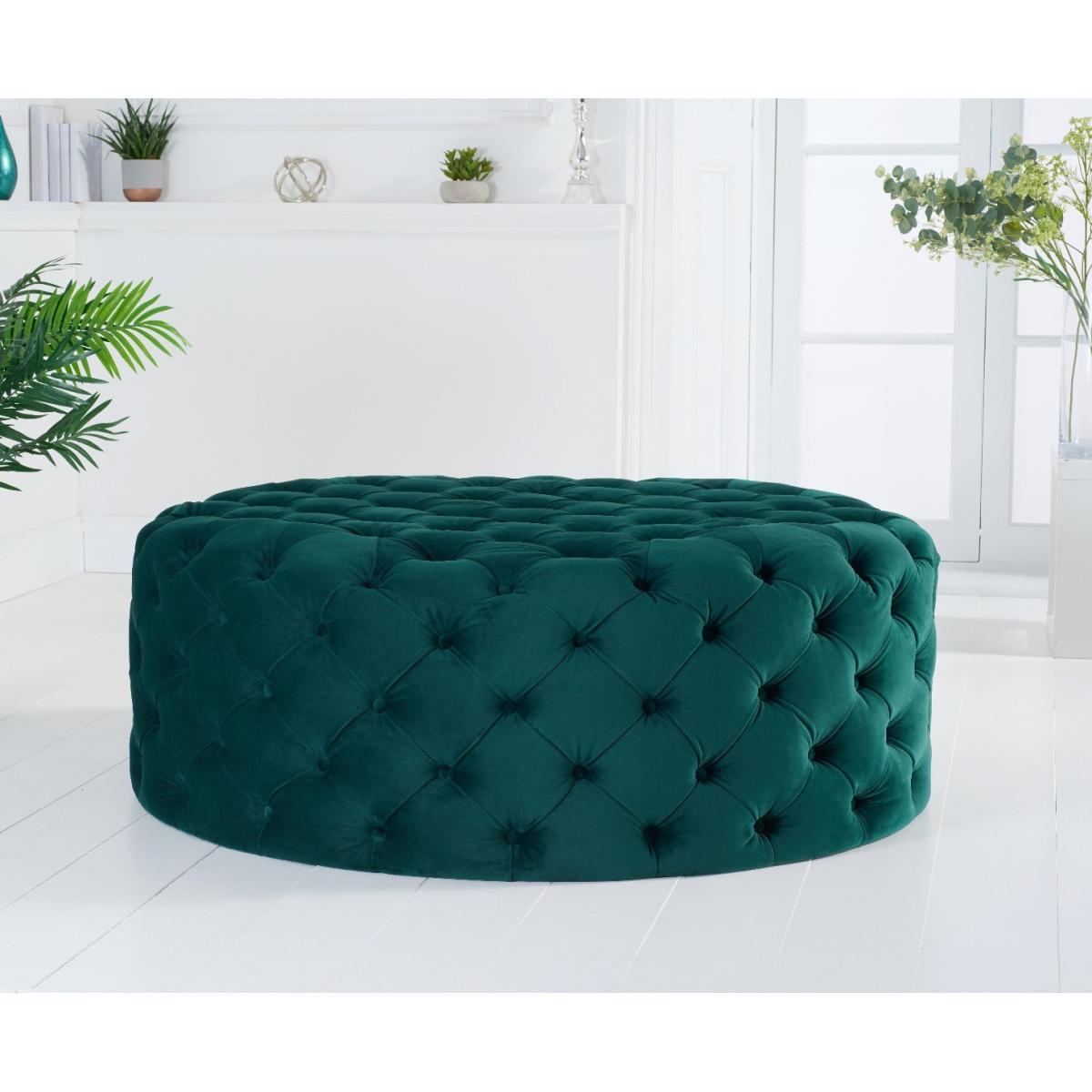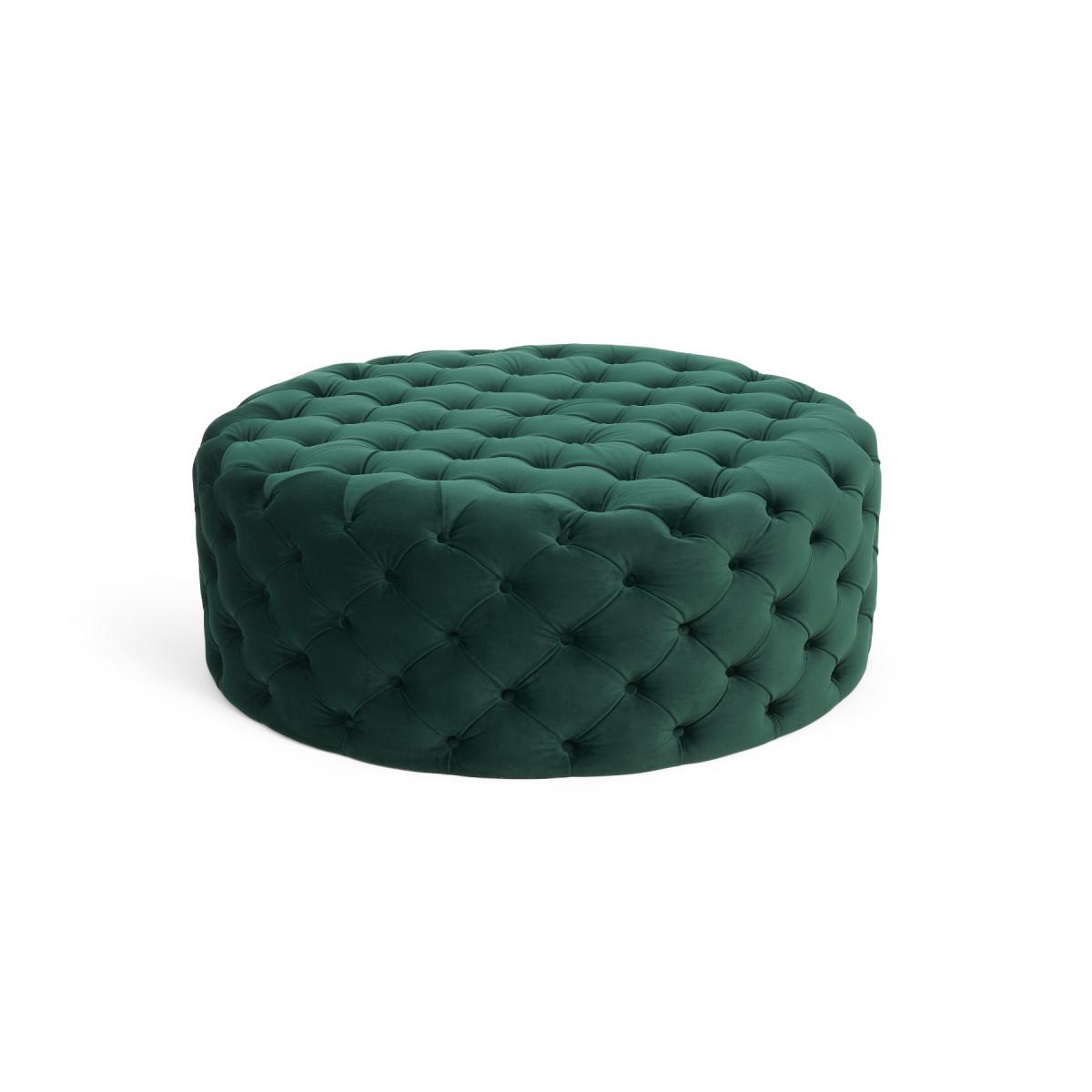 The Milano Green Velvet Large Round Footstool features a stunning classic design that adds style to any home. Upholstered in soft-touch green velvet, the large round footstool features a deep buttoned design for a timeless vintage look. Large round footstool brings classic style to your home Soft-touch velvet and deep buttoning for a timeless look Dense padding and low design for maximum comfort Complements the Milano Green Velvet Sofas Also available in Blue and Grey