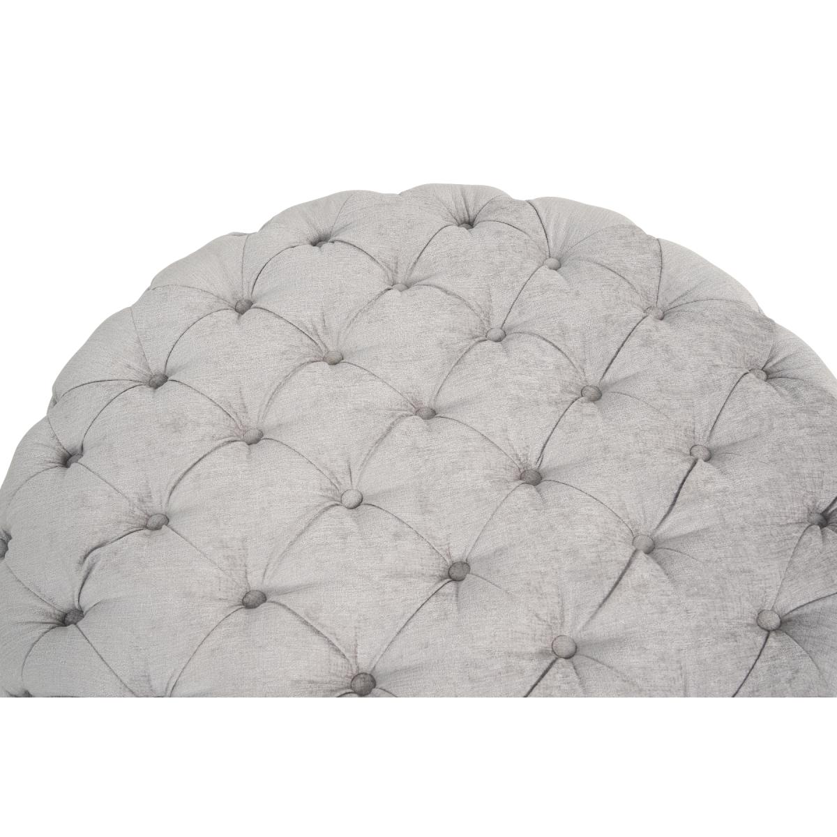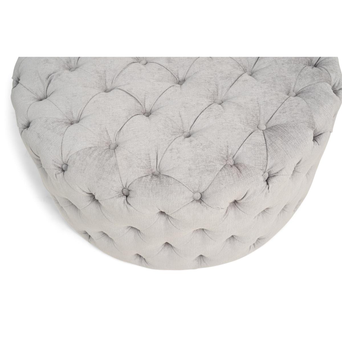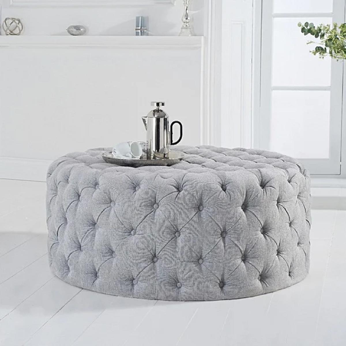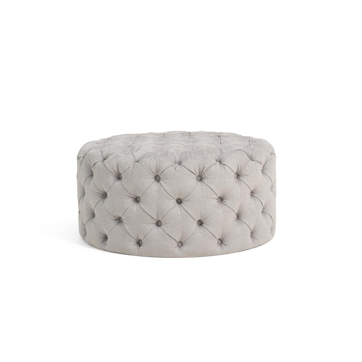 The Milano Grey Plush Round Footstool features a classic design that brings style to any interior. Complementing the Milano Grey Plush Sofa collection, the round footstool features soft-touch plush Fabric and deep buttoning. Stylish grey plush footstool makes a statement. Complements the Milano Grey Plush Sofas. Classic design with deep buttoning for a luxe look. Low, round design with padding throughout for maximum comfort. Also available in Blue and Green