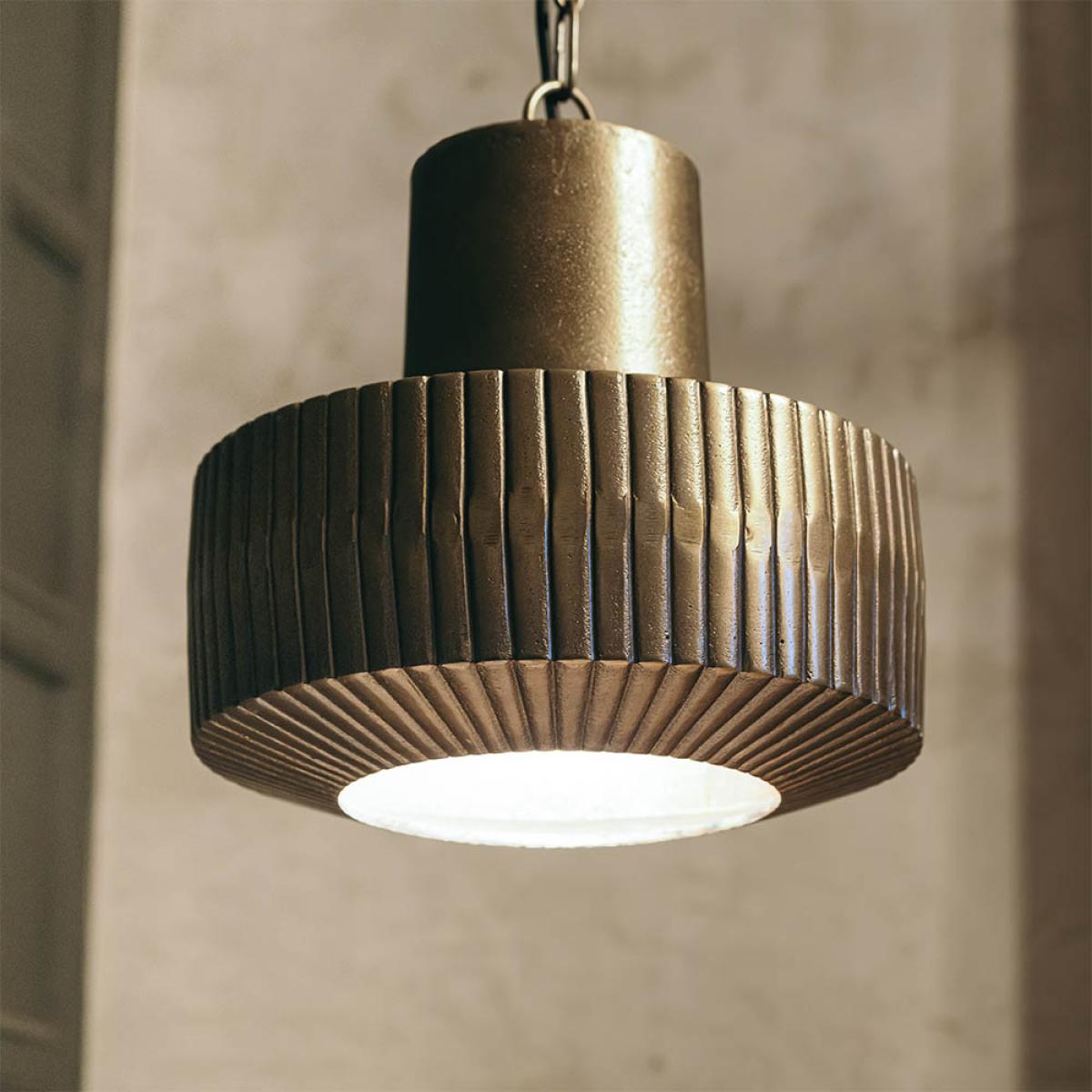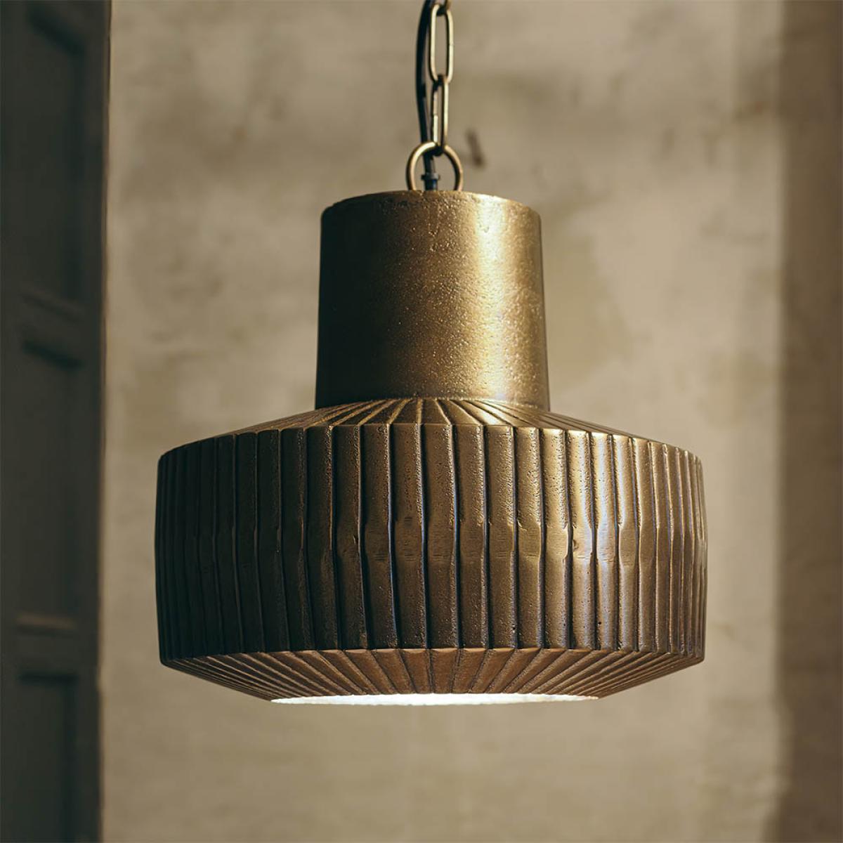 Inspired by the glamour and glitz of the Art Deco period and Modernist hanging lights, Milano is a solid metal design finished with a luxurious antique bronze effect with ridged edge detail. This gives it a textural look and feel that will bring any décor to life. Updating your pendant lighting is an instant way to revamp any room. Whether you’re newly decorating a living area, dining room, kitchen, hallway or bedroom or updating existing décor, our robust Milano Pendant Light in Antique Bronze will add that statement look. Ceiling lights will add warm, moody lighting to an intimate dining experience and can be hung as a single pendant or in clusters for added impact. As part of our modern lighting collection, Milano is available in a medium (W30x D30x H30 cm) and large (W40x D40 x H31 cm) size to suit any space and is suspended on an industrial-style brass chain. The silhouette of this chandelier makes it a stunning addition to any room – whether it is turned off or illuminated.