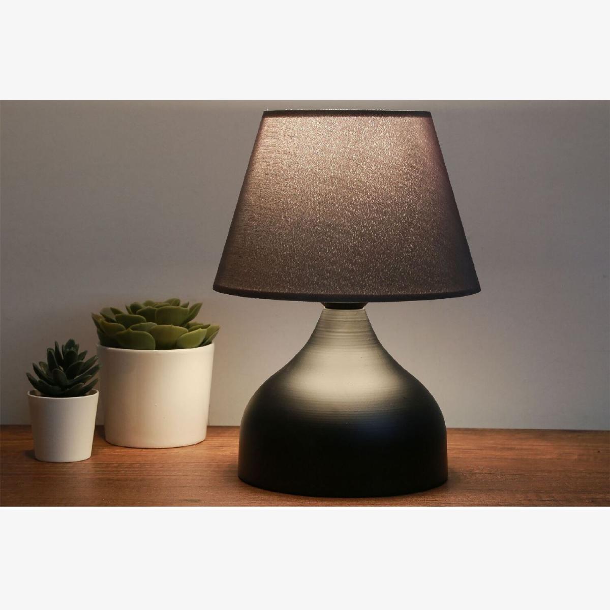 The table lamp will add classic-chic style to any room. The nightstand lamp comes with anthracite colour fabric shade and the dark metal base, creating a stylish look and cozy feelings for your home. Perfect for end table, dinning table and coffee table. Maximum wattage is 9-15W for LED bulb (Not included in the package). Recommended one E14 type LED bulb. Provides a switch to turn the lamp on-off. Plug type is UK plug and cable length is 150 cm.